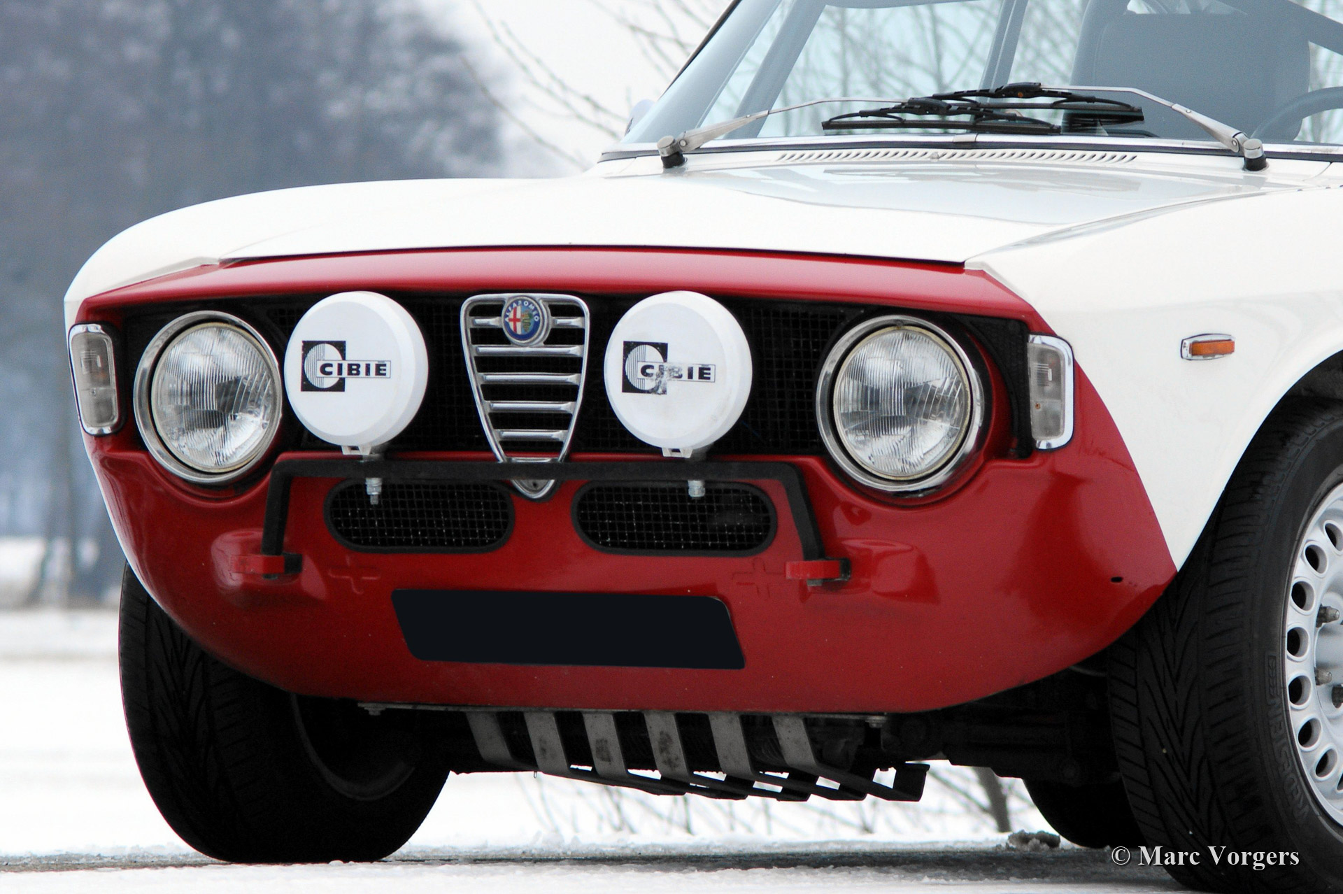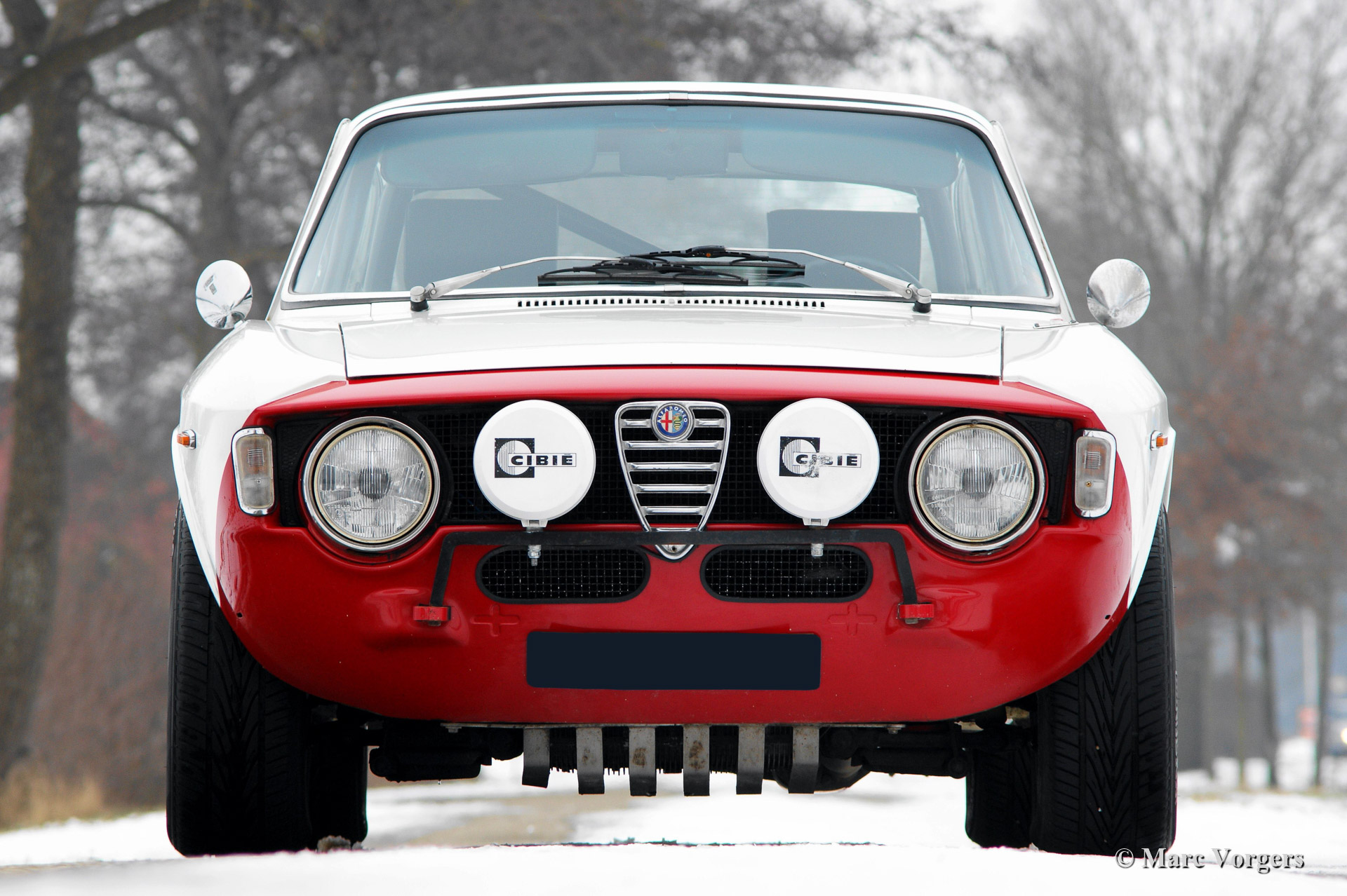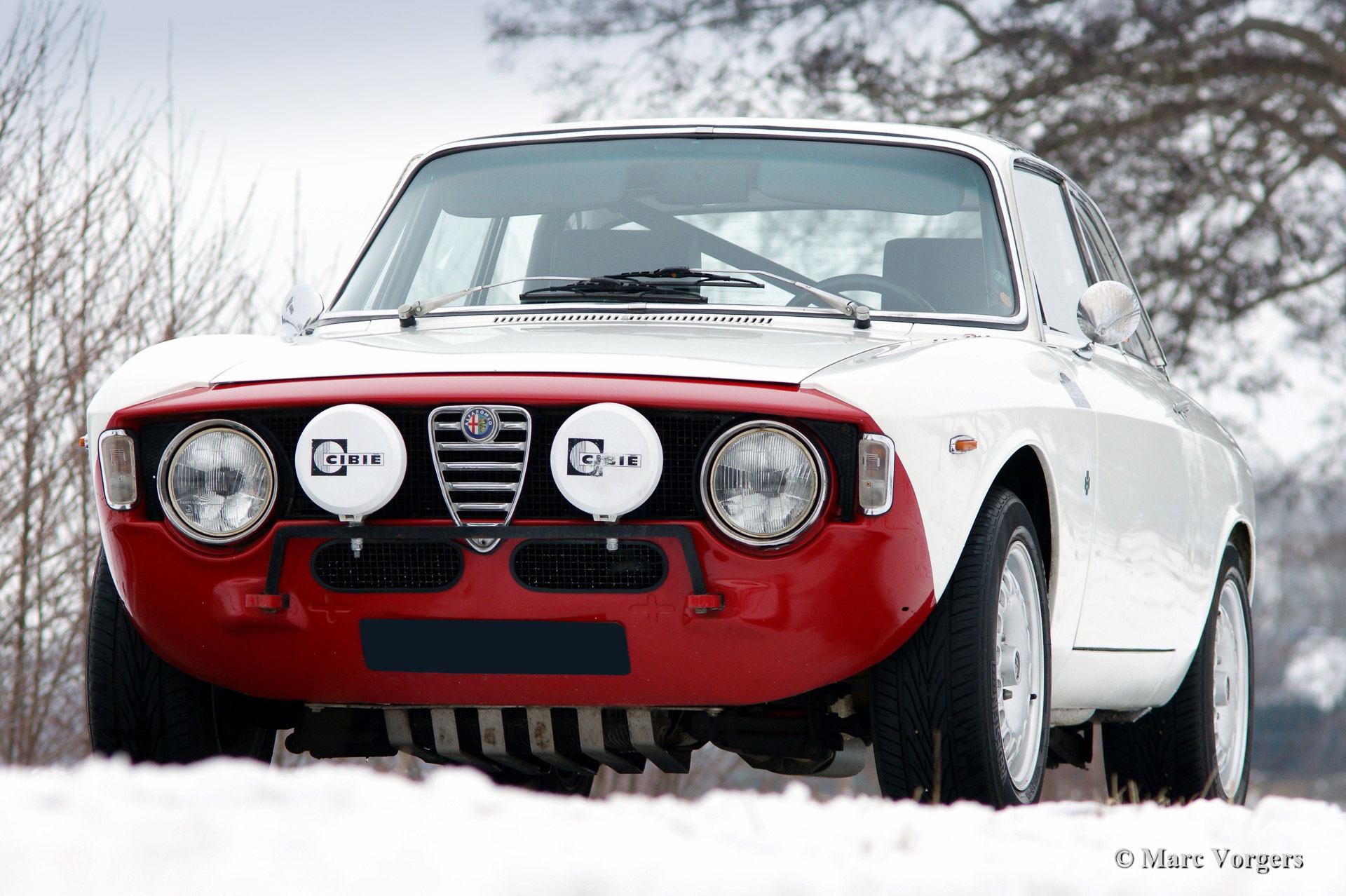 Alfa Romeo Giulia 1600 Sprint GT rally car 'Bertone', year 1964. Colour white /red front and a black rally interior. The automobile was extensively restored, overhauled and tuned.