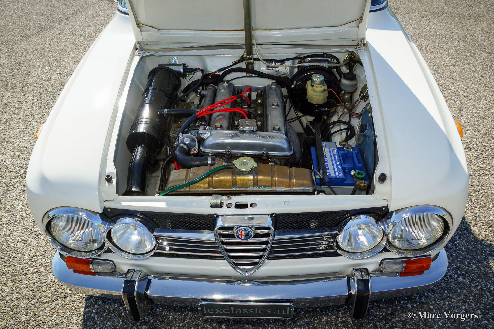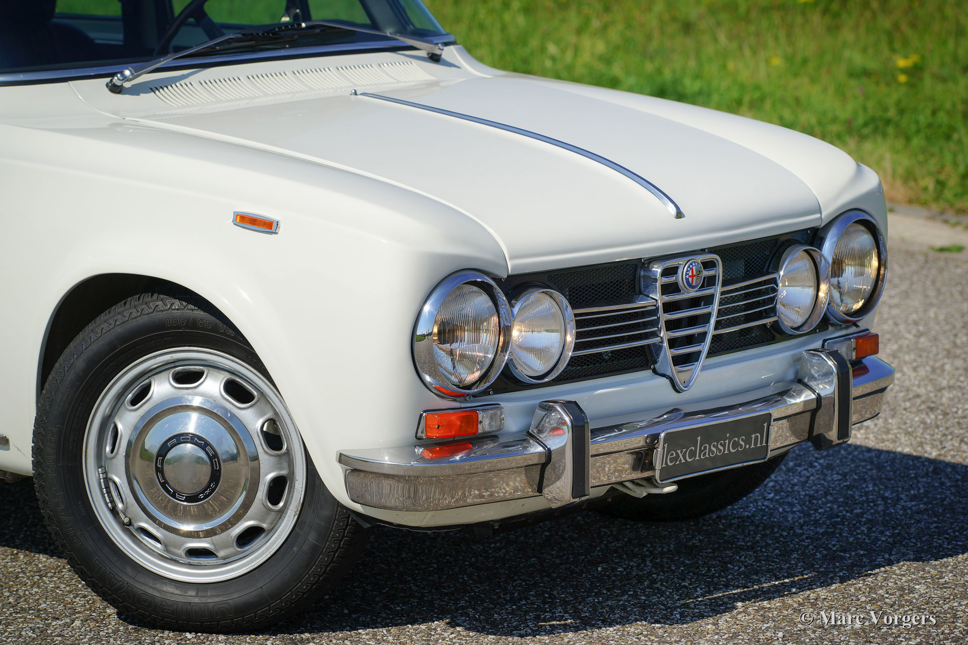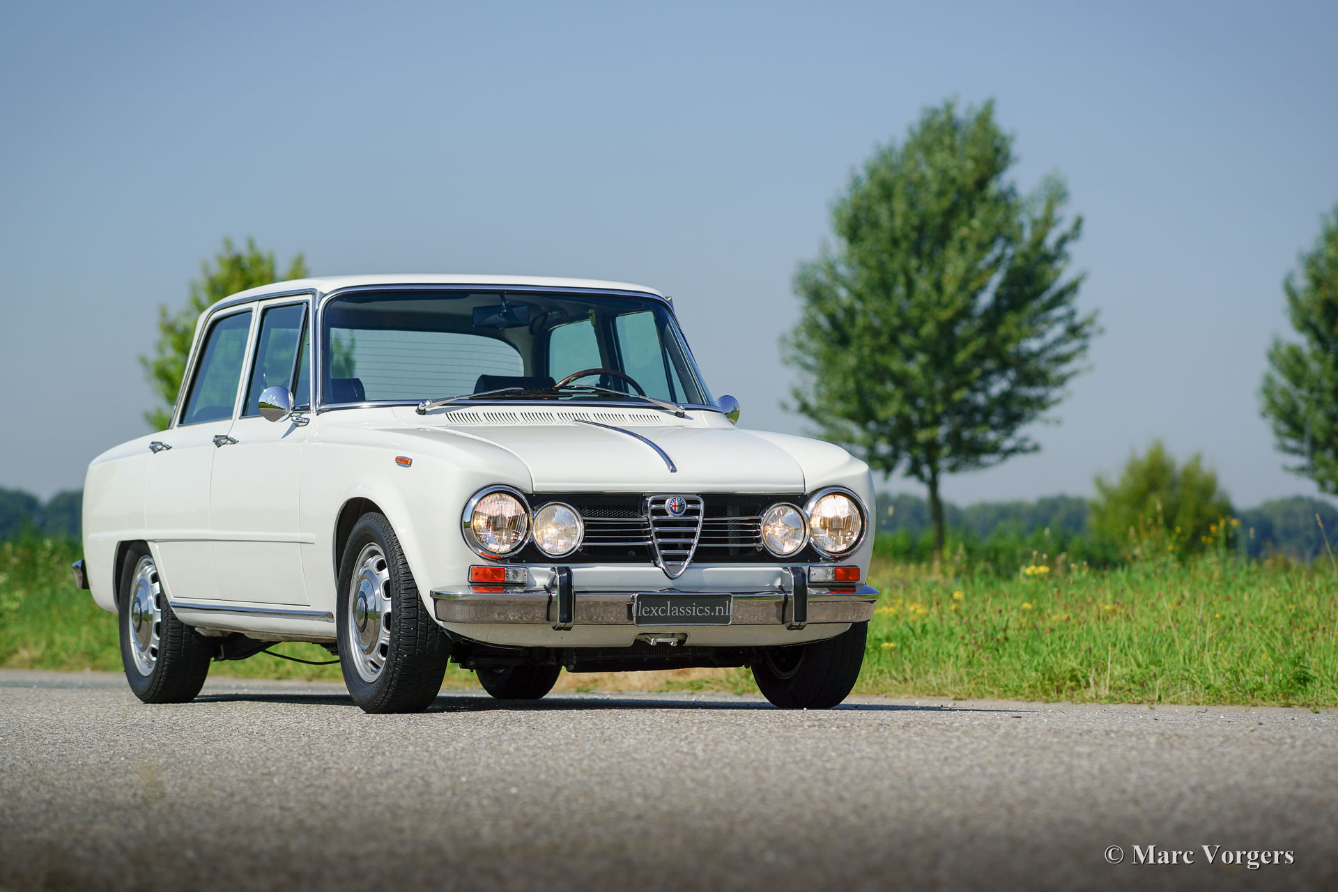 Alfa Romeo Giulia 1600 Super, year 1971. Colour white (Bianco Spino) with a black interior and black carpet. This gorgeous Alfa Romeo Giulia was beautifully restored by a German specialist in the past years. During the restoration the car was given a more powerful two-litre Giulia engine. Some photographs of the restoration are present. This Giulia is in superb condition, the body work shows beautiful panel fit, the paint is immaculate, the interior is like perfect and under the bonnet everything looks very tidy and clean. The two-litre engine gives the car wings; this Alfa Romeo Giulia drives superbly! The car features a steering wheel with wood rim and a fantastic period Becker radio. This is a top specimen.