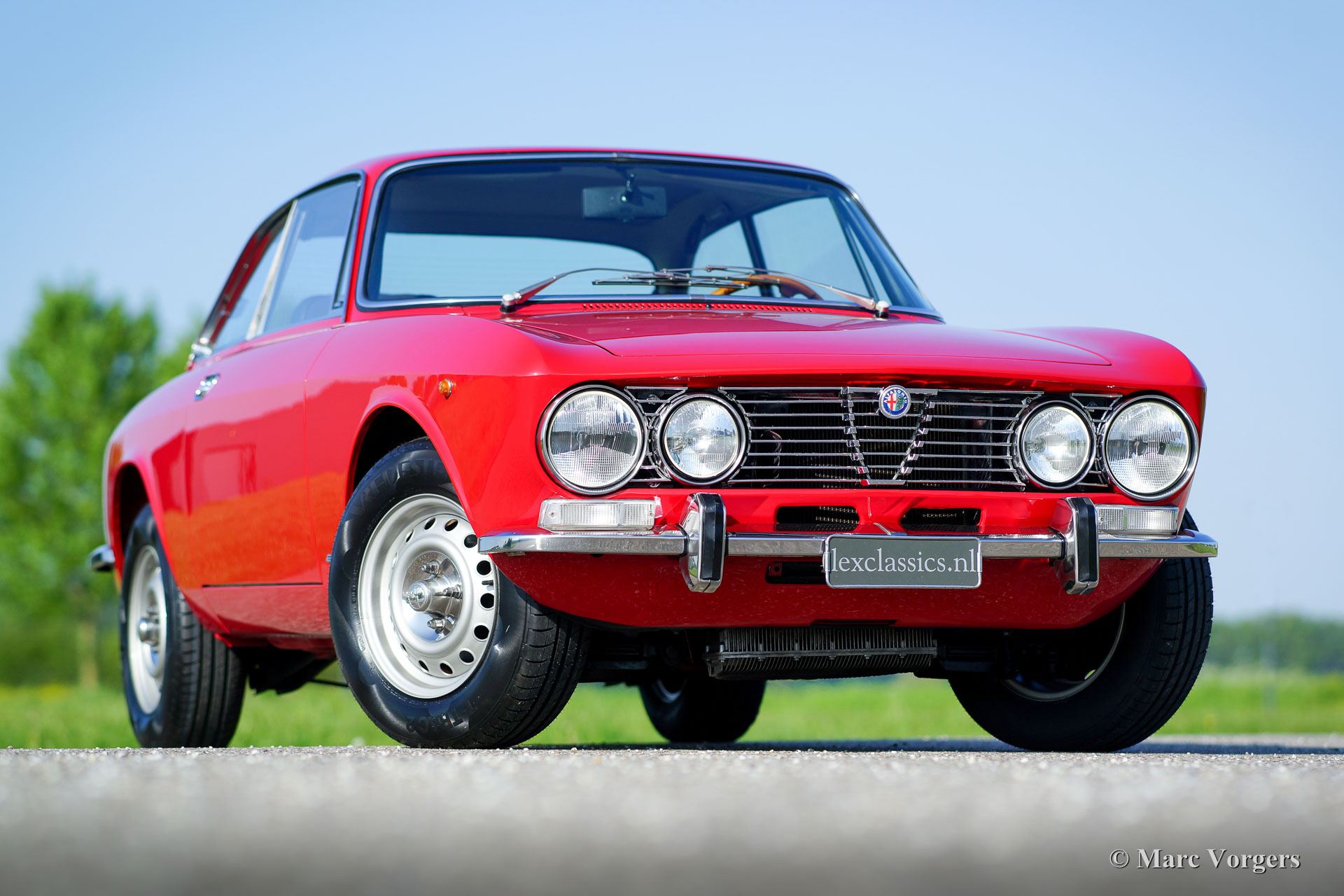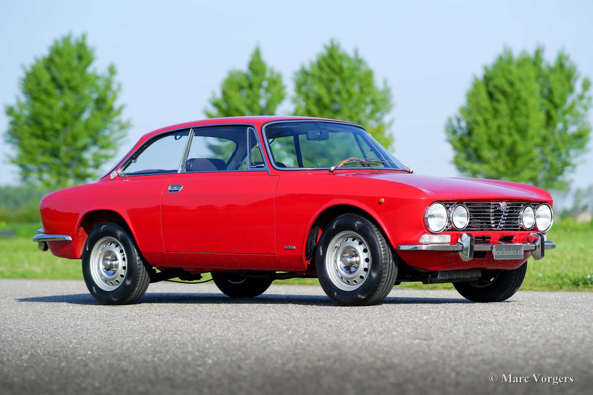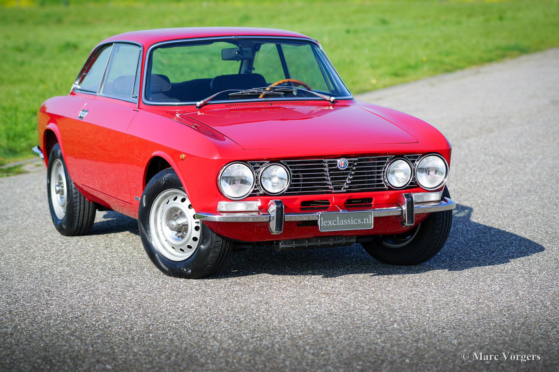 The Alfa Romeo Giulia GT was designed by Bertone and can be considered as one of the most successful designs of a compact GT in the past decades. In addition to its exquisite design, the Giulia GT handles very well, is fitted with a sublime engine and is practical and user-friendly. The Giulia GT is every inch a two-person GT, a paragon for everything Alfa Romeo stands for: it is competitive, refined and has class. The Giulia GT is fitted with a complete aluminium four-cylinder in-line engine with a double overhead camshaft and a five-speed gearbox. The Giulia GT "Bertone" was built from 1963 until 1972 and from 1972 until 1977 with a redesigned front. The latter models were named "Lusso". The cars were sold with several cylinder capacities; 1300, 1600 and 1750 cc. From 1972 until 1977 a 2000 cc. variant marketed: the Giulia 2000 GTV.