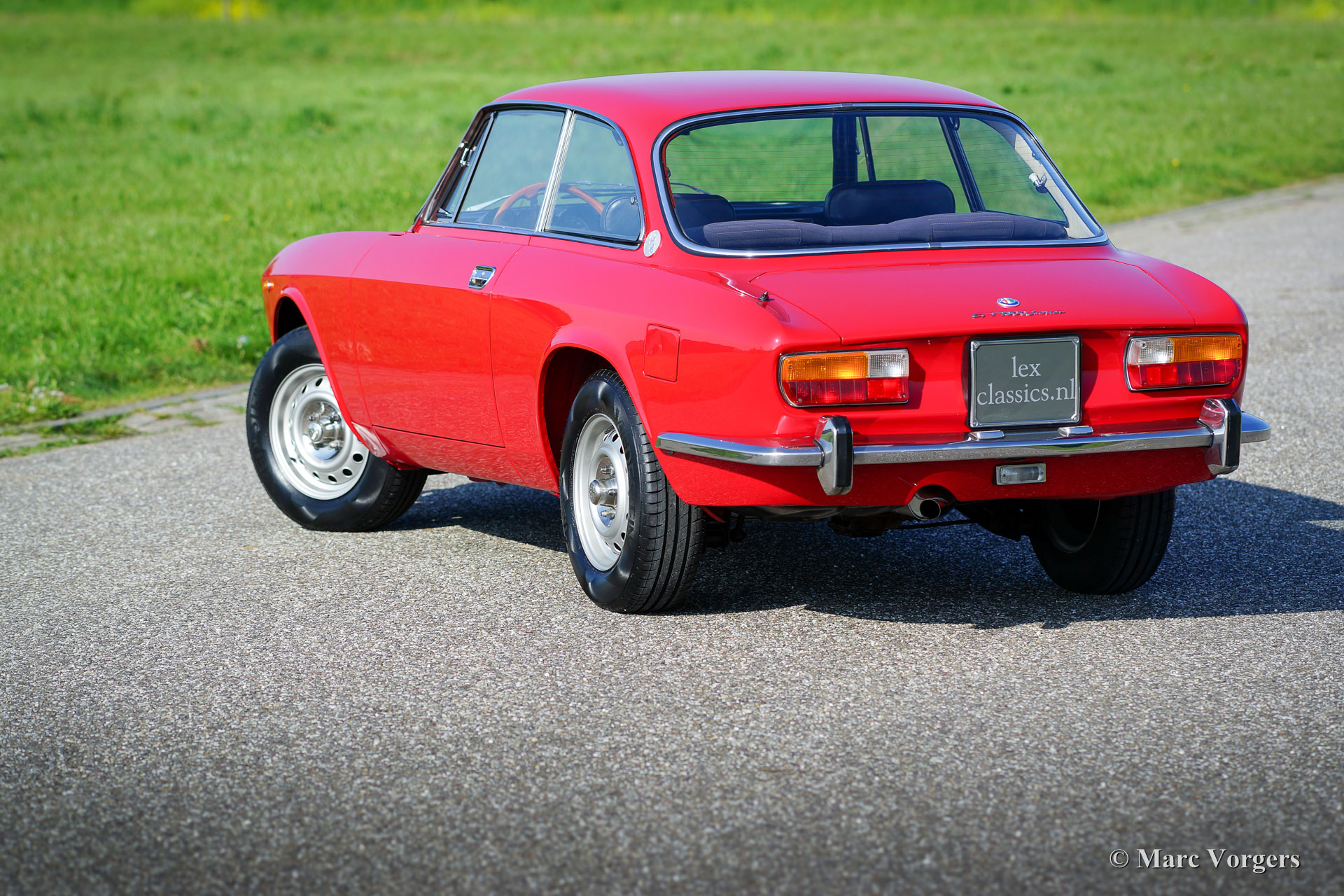 Alfa Romeo GT 1300 Junior ‘Lusso’, year 1975. Chassis number AR10530*0001302. Colour red (Alfa Rosso 501) with a black/dark grey leatherette interior with cloth seat facings and black carpet. This magnificent Alfa Romeo Giulia GT 1300 Junior, also called ‘Bertone’ by enthusiasts, comes from the first Italian owner! This super original Alfa Romeo was recently imported to the Netherlands. The car has driven only 55.055 kilometres from new! This Alfa fine Romeo is in superb TOP-condition, concours! The body was never welded on, nothing was restored, the car was only given perfect new paint in the original colour! This gorgeous ‘Bertone’ shows all the original details, the original tool-set is present as are the original booklets. The car is fitted with a beautiful period Grundig radio. This GT 1300 Junior is a so called ‘Lusso’ (deluxe) model. This is the last model of the series featuring the interior, the sound proofing, the grille, the rear-lights and the bumpers of the top-of-the-line Giulia GTV 2000. This type of super original and never restored classic cars in excellent to top-condition are the holy grail for serious enthusiasts and collectors – A top class restoration can’t match perfect originality and the charm which years have added to its pedigree.