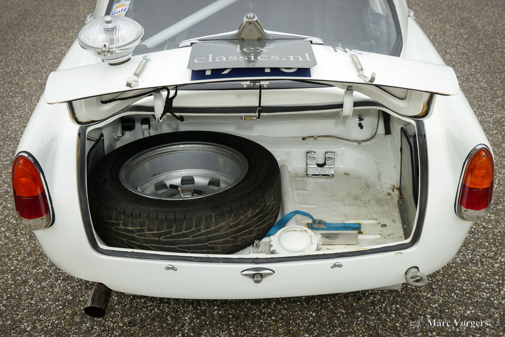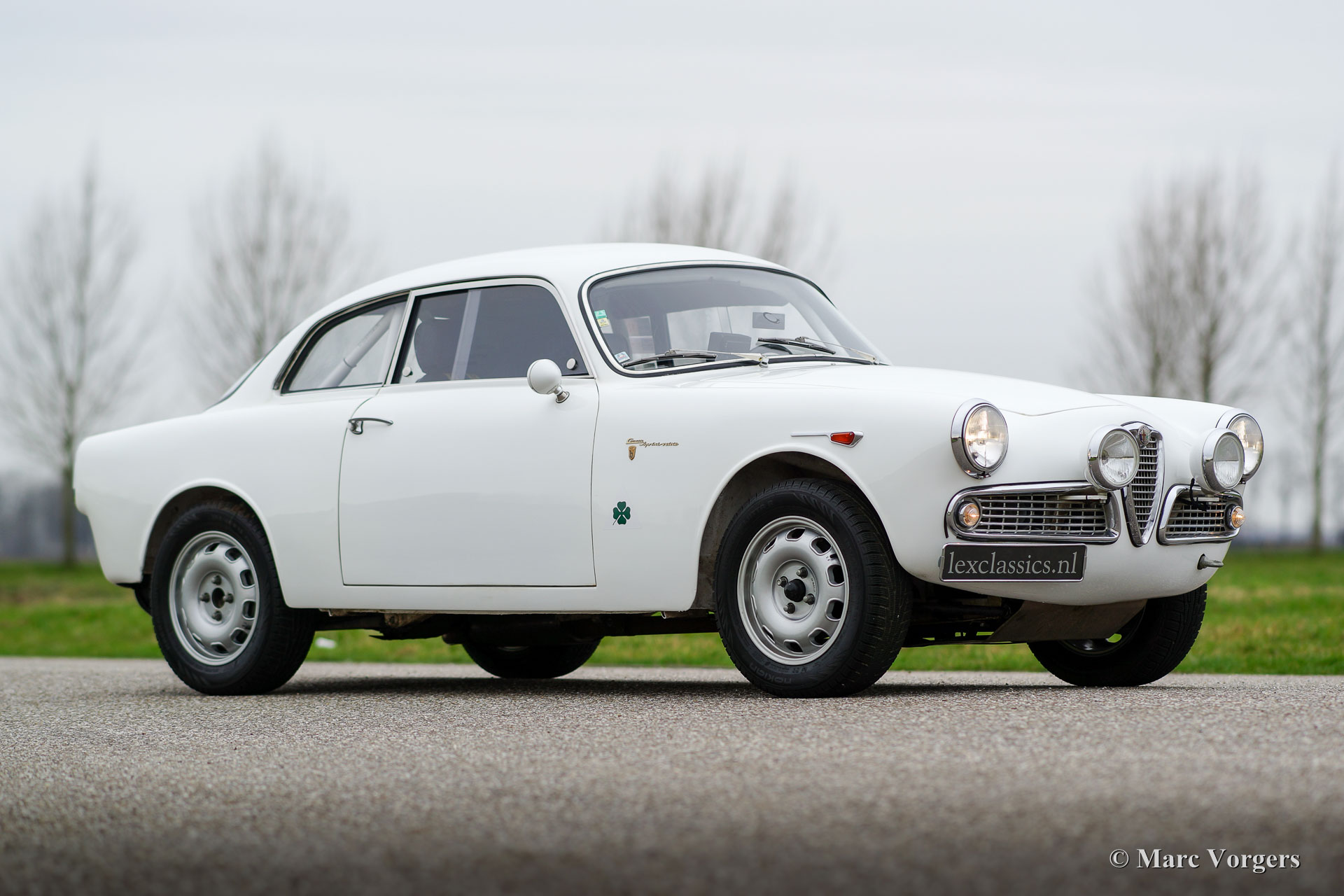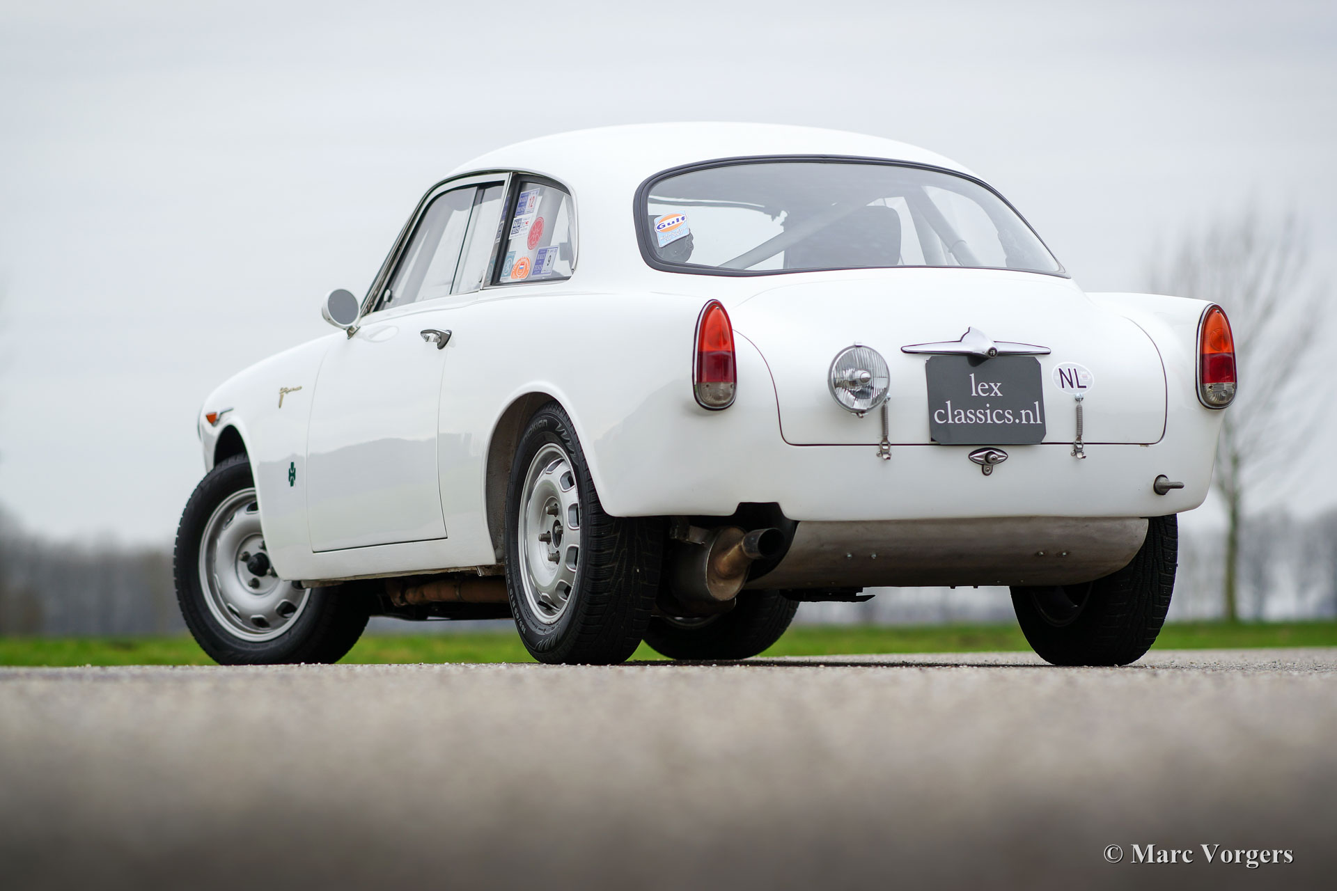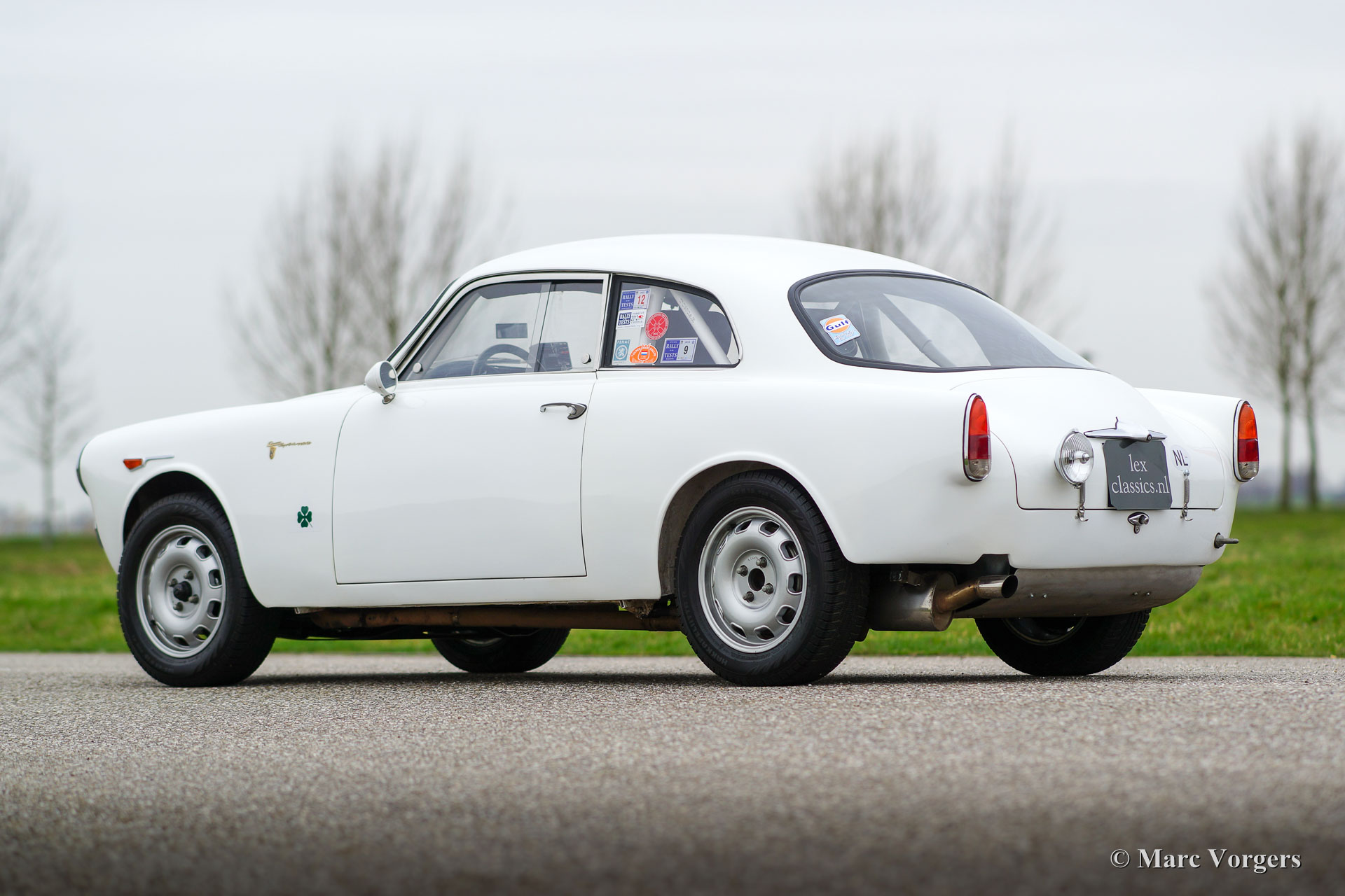Alfa Romeo Giulietta Sprint Veloce, year 1959. Chassis number AR1493E096XX. Colour white (Sardenia White) with a black half leather interior with an alcantara clad dashboard. This magnificent Alfa Romeo Giulietta Sprint Veloce was built on 30 July 1959. On August 1, the car was delivered to the first owner in Brescia, Italy. This Alfa Romeo Giulietta rally car was prepared extensively for historic (long distance) rally participation. The car features a full roll-cage, oil pan and petrol tank protector plates, an aluminium radiator, a special Stainless-Steel exhaust, an oil-cooler, extra petrol pump limited slip differential, tow hook at the front and the rear, special rally seats, four-point safety harnesses, Tripmaster, additional interior lamps and additional driving/ fog lamps at the front. This is a mighty impressive historic rally car!