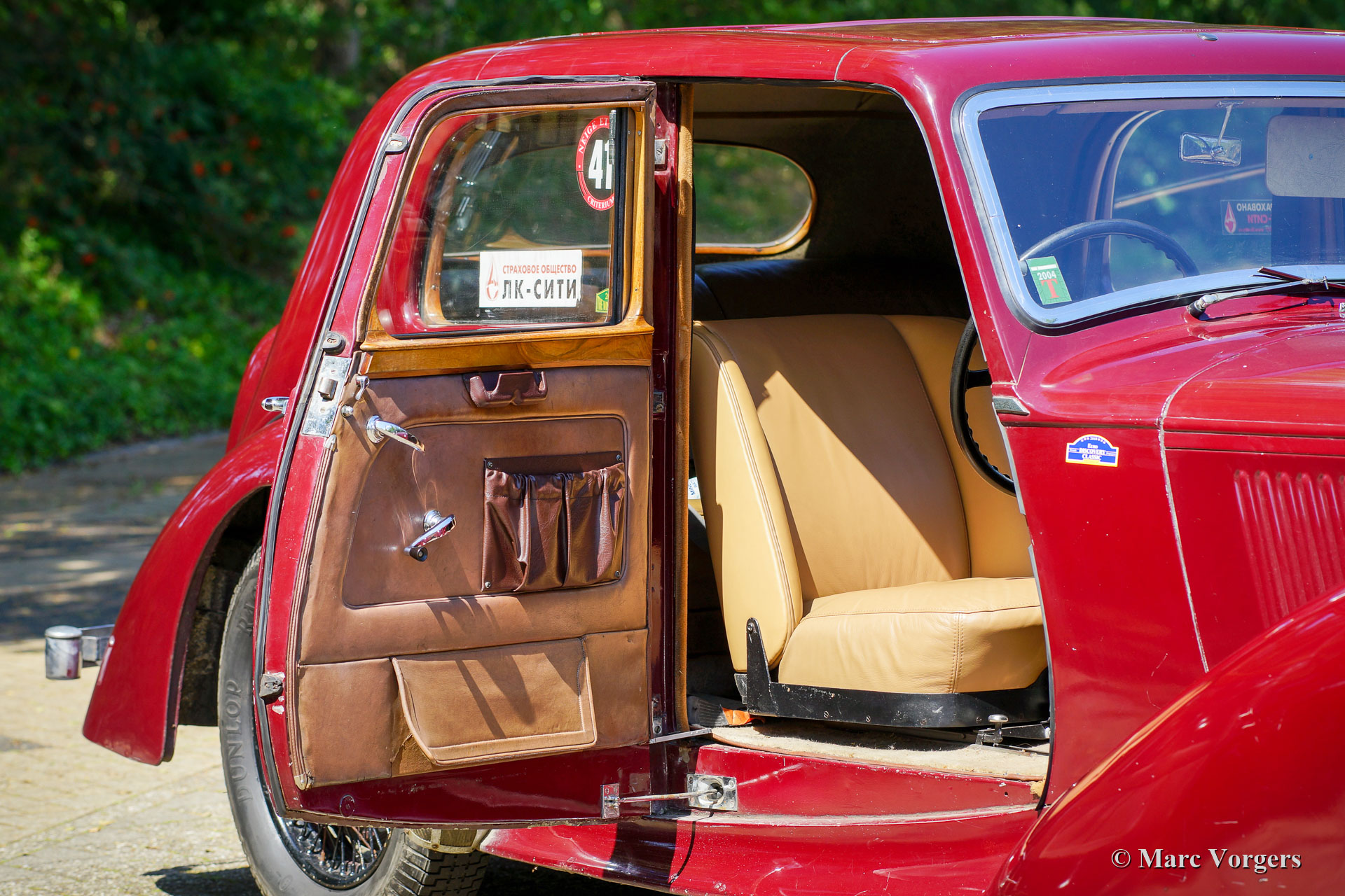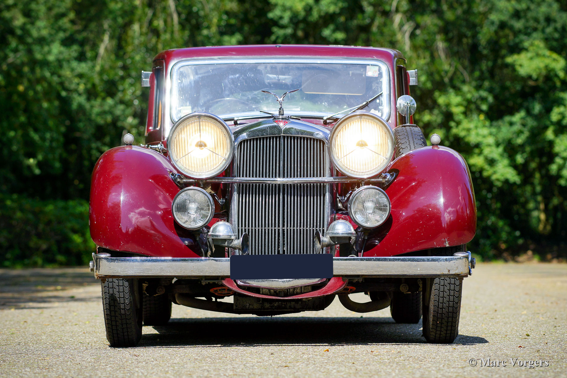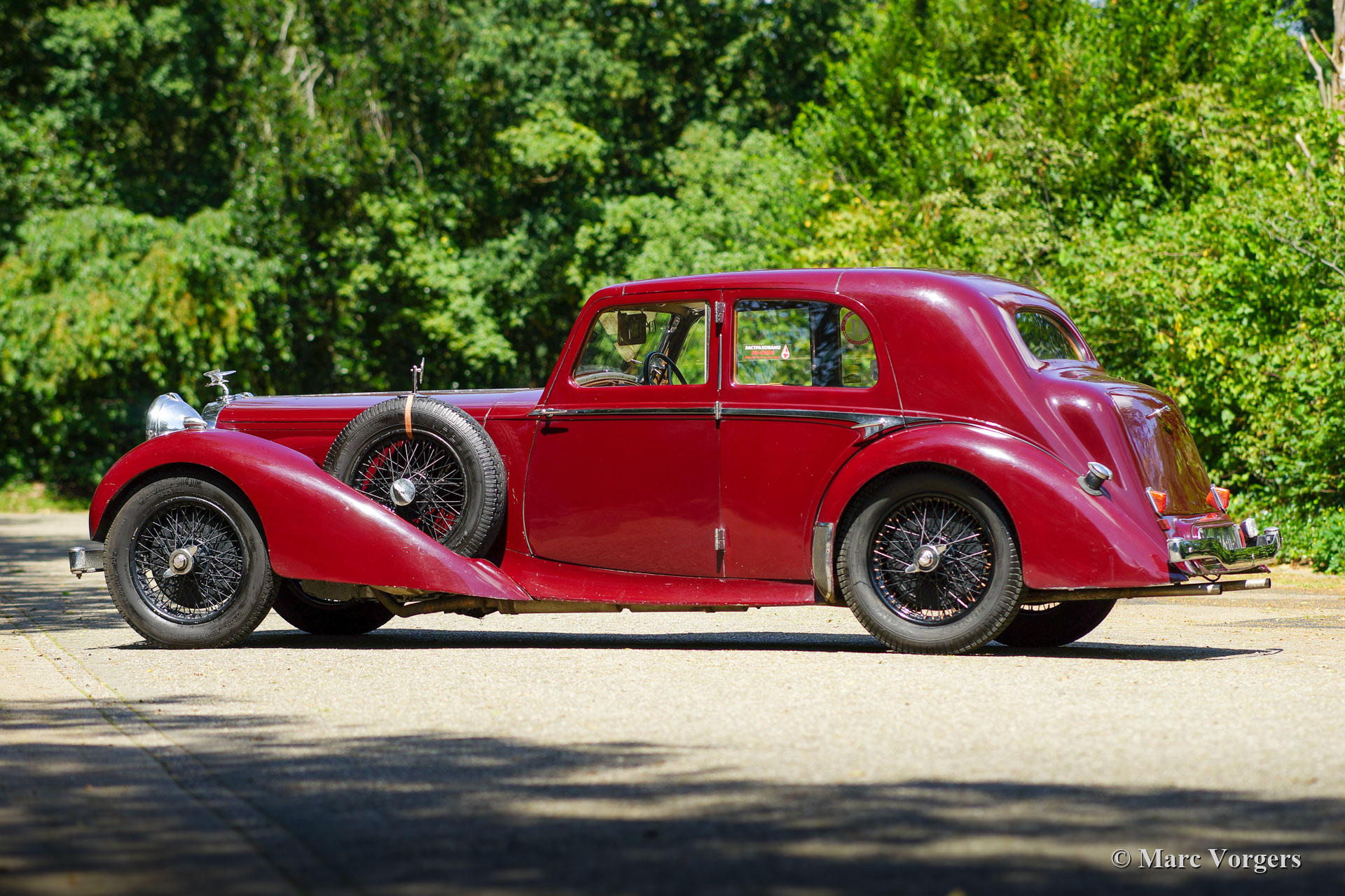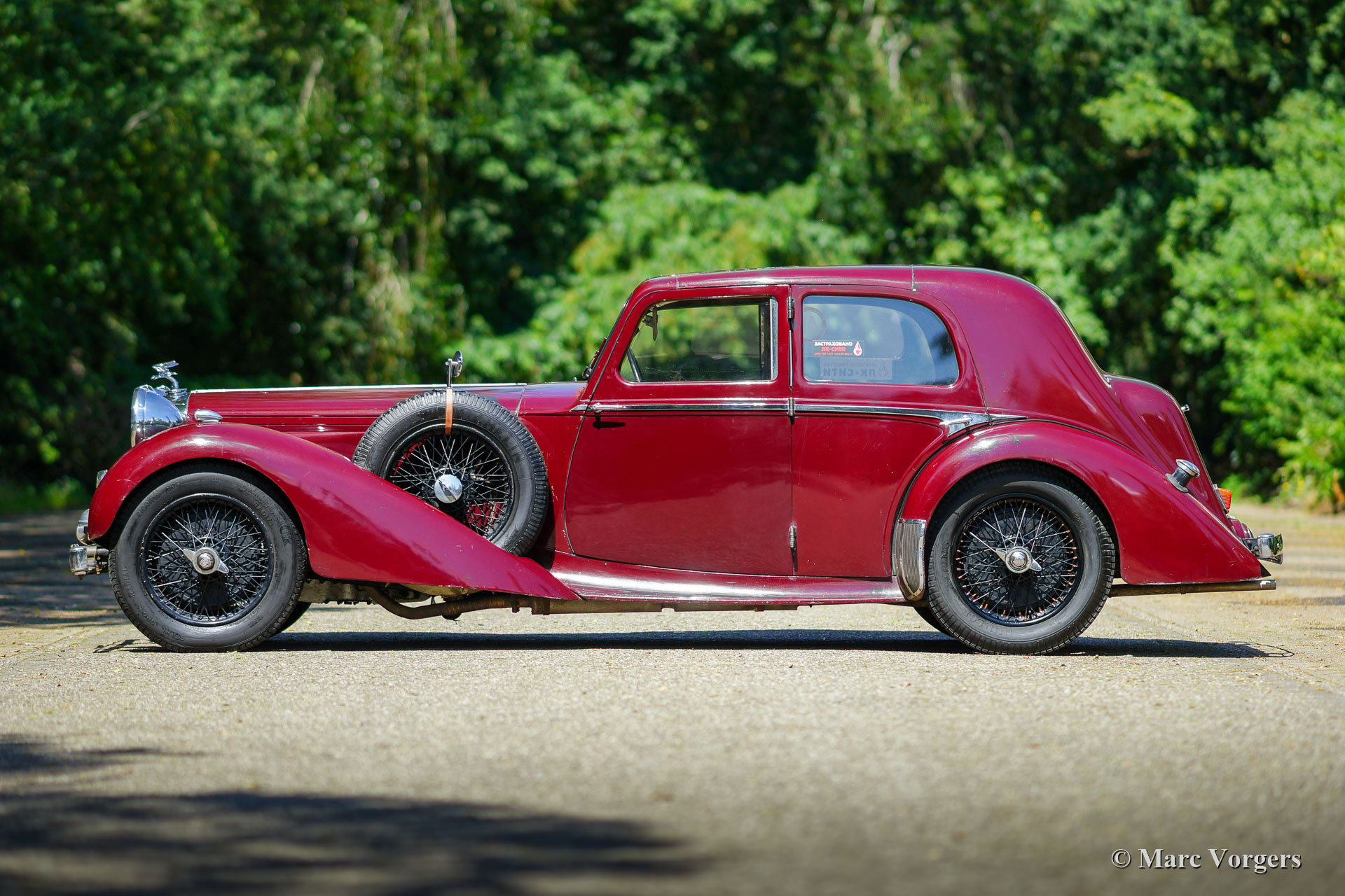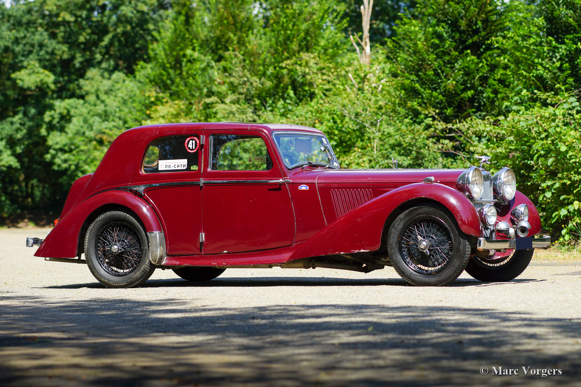 Alvis Speed 25 SC Charlesworth saloon, year 1939. Colour maroon red combined with a tan (beige) leather interior. This super original Alvis Speed 25 was imported to the Netherlands in September 1997. The car was never fully restored and kept as original as possible. Only the front seats were given new leather about a decade ago. The last owner had the car technically and mechanically brought up to date to participate in long distance touring rallies. The car has seen most of Europe, parts of Russia and even Moscow. The preparations included a better heating system and windscreen demister, servo power brakes and an improved cooling system. Recently a new aluminium cylinder head was fitted. This Alvis Speed 25 SC is a particularly good driver car with a patina of about 80 years of experience. This delightful Charlesworth saloon should not be restored but enjoyed ‘as is’!