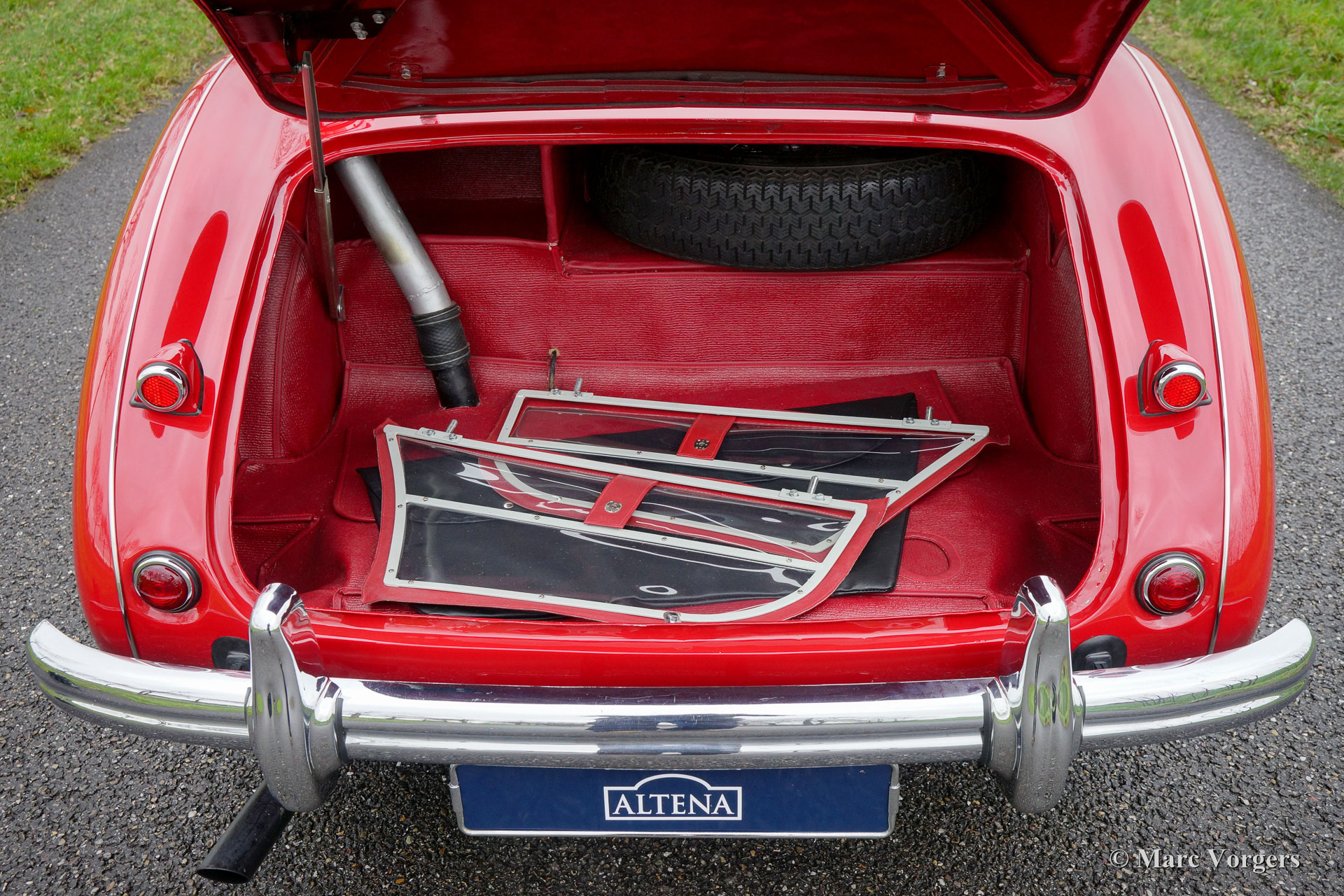 The former Healey models were more Spartan and featured fully detachable soft tops with separate side screens which could be stowed away in the booth.