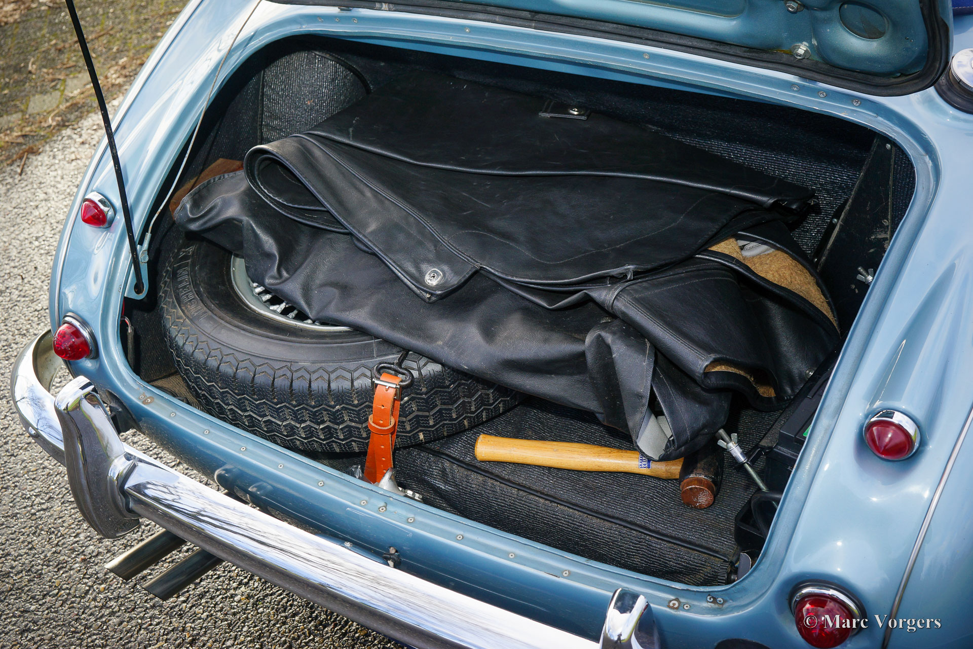 The former Healey models were more Spartan and featured fully detachable soft tops with separate side screens which could be stowed away in the booth.