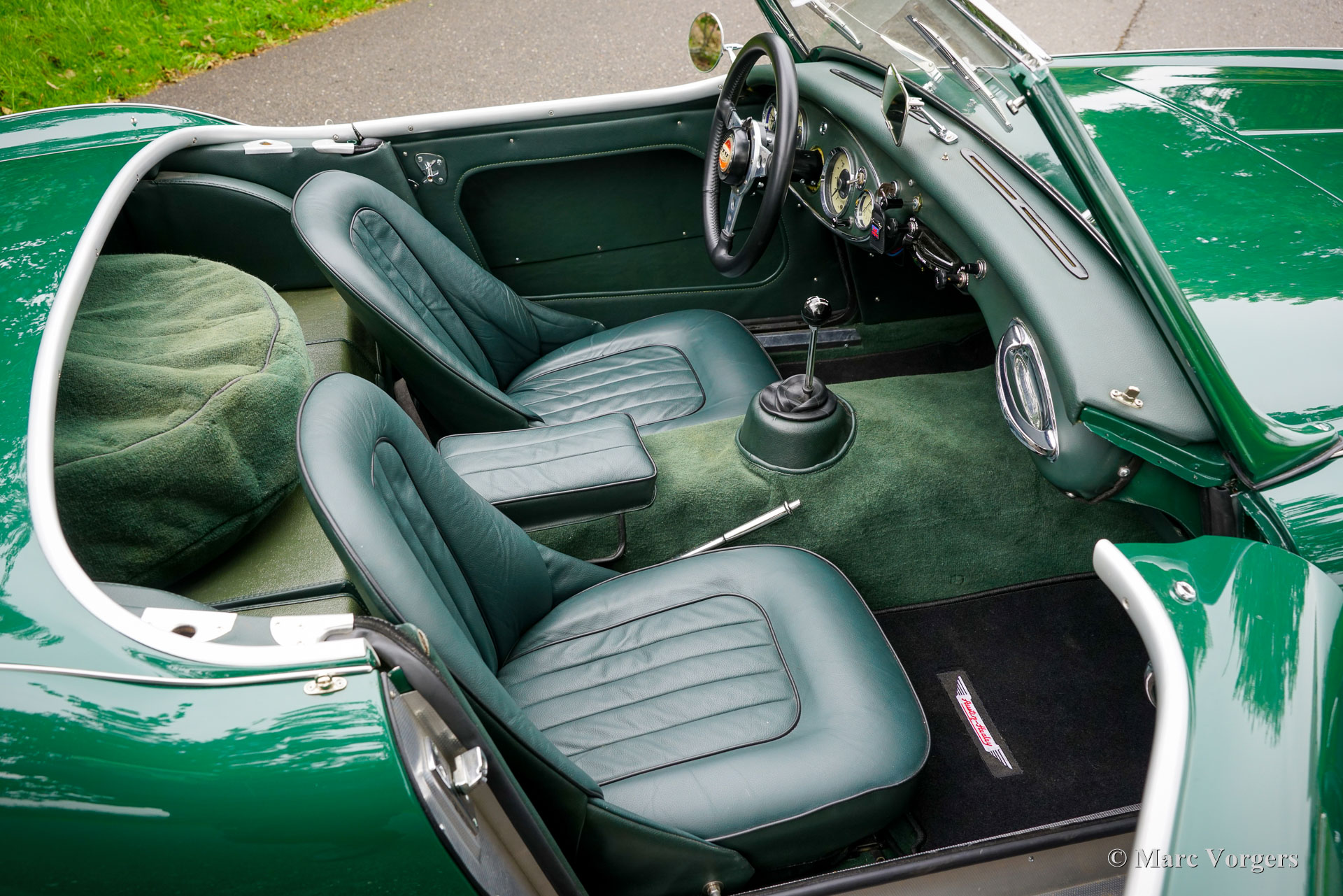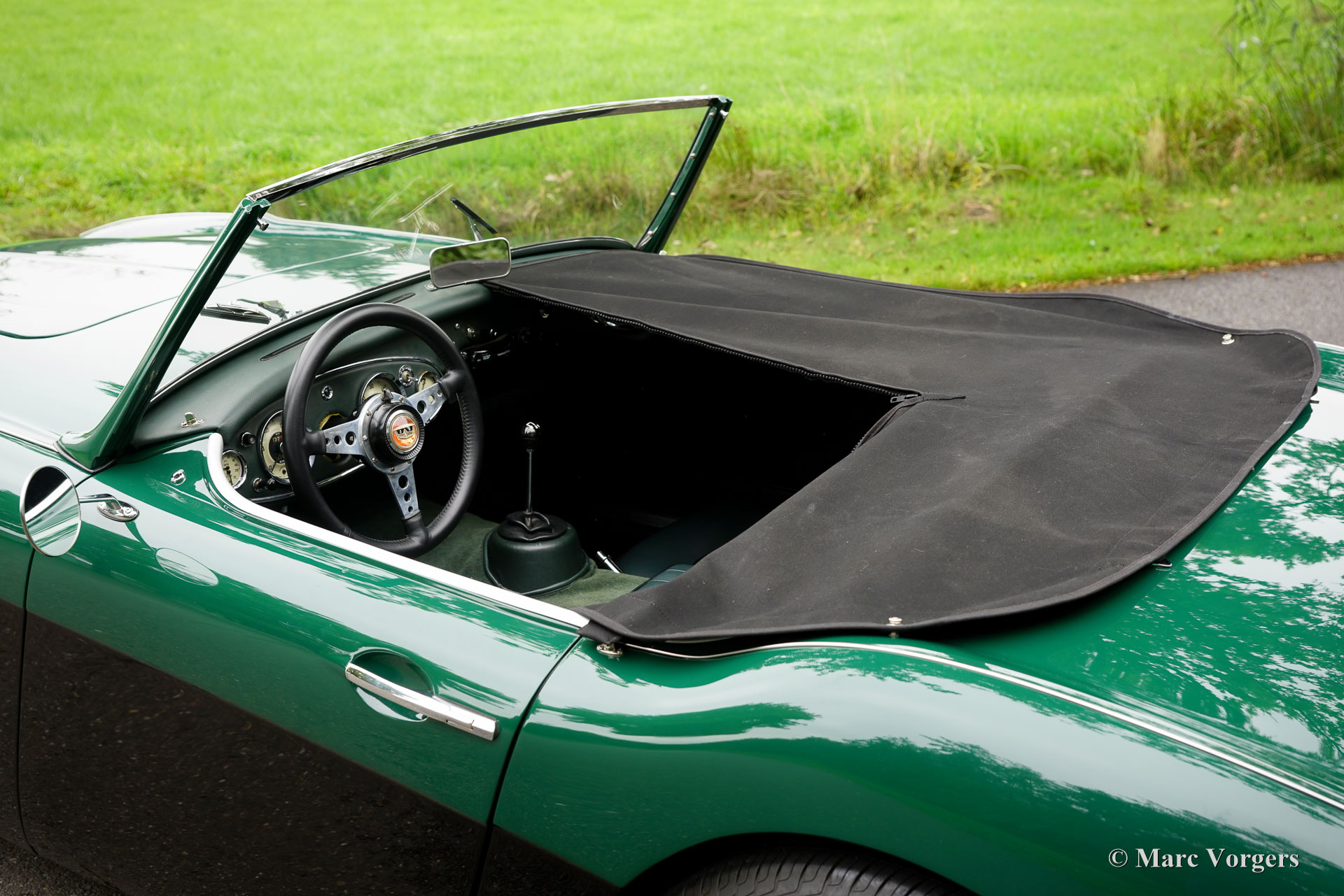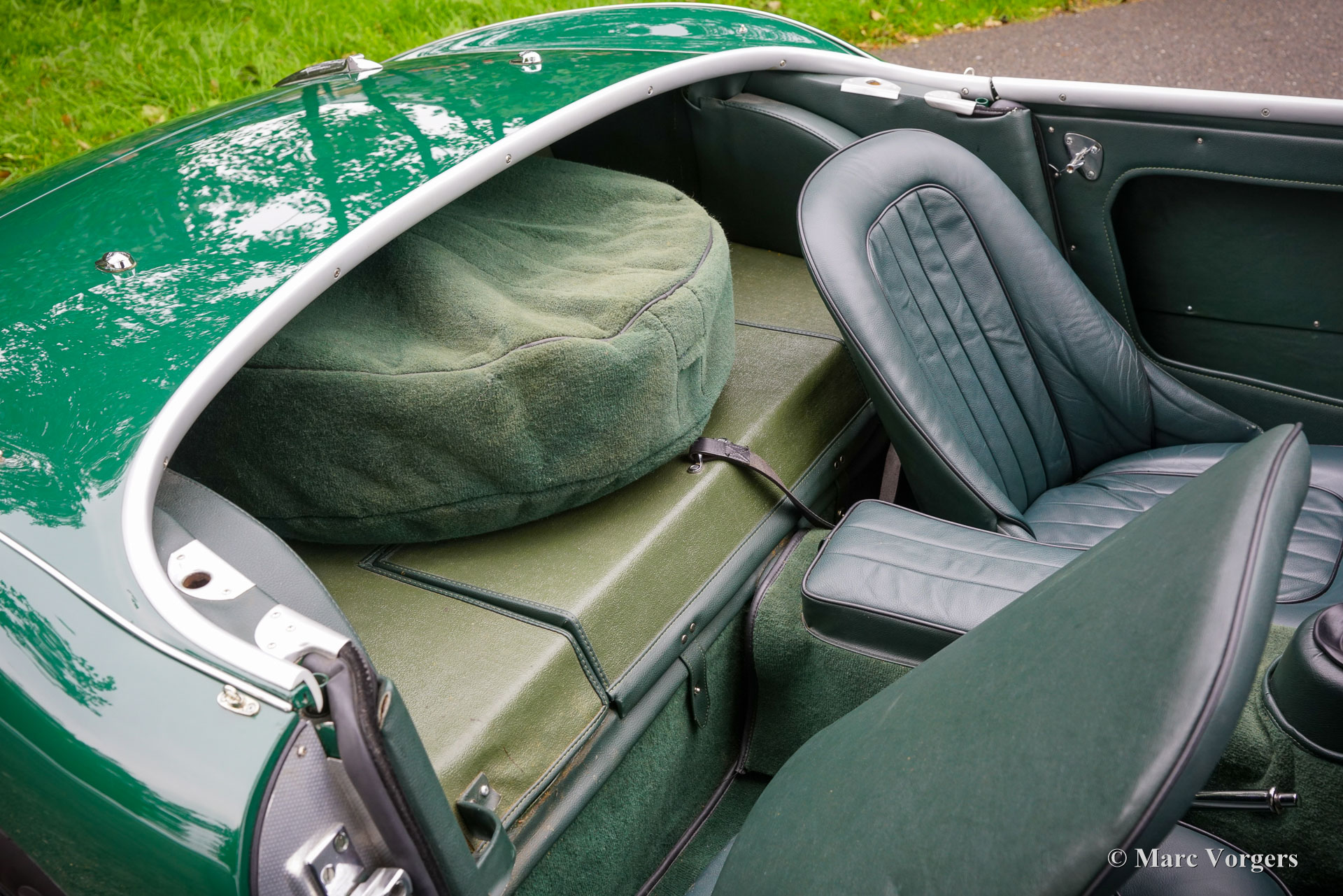 The former Healey models were more Spartan and featured fully detachable soft tops with separate side screens which could be stowed away in the booth.