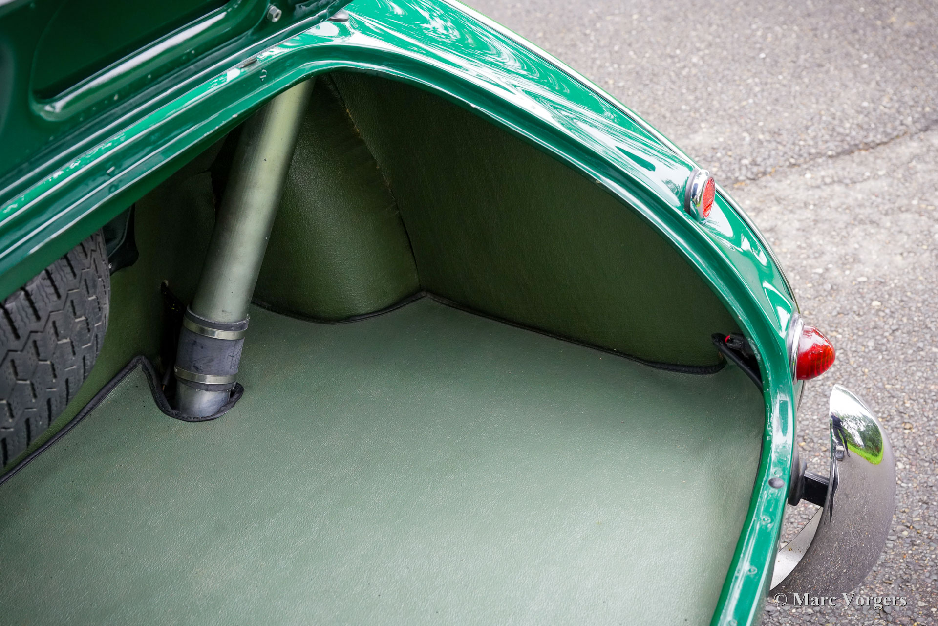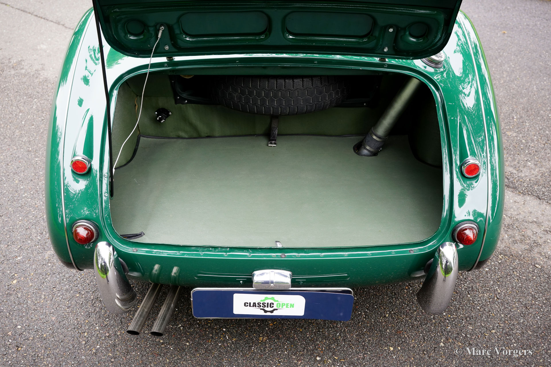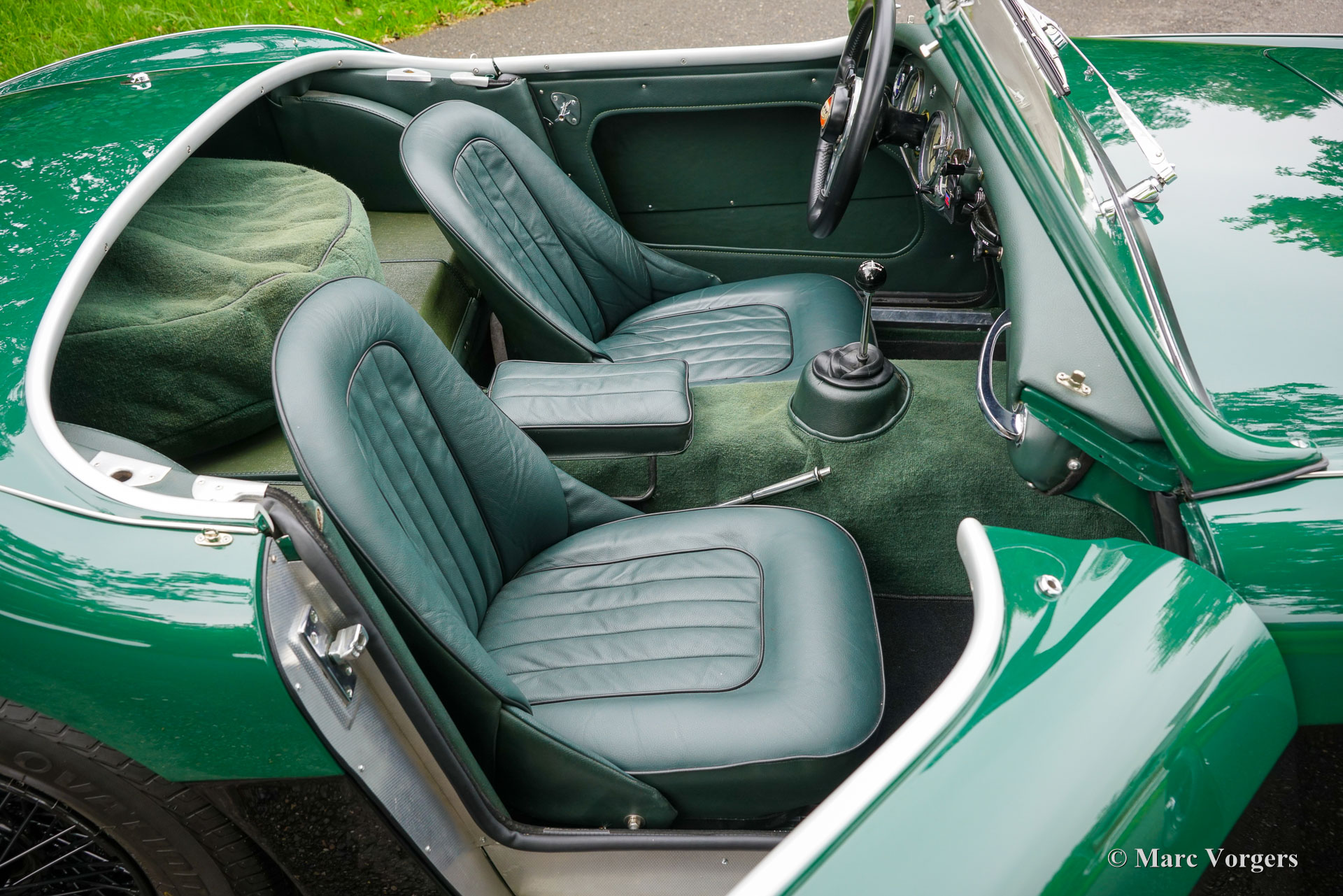 The former Healey models were more Spartan and featured fully detachable soft tops with separate side screens which could be stowed away in the booth.