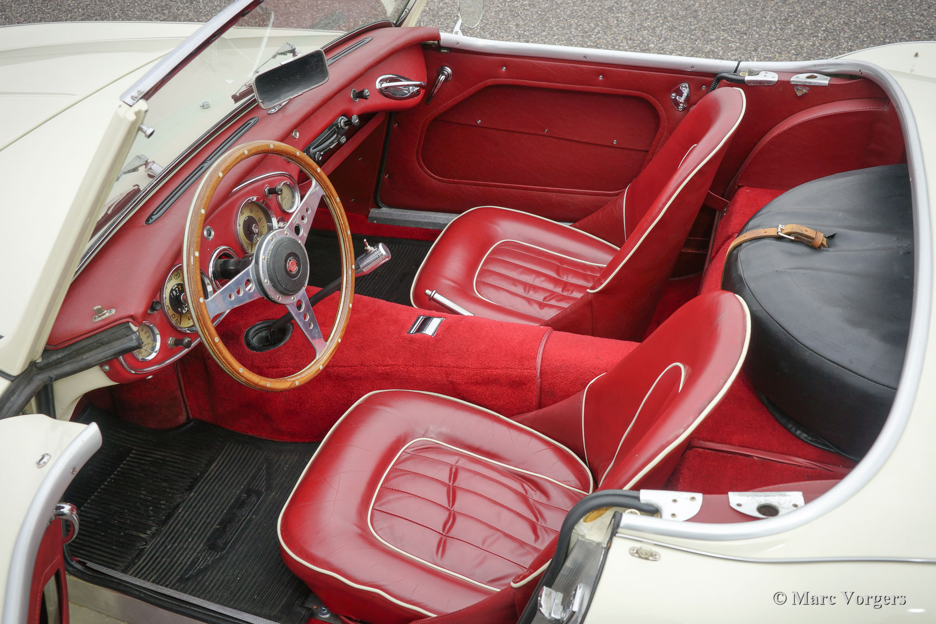 The former Healey models were more Spartan and featured fully detachable soft tops with separate side screens which could be stowed away in the booth.