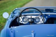 Austin Healey 100/M BN2 ‘Le Mans’, year 1956. Matching numbers and colours, a Heritage certificate to confirm this is present. This Healey 100 ‘Le Mans’ is a rare in period converted Le Mans model, the car is registered in the US Le Mans register! Colour Ice Blue metallic combined with a blue leather interior and dark blue carpet. Blue soft-top, tonneau-cover and side-screens. This fabulous ‘Big Healey’ was extensively restored by a Dutch Austin Healey specialist in the years 2015 – 2018. A complete restoration file with photo report and invoices is present. This Austin Healey 100/M ‘Le Mans’ is in top condition; concours! Of course, the engine and gearbox were overhauled, as were the dashboard gauges. The body was restored from the bare metal, the body shows perfect panel fit and crisp lines. All the chrome parts were re-chromed to perfection. The special ‘Le Mans’ kit consists of a special cylinder- head, a high-spec camshaft, S.U. H6 carburettors with a cold-air box, louvres in the bonnet and a leather retaining strap over the bonnet. The BN2 model features overdrive on 3rd and 4th gear. The car features disc brakes at the front wheels, a side exhaust, an aluminium rocker cover new wiring loom, chrome wire wheels and additional Lucas SFT576 wide-beam fog-lamps at the front. The car comes complete with the very rare original service (workshop) manual, owner’s manual and tool-set!