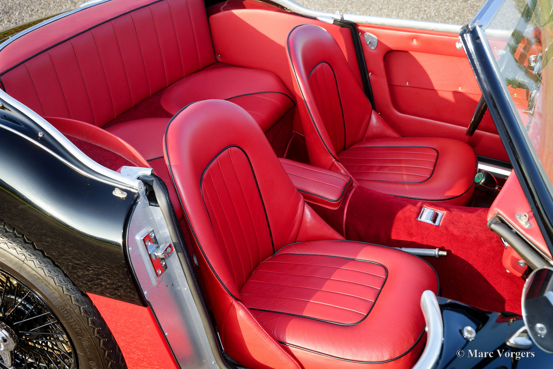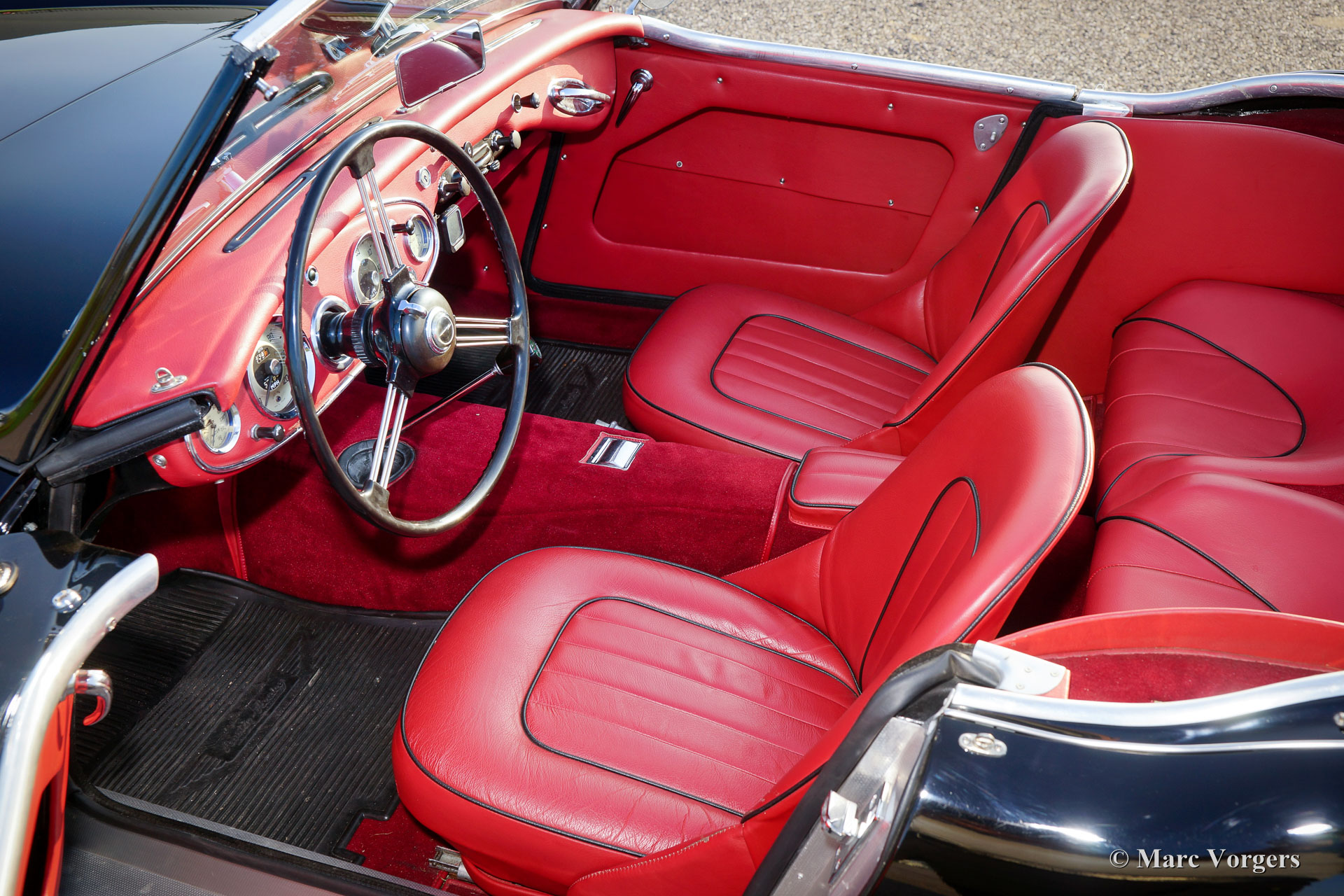 The former Healey models were more Spartan and featured fully detachable soft tops with separate side screens which could be stowed away in the booth.