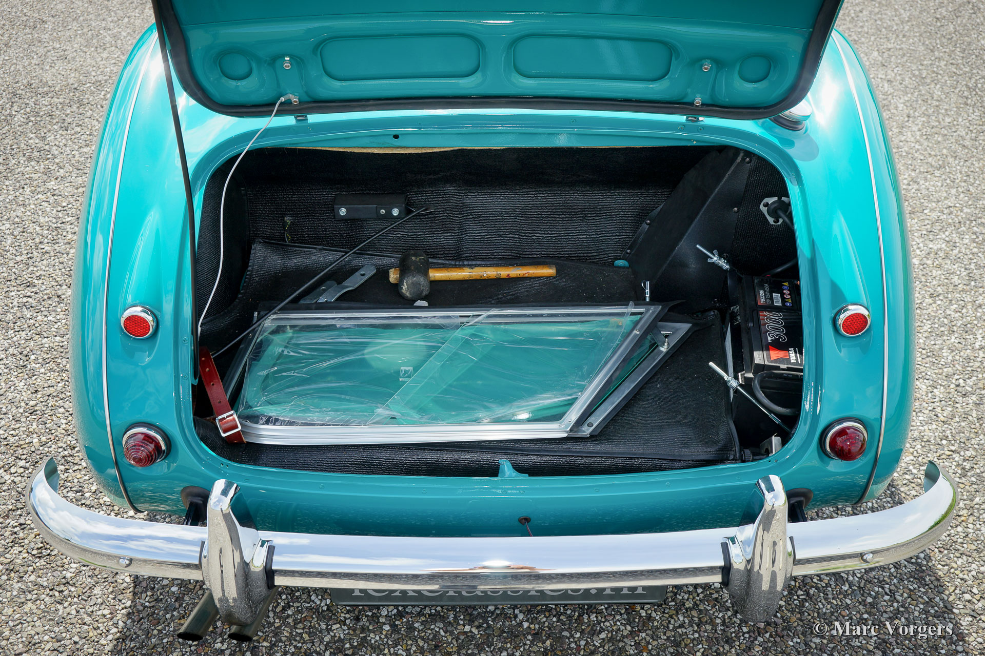 The former Healey models were more Spartan and featured fully detachable soft tops with separate side screens which could be stowed away in the booth.
