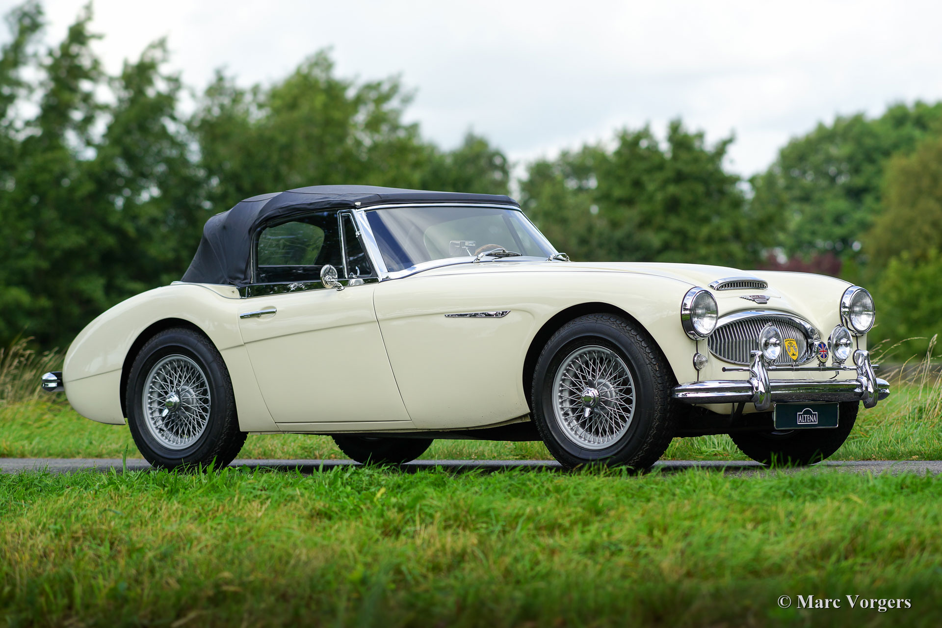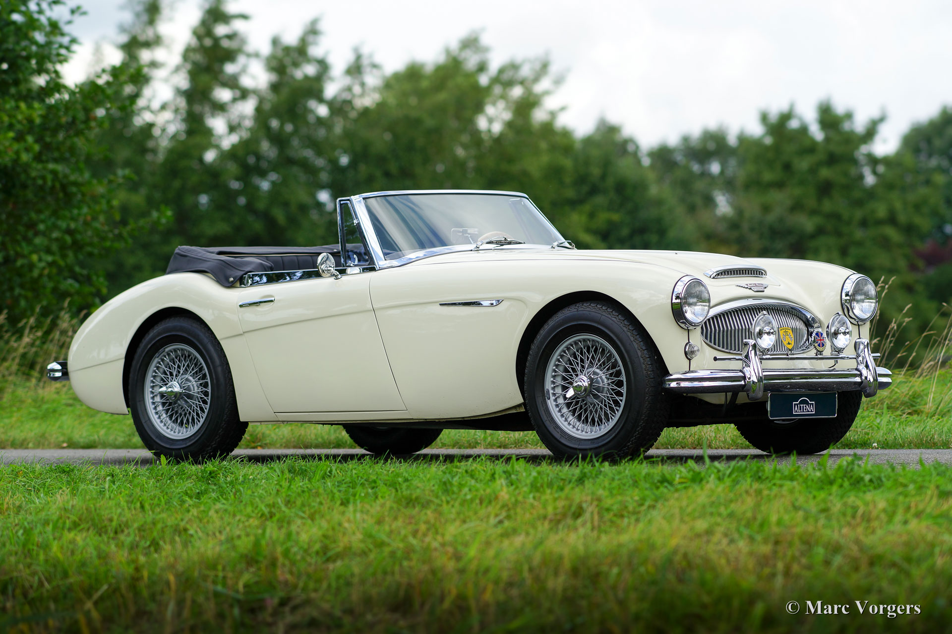 Austin Healey 3000 Mk IIa (convertible), year 1962. Chassis number HBJ7L/209XX. Colour Old English White with a black leather interior trimmed with white piping and black carpet. Black vinyl soft-top, hood cover and tonneau-cover. This gorgeous ‘Big Healey’ was extensively restored in the past, the automobile is in excellent to superb condition! The bodywork shows a beautiful panel-fit, excellent paintwork, and the interior and hood are in pristine condition. This Austin Healey is fitted with overdrive, silver painted wire wheels, a badge-bar with additional spot-lamps and badges and an alternator (built in the original dynamo housing). This is a wonderful and very clean ‘Big Healey’ with a perfectly detailed engine room! This is a perfectly driving ‘Big Healey’ in excellent condition!