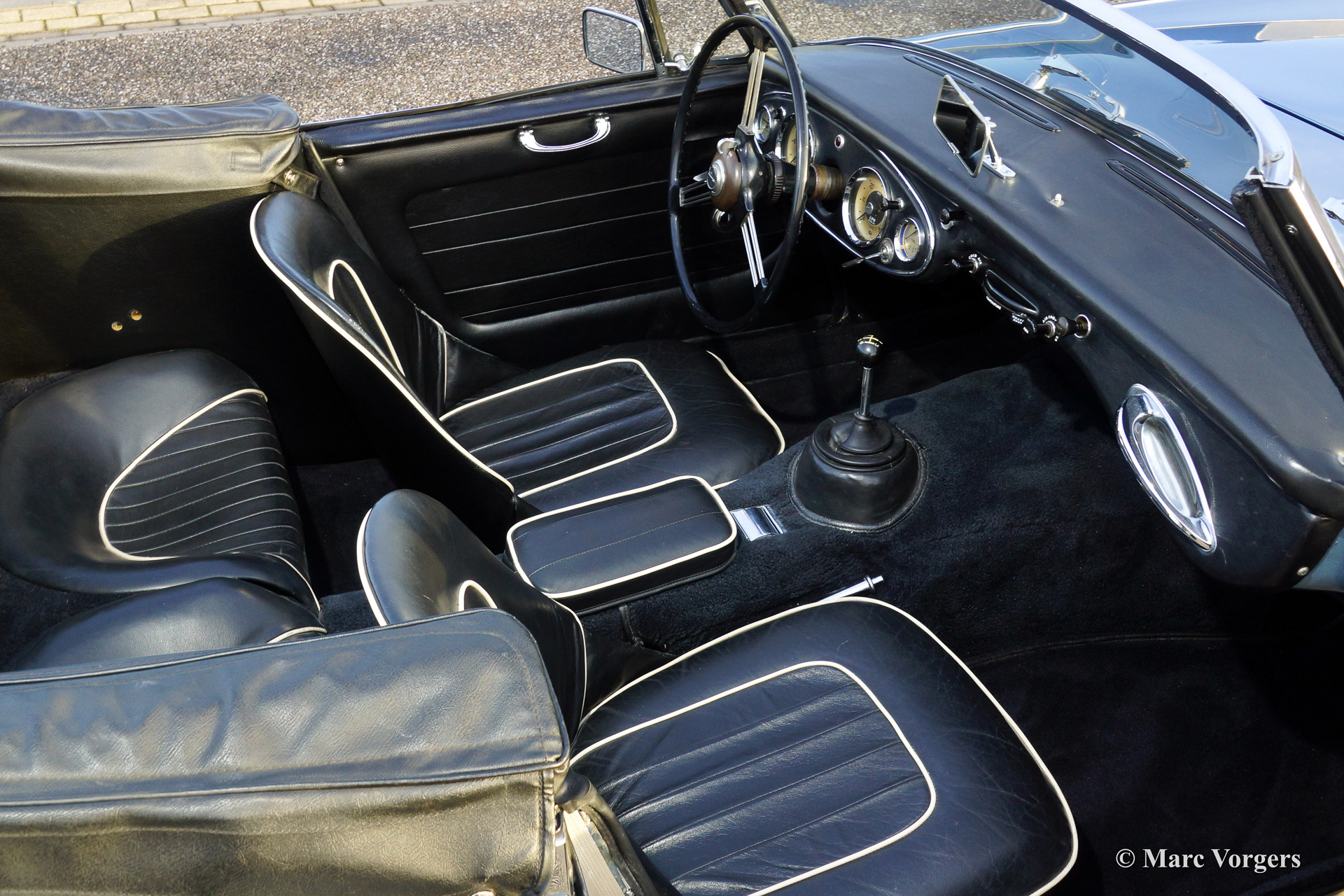 The former Healey models were more Spartan and featured fully detachable soft tops with separate side screens which could be stowed away in the booth.