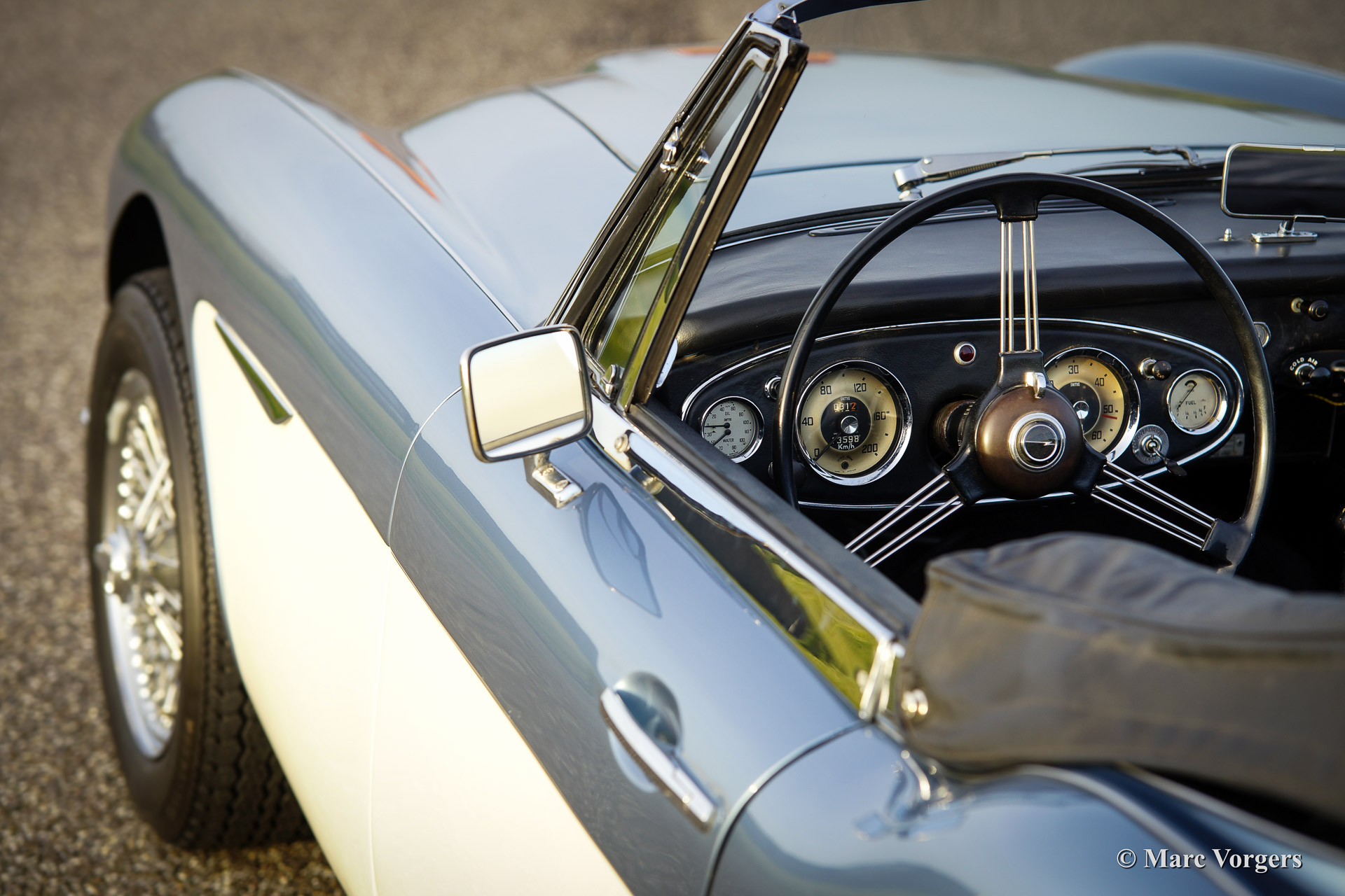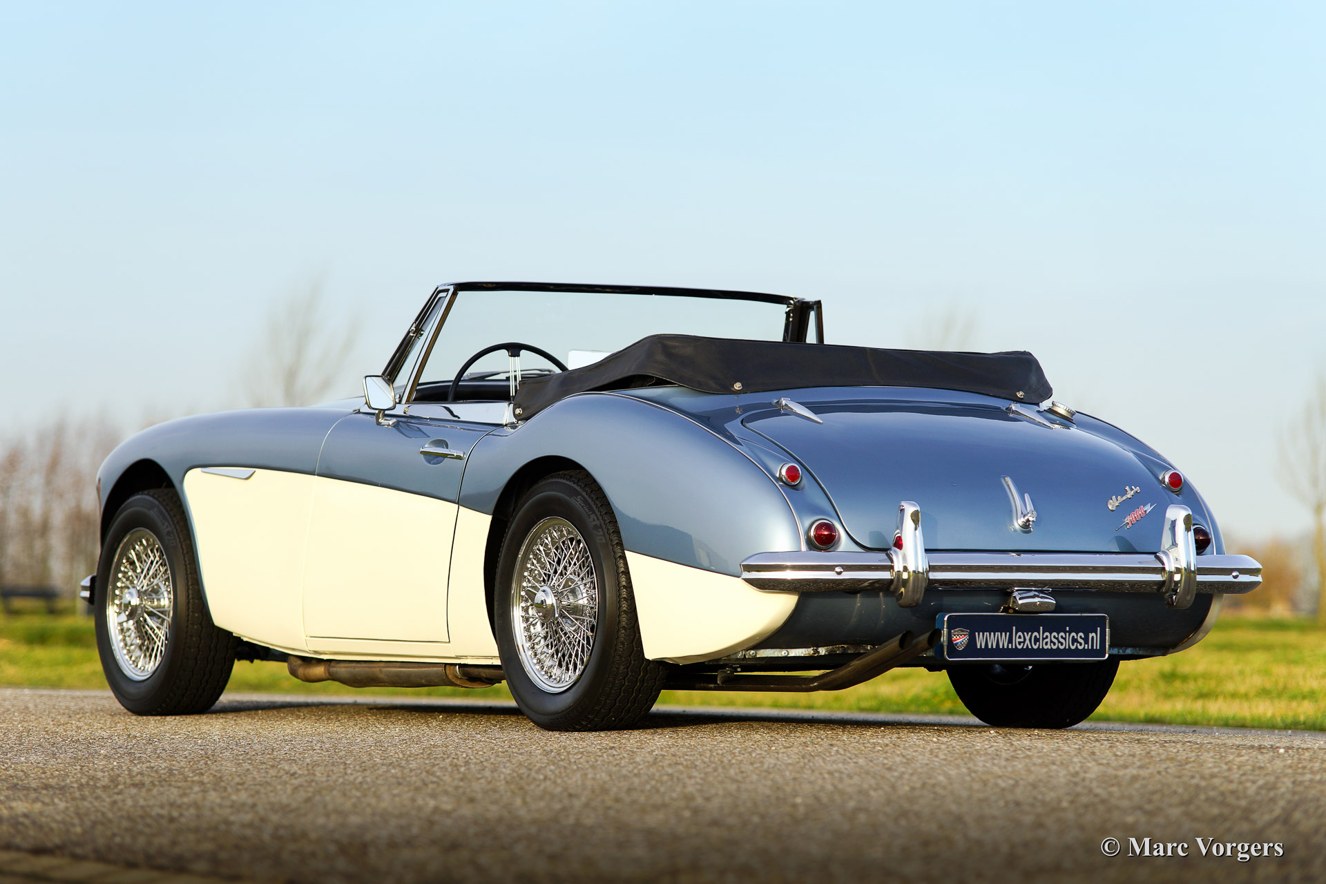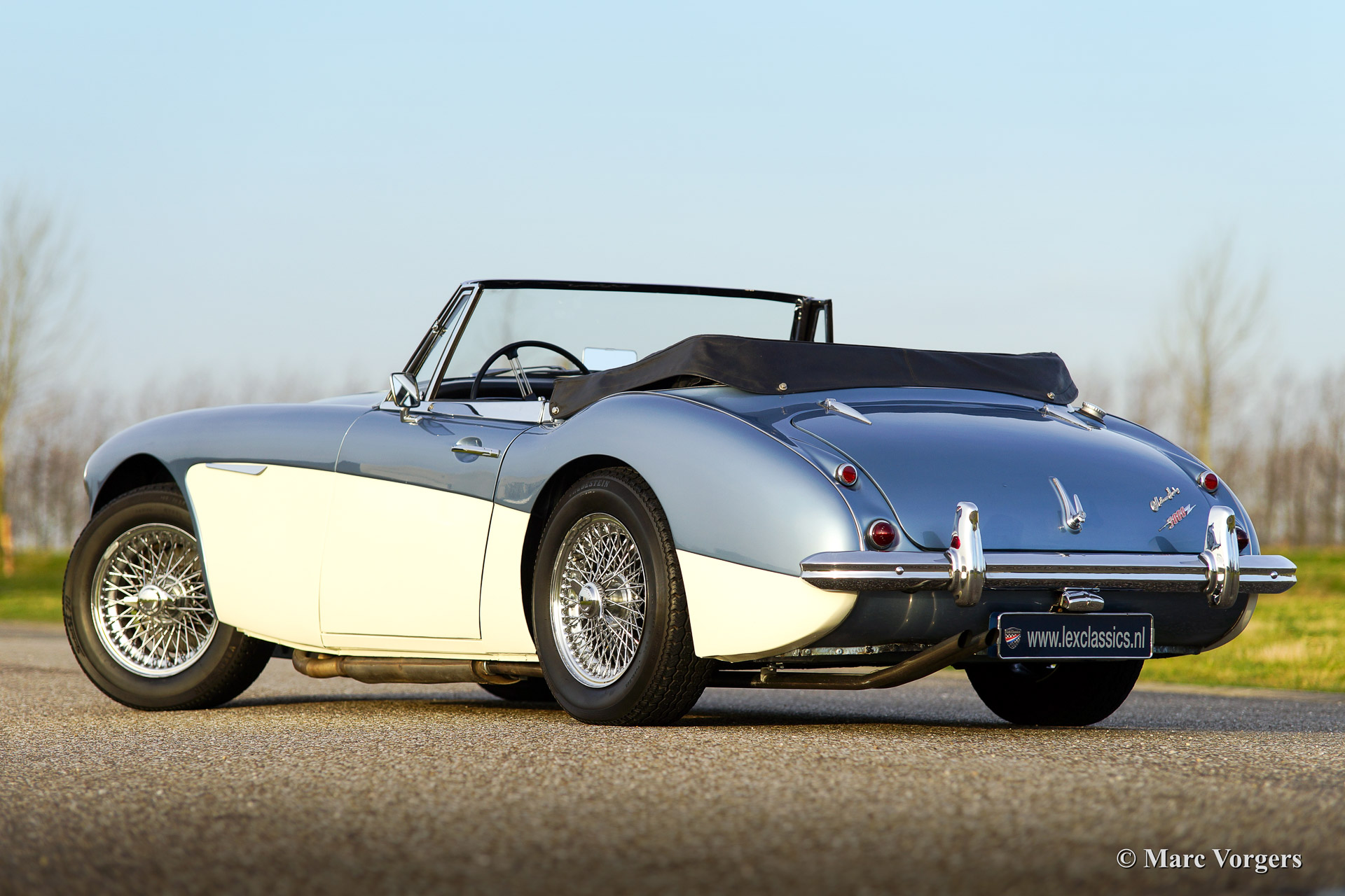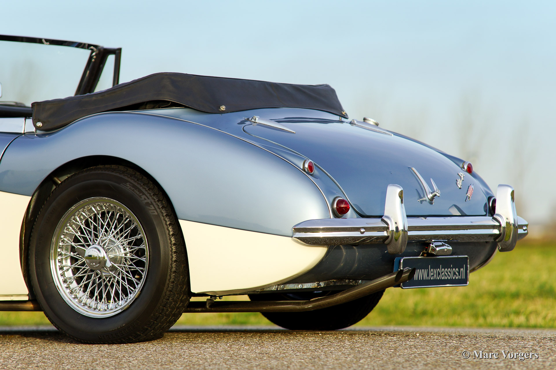 Austin Healey 3000 Mk IIa (convertible), year 1963. Chassis number: HBY7L/21902, engine number: 29AW/RC/H13422, matching numbers. Colour pale blue metallic over crème white. Beautiful original black leather interior trimmed with white piping. Black vinyl soft top and hood cover. This fantastic Austin Healey was sold new in the Netherlands in 1963! The car sports the classic blue registration number MS-78-96! The car has been perfectly maintained over the years; this Healey is in excellent condition! The last and very cautious owner purchased this beauty in the year 1980... 33 years ago! Recently the car was fully inspected in the Lex Classics workshop and fitted with a new aluminium petrol tank, stainless steel exhaust system, new water pump and a new windscreen. This fine Healey Mk IIa drives and sounds delightful. The Austin Healey Mk II is the first Big Healey featuring the convenient convertible top and roll up windows. This combined with the classic dashboard of the Mk I and Mk II models!