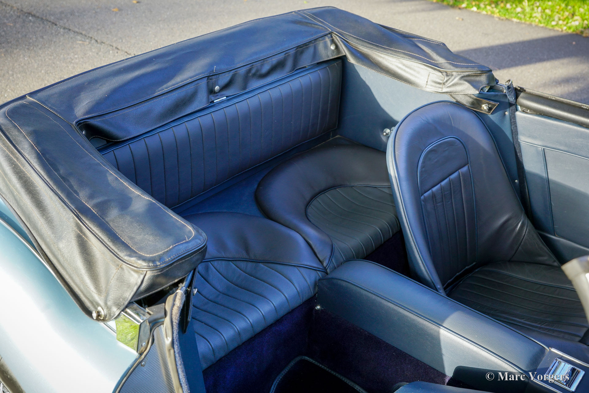 The former Healey models were more Spartan and featured fully detachable soft tops with separate side screens which could be stowed away in the booth.