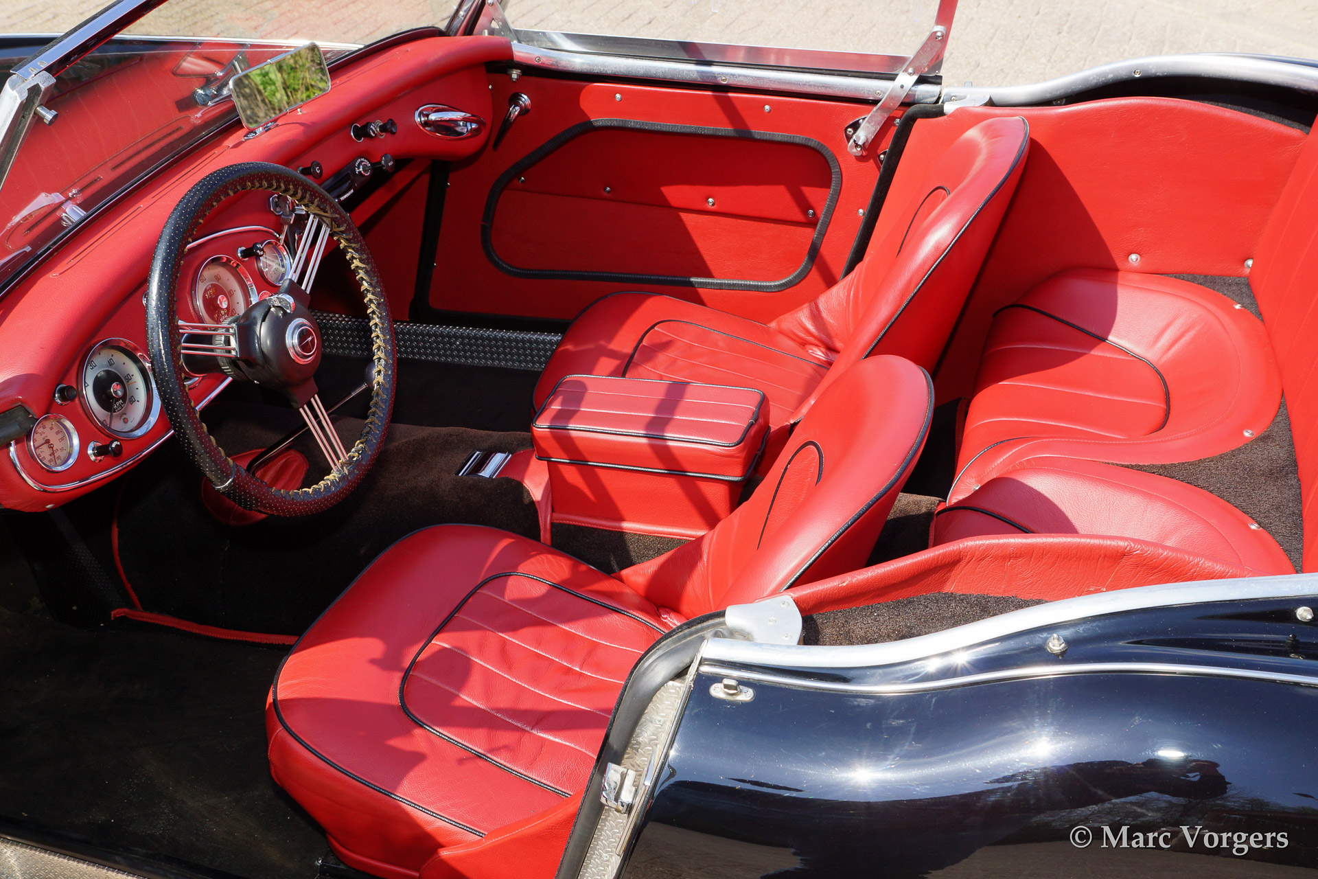 The former Healey models were more Spartan and featured fully detachable soft tops with separate side screens which could be stowed away in the booth.