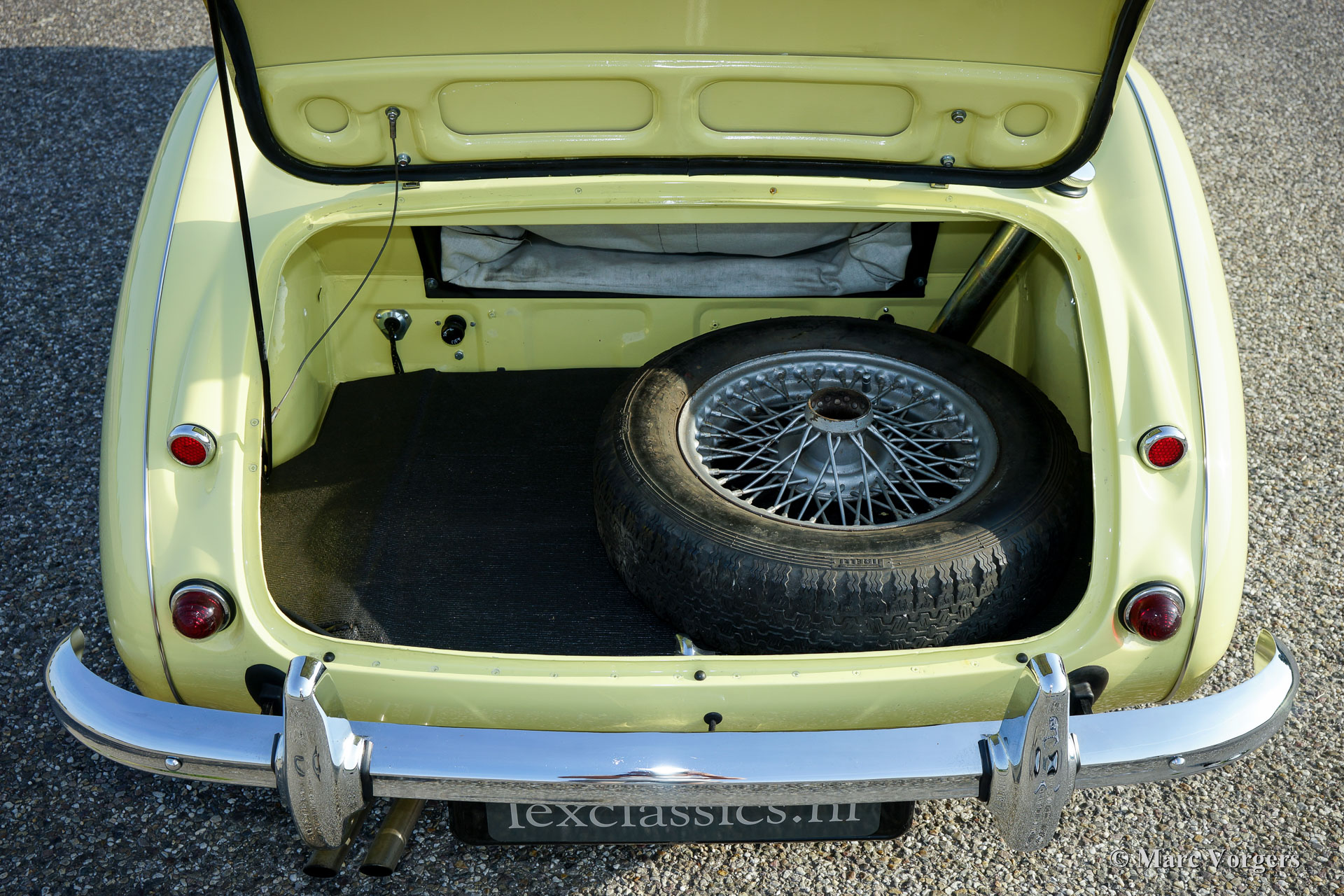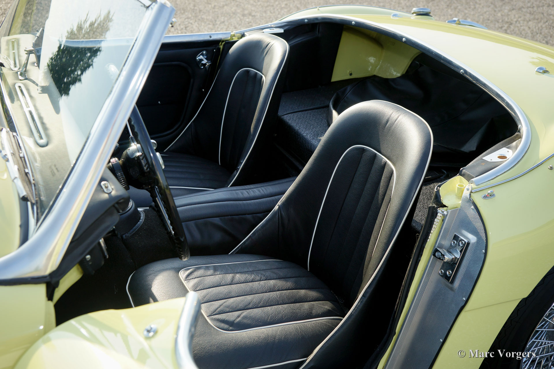 The former Healey models were more Spartan and featured fully detachable soft tops with separate side screens which could be stowed away in the booth.