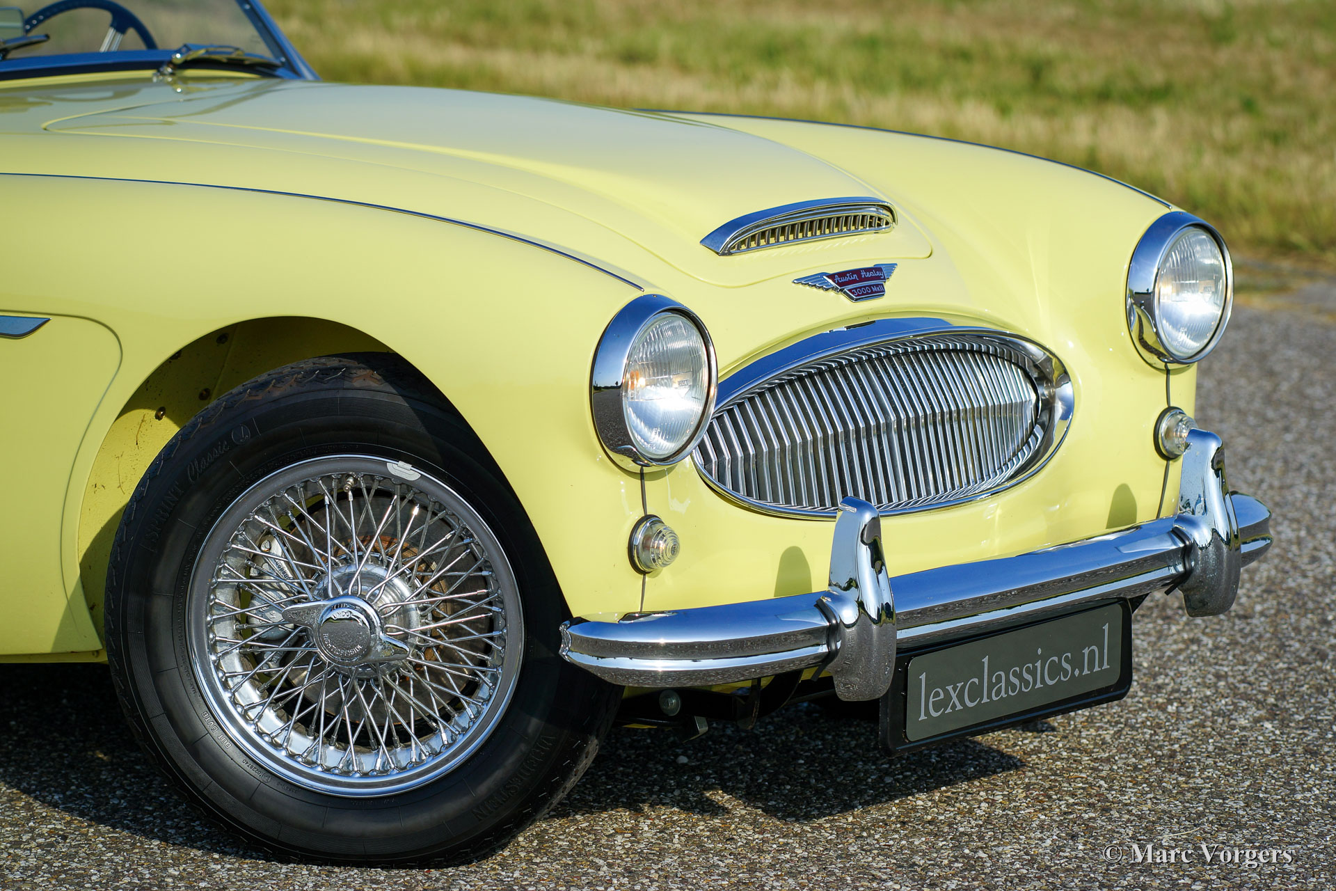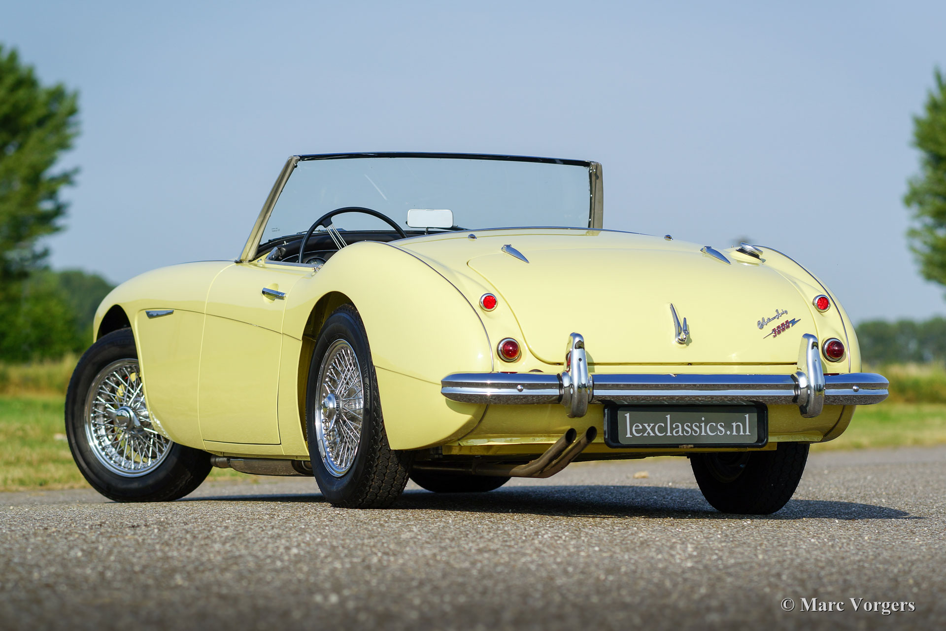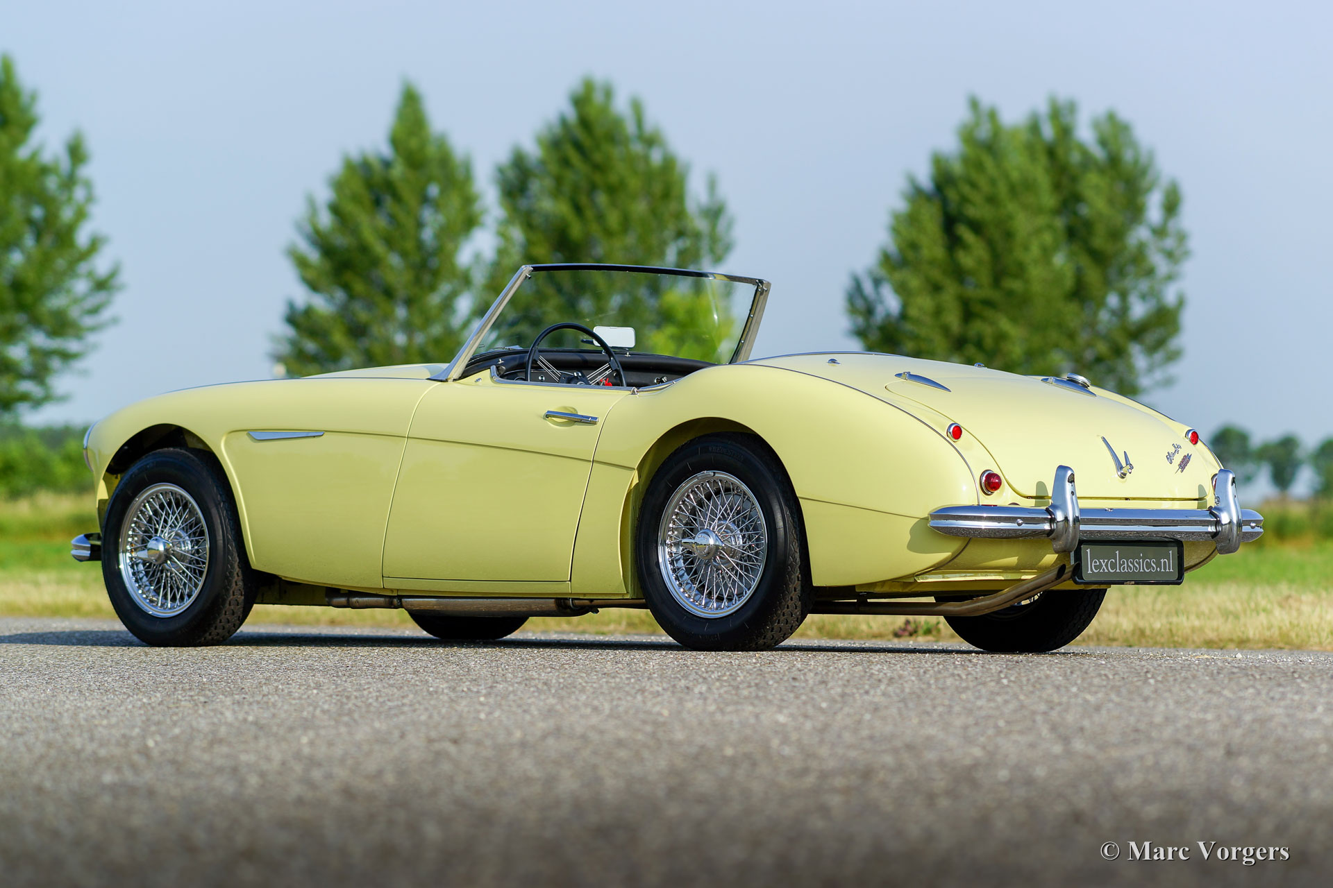Austin Healey 3000 Mk I (BN7) two-seater, year 1961. Colour primrose yellow with a black leather interior trimmed with white piping. Black carpet, black mohair soft-top, aluminium side-screens and a black tonneau-cover. This is a rare and sought-after BN7 two-seater of which only 2.825 specimen have been built. This magnificent ‘Big Healey’ was extensively and beautifully body-off restored. The engine and gearbox were also fully overhauled in the process. This fine Austin Healey is in superb condition! You are offered the possibility to have this car modified to ‘rally-look’. Then the bumpers will be removed, at the rear chrome over-riders will be fitted and at the front a pair of fog/ spot lamps will be mounted. Additionally, black painted wire wheels will be fitted. This is a splendid specimen and a superb driver!