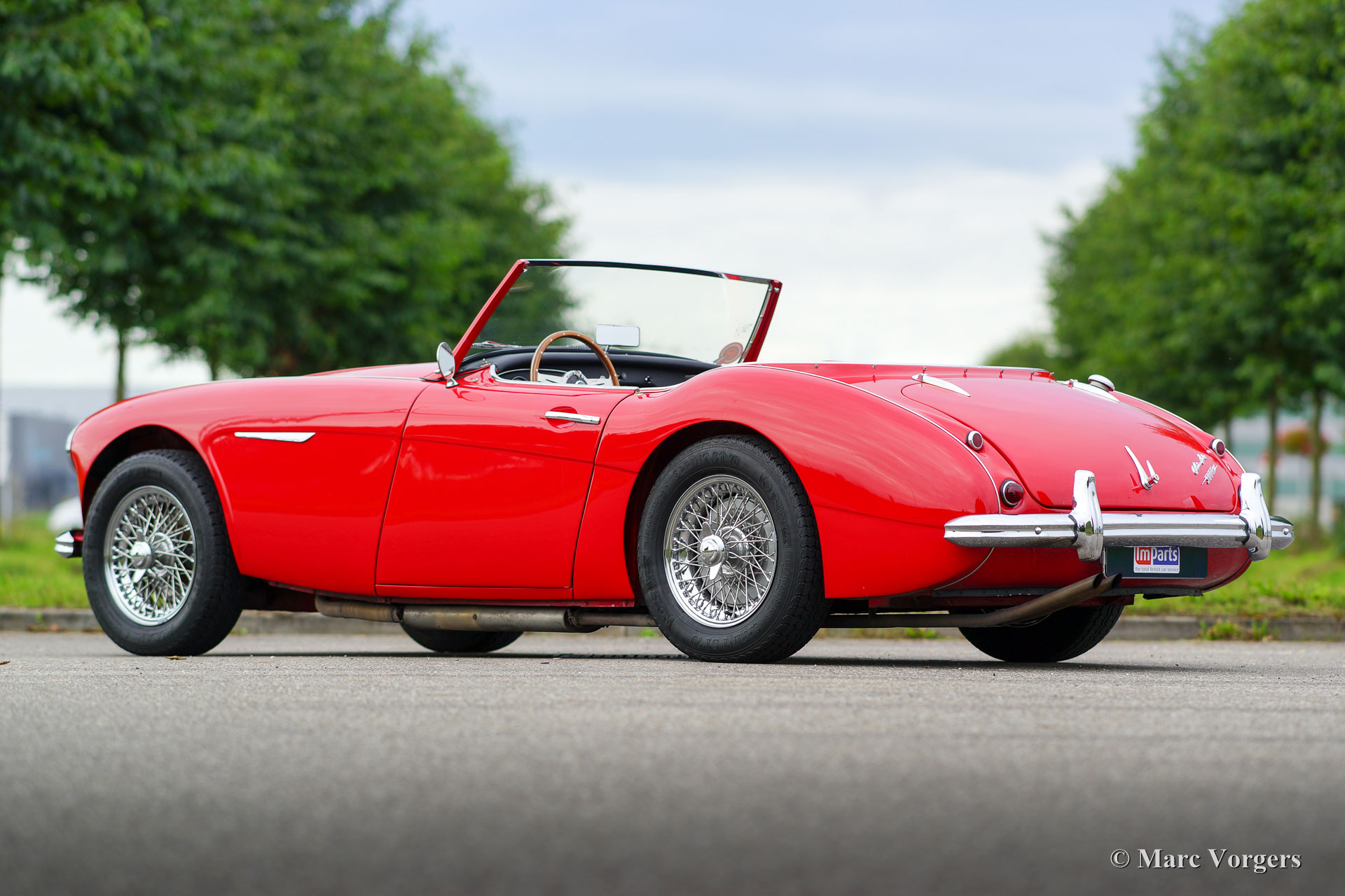 Austin Healey 3000 Mk II (BT7), year 1962. Colour red with a black leather interior trimmed with red piping. Black carpet and black soft top. This wonderful Austin Healey Mk II is a rare three carburettor BT7 (2+2) model. The automobile was imported to the Netherlands in the year 2007. A few years ago the car was extensively restored, a photo reportage of the restoration is present, and many invoices are also at hand. The (service) history is known since 2007. The car has known only one owner since its restoration. This Austin Healey is in excellent condition and the car drives perfectly. This fine ‘Big Healey’ features chrome wire wheels, overdrive, side screens and a tonneau cover.