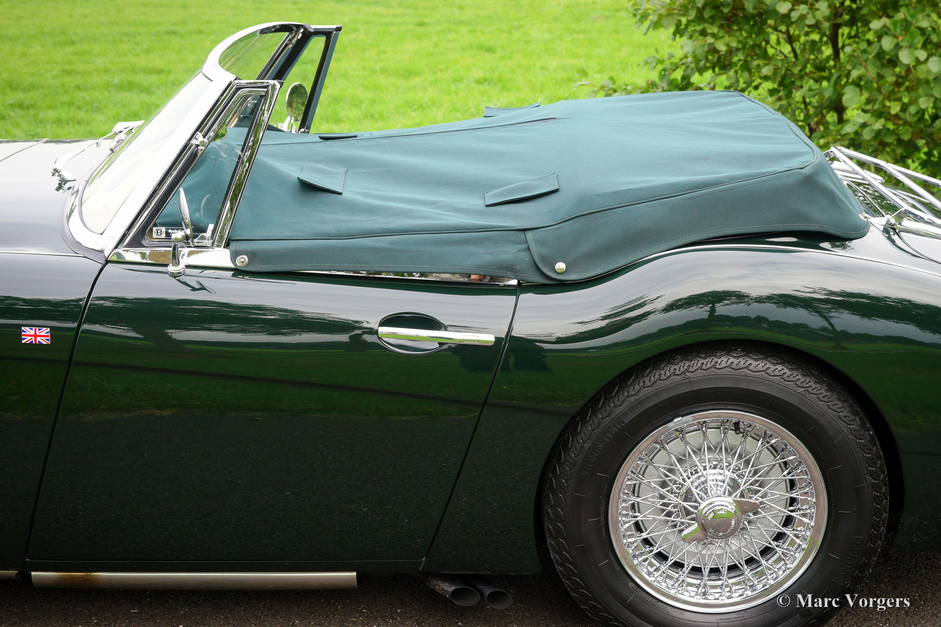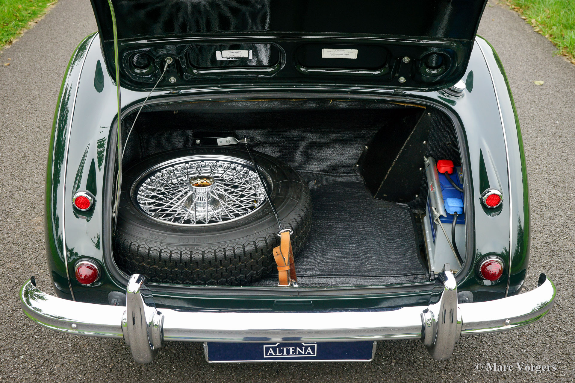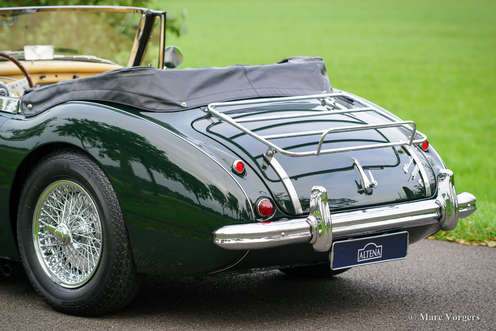 The former Healey models were more Spartan and featured fully detachable soft tops with separate side screens which could be stowed away in the booth.