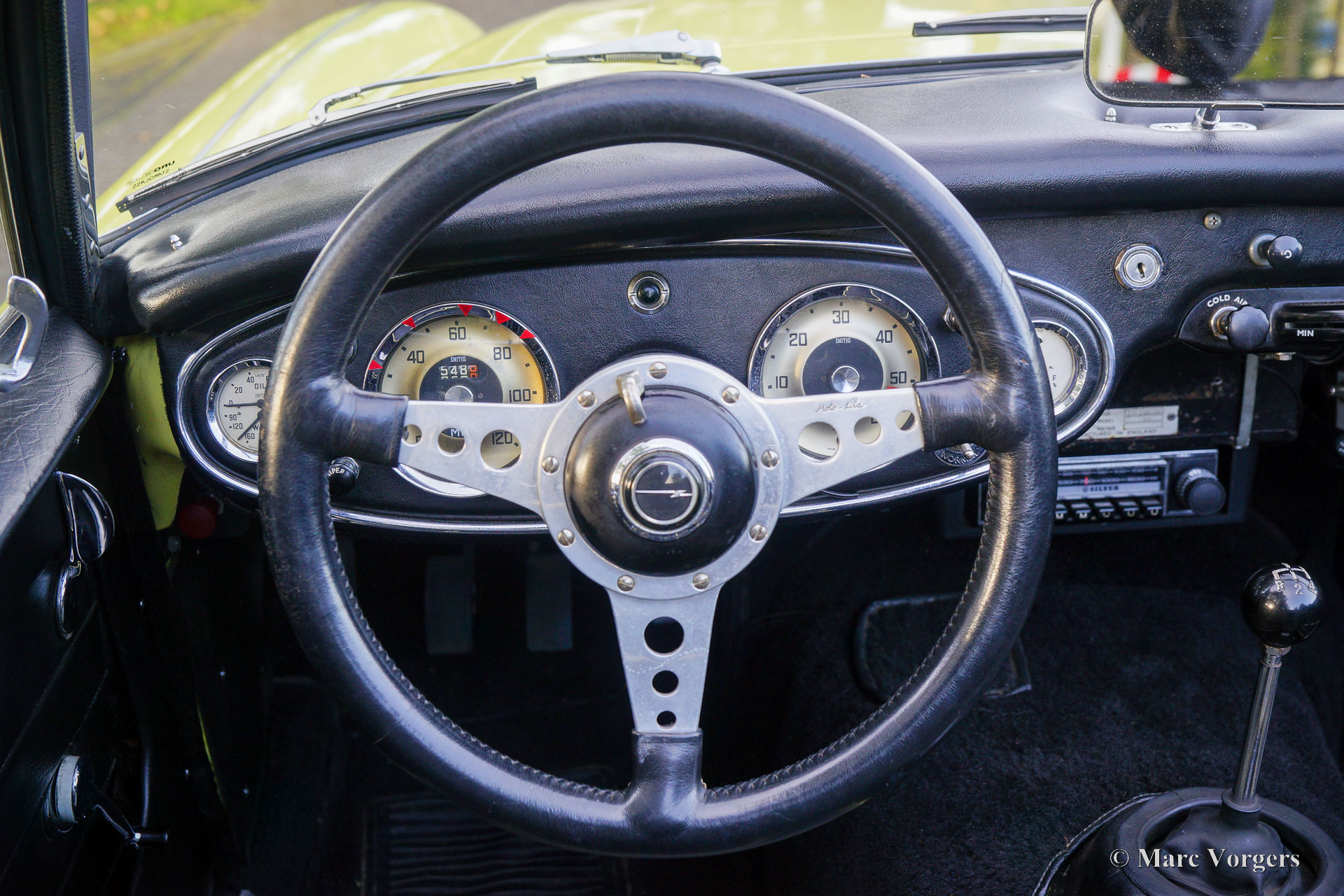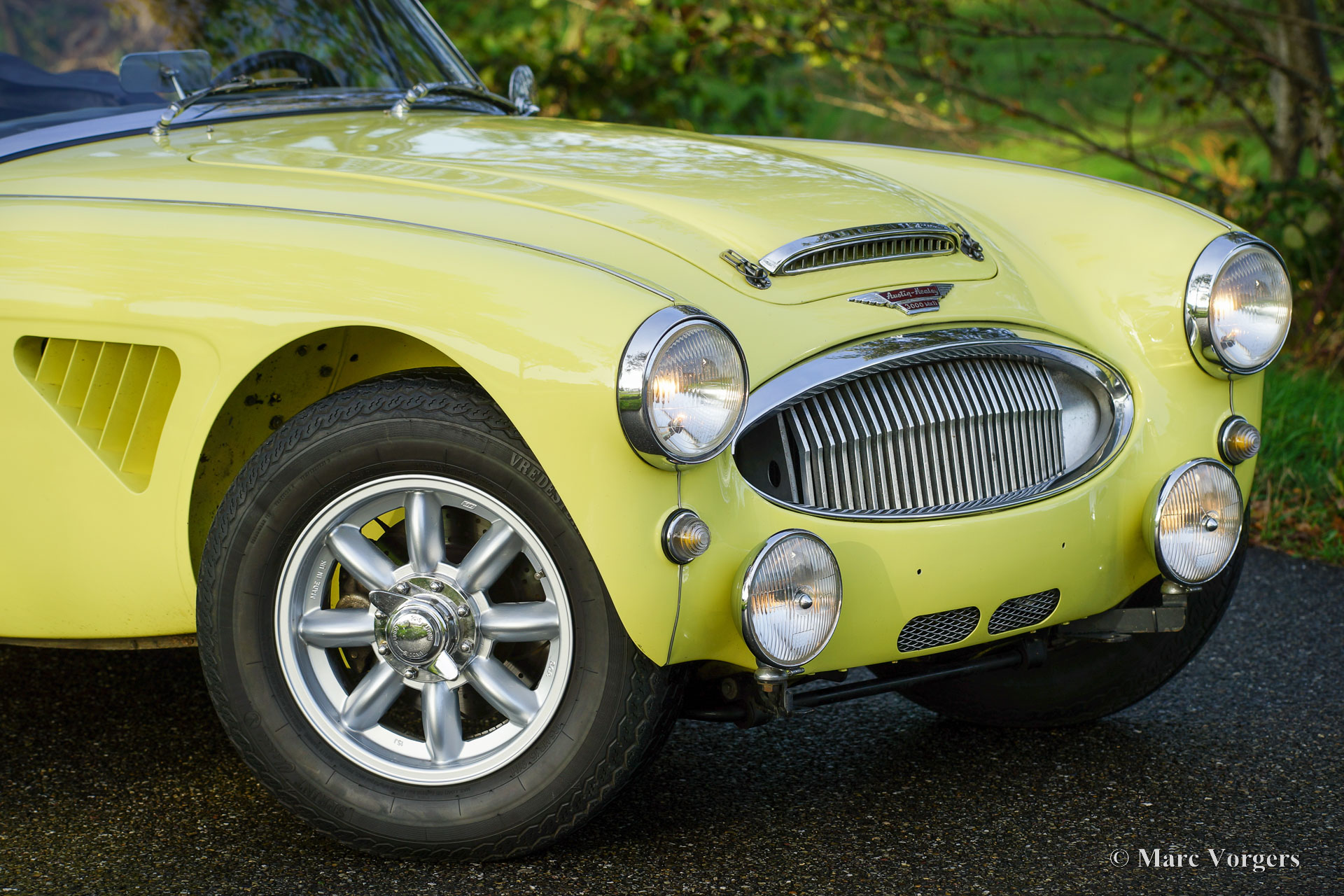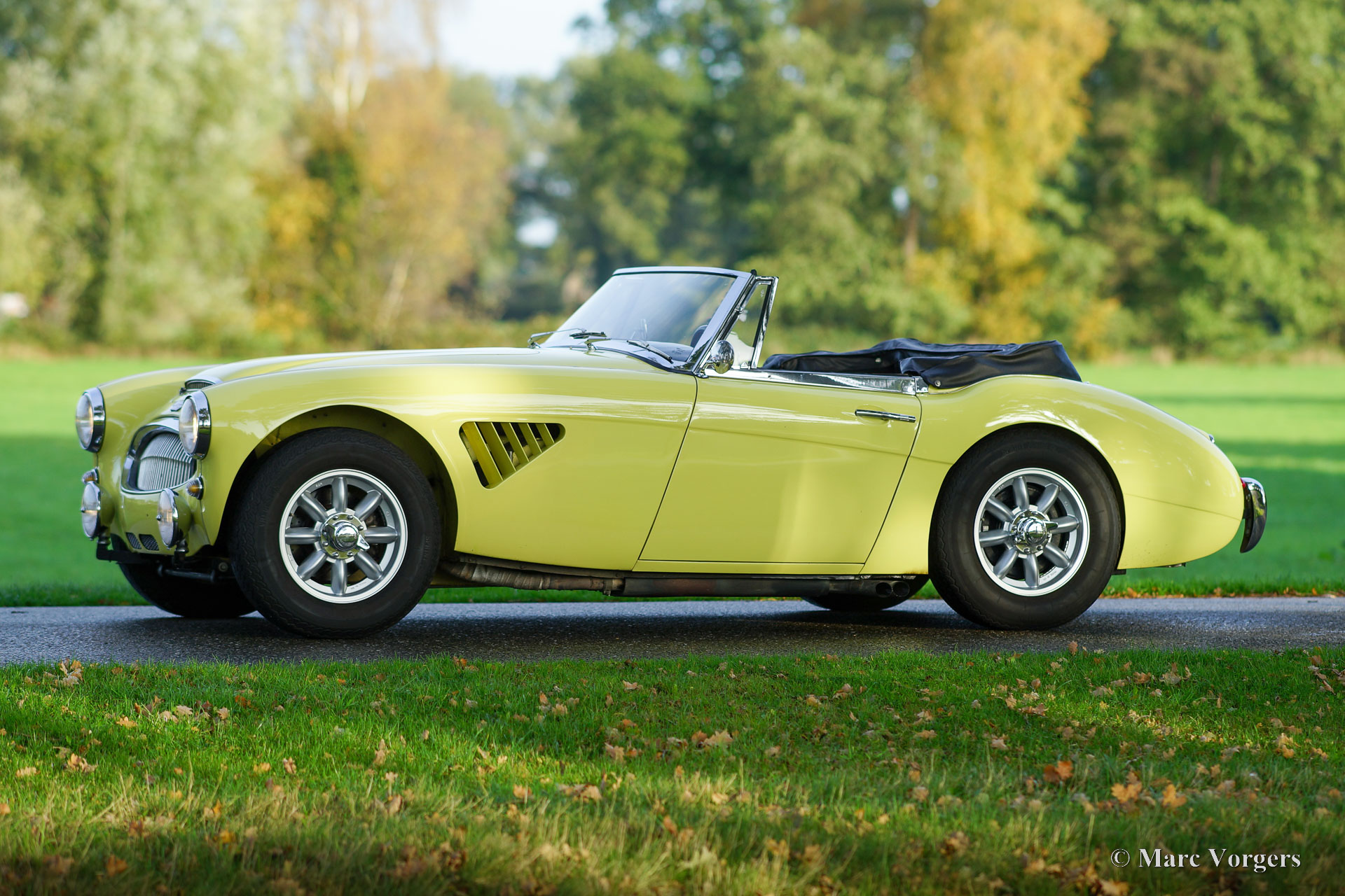Austin Healey 3000 Mk IIa, year 1963. Colour Primrose (Sunburst) yellow combined with a black interior trimmed with pale yellow piping and black carpet. This wonderful ‘Big Healey’ was sold new in the USA, in April 1999 the car was imported to the Netherlands. In 1999 – 2001 the car was extensively restored, overhauled and prepared for fast road use. A large part of the work was carried out by Altena Classic Service. This fine Healey is in a very good condition, the car looks fantastic and the car drives perfectly! The (service) history of the last 25 years is known and documented. Over the last six years the car was punctually serviced by Altena Classic Service. This Austin Healey features Minilite alloy wheels, overdrive, 185 / 15 Vredestein Sprint Classic tyres, 7-inch Lucas wide beam cornering / fog lights, Lucas reversing lamp, quick-locks on the bonnet and boot-lid, vented disc-brakes at the front, cooling vents in the front wings and a side exhaust. The car comes complete with its original bumpers, exhaust and original steering wheel! This powerful and very sporty Healey is ready for any new road-trip / adventure in the hands of a new owner!