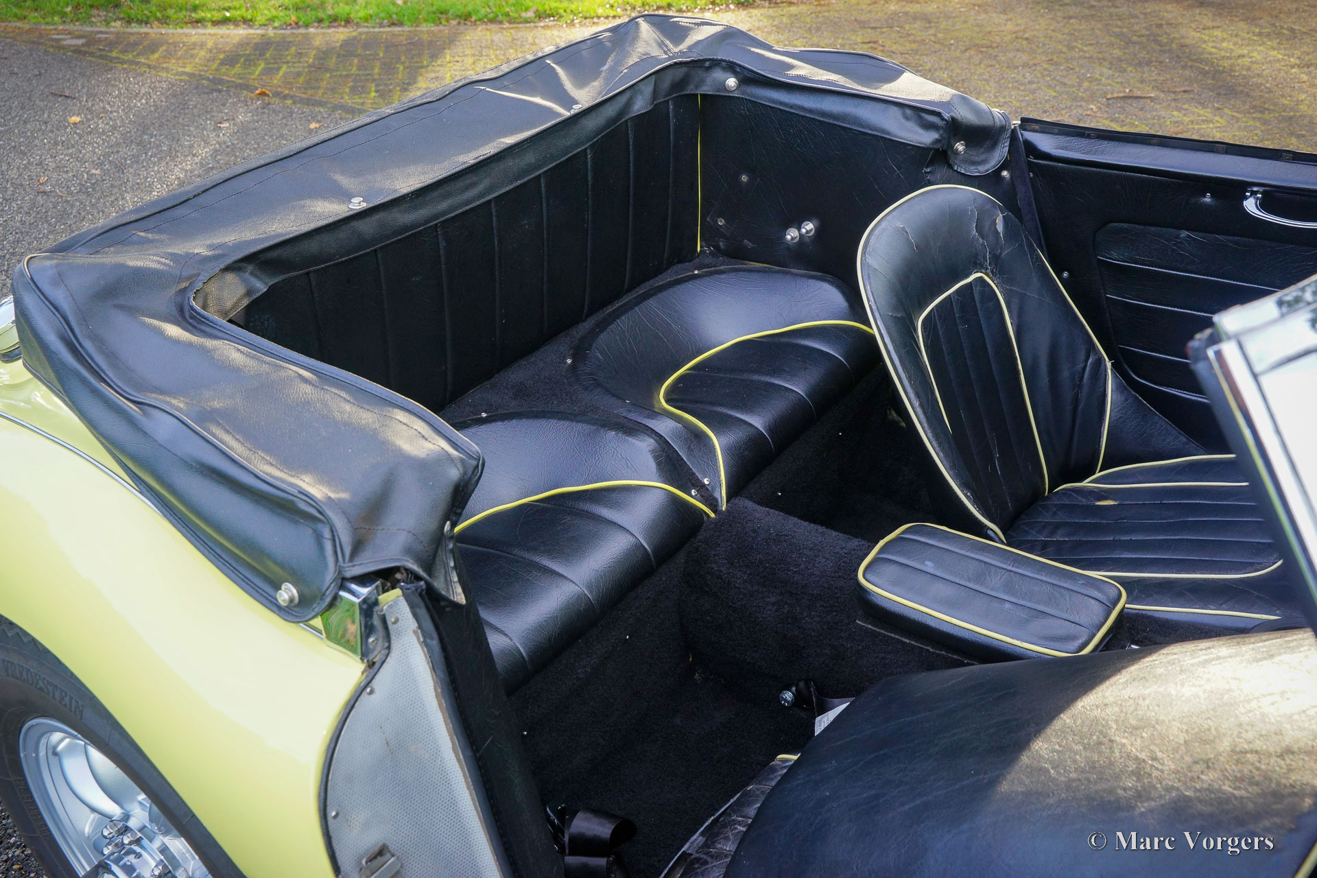 The former Healey models were more Spartan and featured fully detachable soft tops with separate side screens which could be stowed away in the booth.