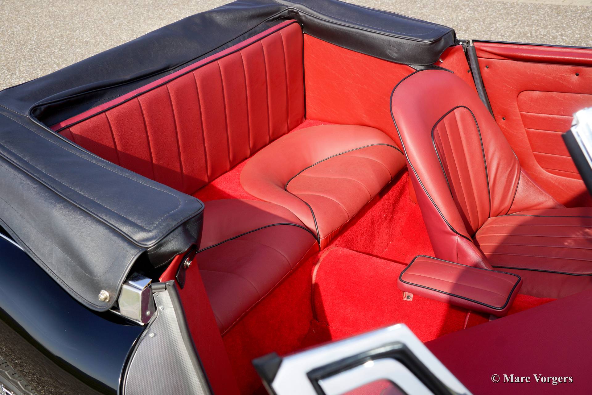 The former Healey models were more Spartan and featured fully detachable soft tops with separate side screens which could be stowed away in the booth.