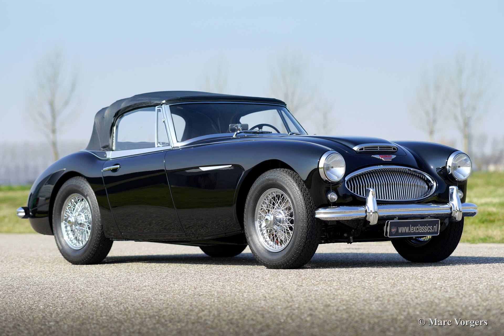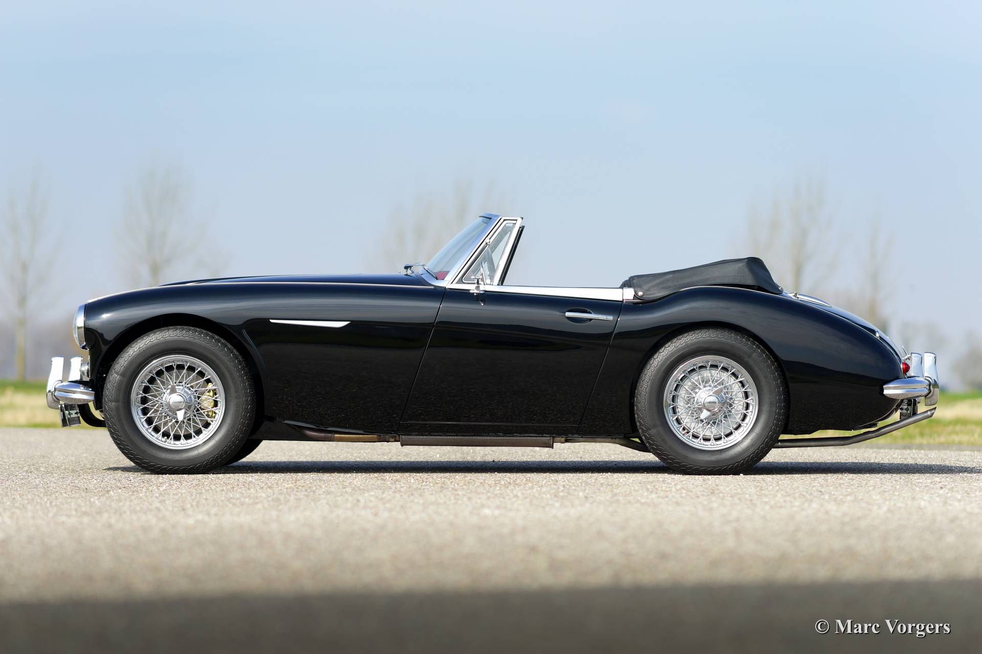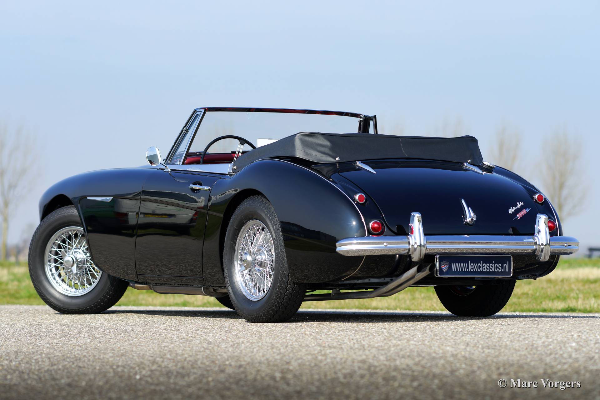 Austin Healey 3000 Mk IIa, year 1963. Chassis number HBJ7L19XXX, engine number 29F/RU/HXXX. Colour black with a red leather interior trimmed with black piping. Black vinyl soft top and hood cover. This fantastic Austin Healey is in superb (excellent+) condition, concours! The car was extensively restored. The car features chrome wire wheels and overdrive.