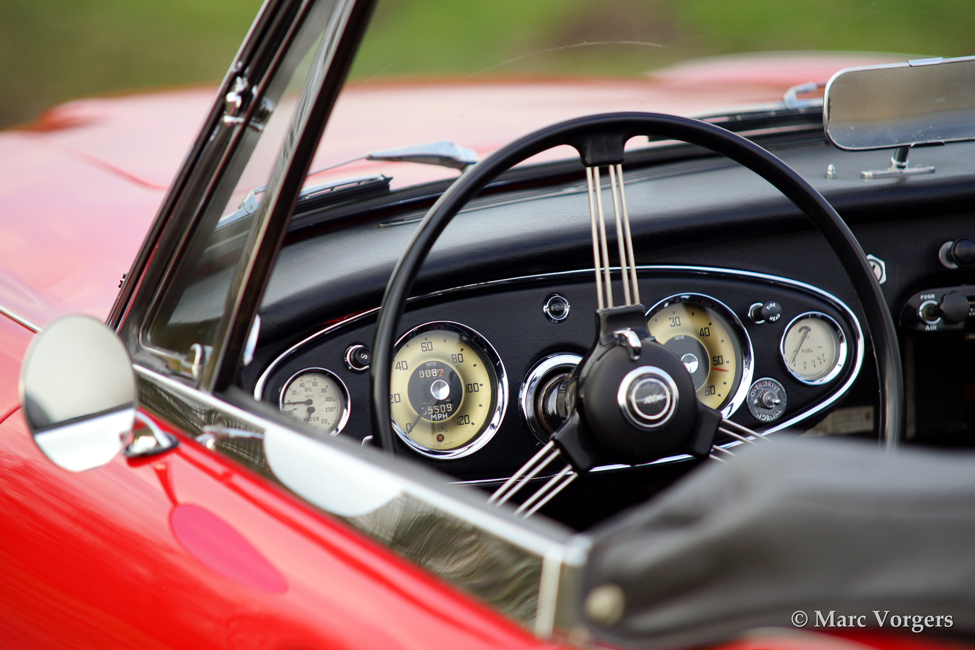 In October 1963 the Austin Healey 3000 MK III was introduced. The MK III was just like the MK IIa only available as 2+2 convertible model. The engine was fitted with a new camshaft and other valve coilsprings. Additionally two larger 2 inch S.U. HD-8 carburettors were fitted. Other changes were applicable to the interior, the dashboard was redesigned entirely and a center console was added. The back rest of the rear seats could be folded forward to be used as a floor to pack luggage on. Another change was the deletion of the "start button", the 3000 MK III fired up only using the starter key.
