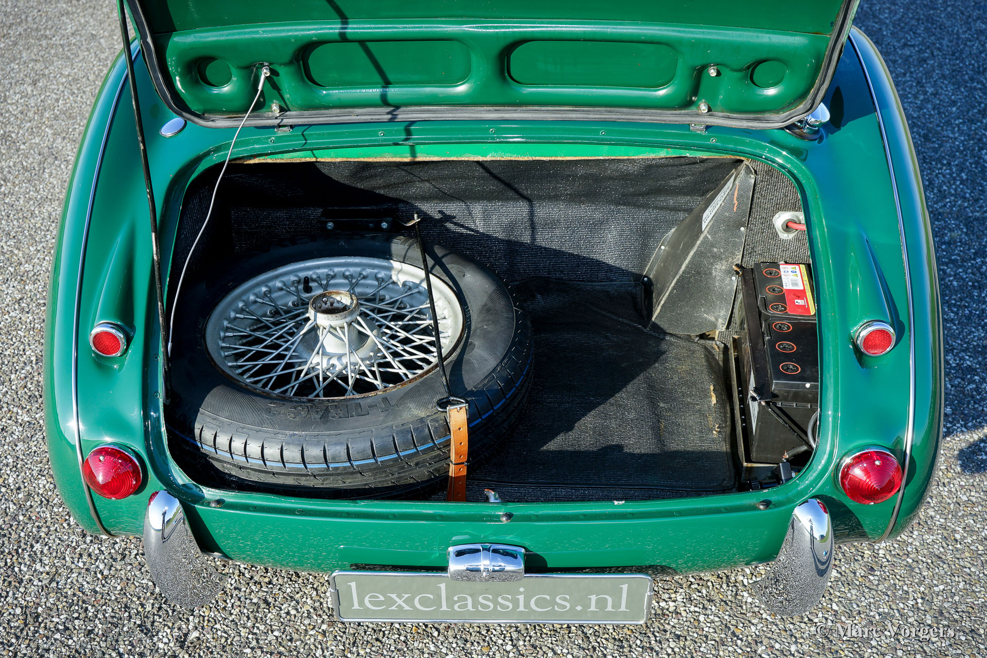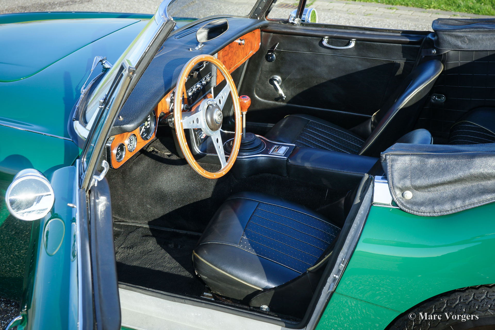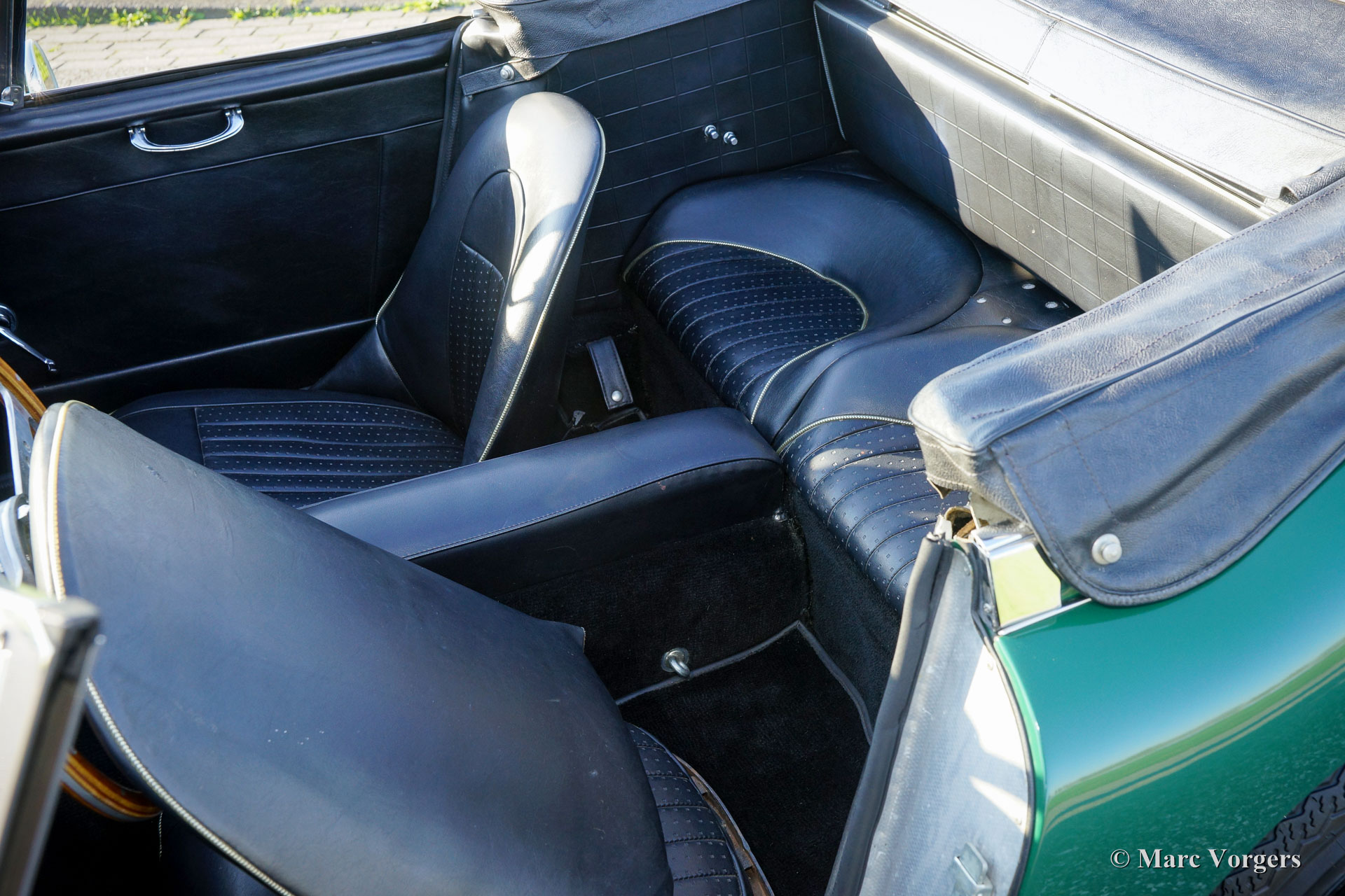 The former Healey models were more Spartan and featured fully detachable soft tops with separate side screens which could be stowed away in the booth.
