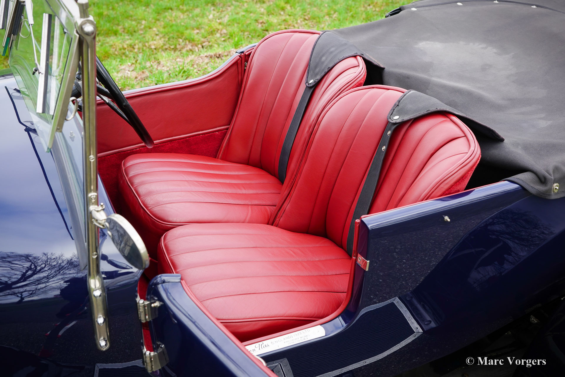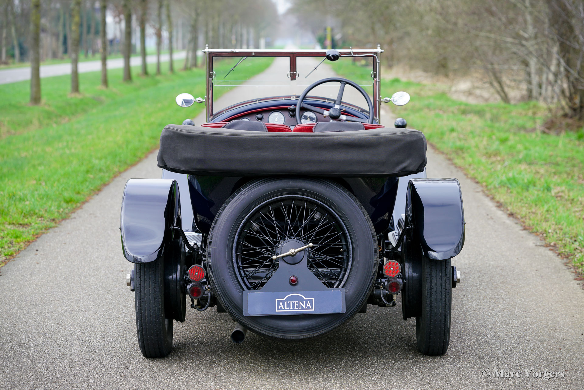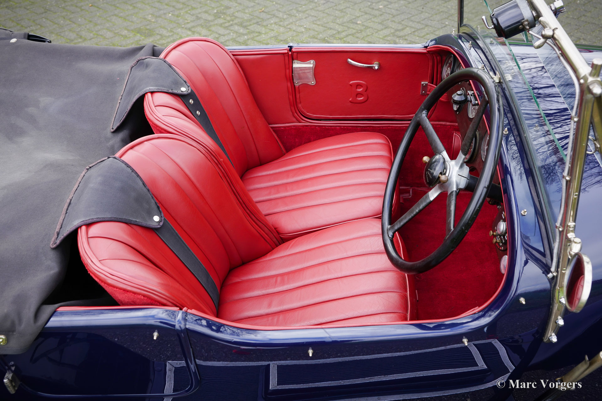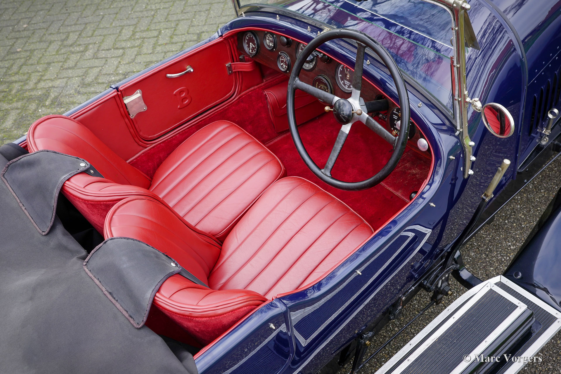 Bentley 3-Litre Speed model, year 1924. Colour dark blue with black wire wheels combined with a red leather interior trimmed with red wool carpet. Black hood, hood cover and tonneau cover. This original Bentley 3-Litre ‘red badge’ short chassis Speed model was sold new in the United Kingdom fitted with a ‘Park Ward’ body. In later years the car was given the current 4-seater open tourer bodywork. The automobile was extensively restored and overhauled by a Bentley specialist with eye for originality. The engine, and all the mechanical parts were completely overhauled. All the important chassis and mechanical parts are factory original, the numbers on the chassis, engine, gearbox, steering gear, and rear axle are correct for this car as it left the factory in 1924! The car shows many wonderful original details like the remarkable Sloper carburettors and the Bentley marked dashboard instruments. The full history is known and documented, and a photo report of the extensive restoration is present. This Bentley 3-Litre Speed model is mentioned in the book ‘Bentley The Vintage Years’, a standard work on Bentley by Clare Hay. This glorious Bentley 3-Litre is in a wonderful and very good condition. The automobile breathes the quality W.O. Bentley had envisaged when he created his ‘3-Litre’; ‘A fast car, a good car, the best in its class’. The 3-Litre featured one of the first production car engines with 4 valves per cylinder, dry-sump lubrication, and an overhead camshaft. The first 3-Litre chassis was shown at the 1919 London (Olympia) Motor Show, with the first customer delivery in 1921. Between the show and 1921 much work was needed to improve refinement. As W.O. later wrote, “I hate noise for the sake of noise. 70mph in silence is far more creditable than a noisy 80mph.” The 3-Litre was very well received by the motoring press. Sammy Davis of the Autocar wrote: “For the man who wants a true sporting type of light-bodied car for use on a Continental tour – where speed limits are not meant to be observed – the 3 Litre Bentley is undoubtedly the car par excellence.” From the beginning the rugged and powerful 3-Litre was entered in competitions and races. The 3-Litre won countless races, amongst others the legendary 24 Hours of Le mans in 1924 and 1927. A private owner (John Duff) also set 21 world records in 24 hours in 1925 at the wheel of a Bentley 3-Litre. A total of 1622 Bentley 3-Litre models were produced between 1921 and 1929. This Bentley 3-Litre model is a splendid product of this adventurous early Bentley Motors period. A wonderful collector’s item and a dream machine for vintage Bentley drivers and Bentley enthusiasts.