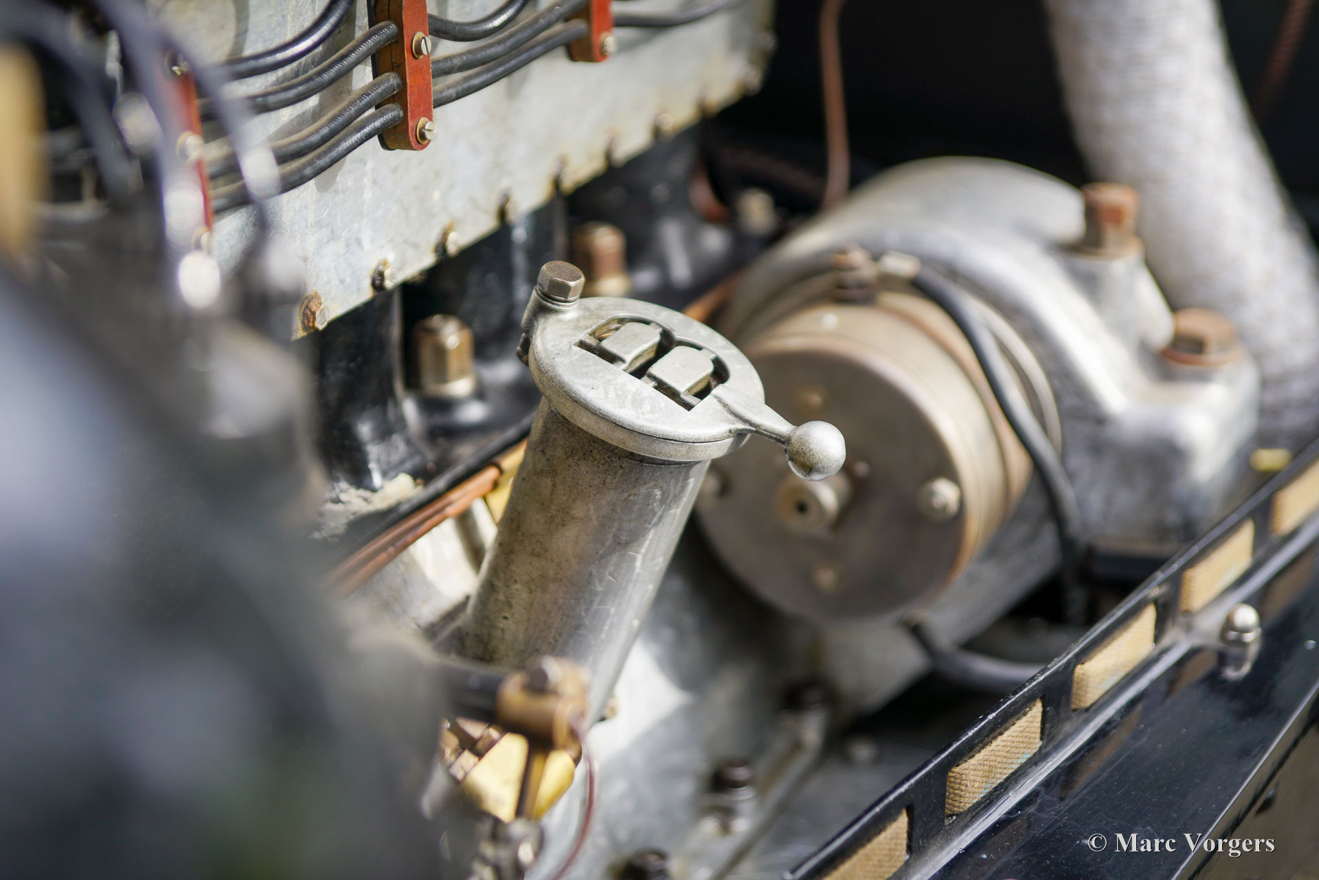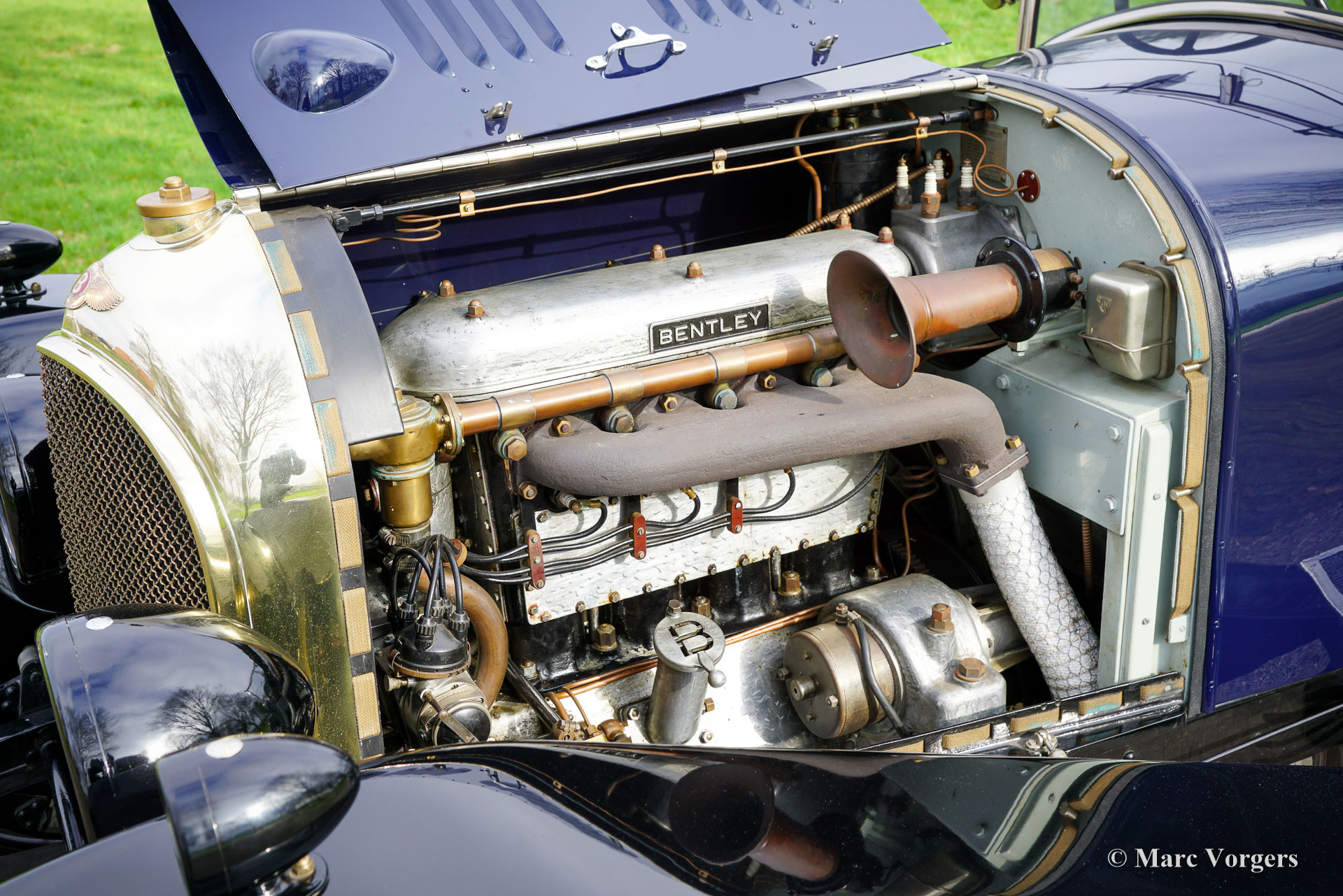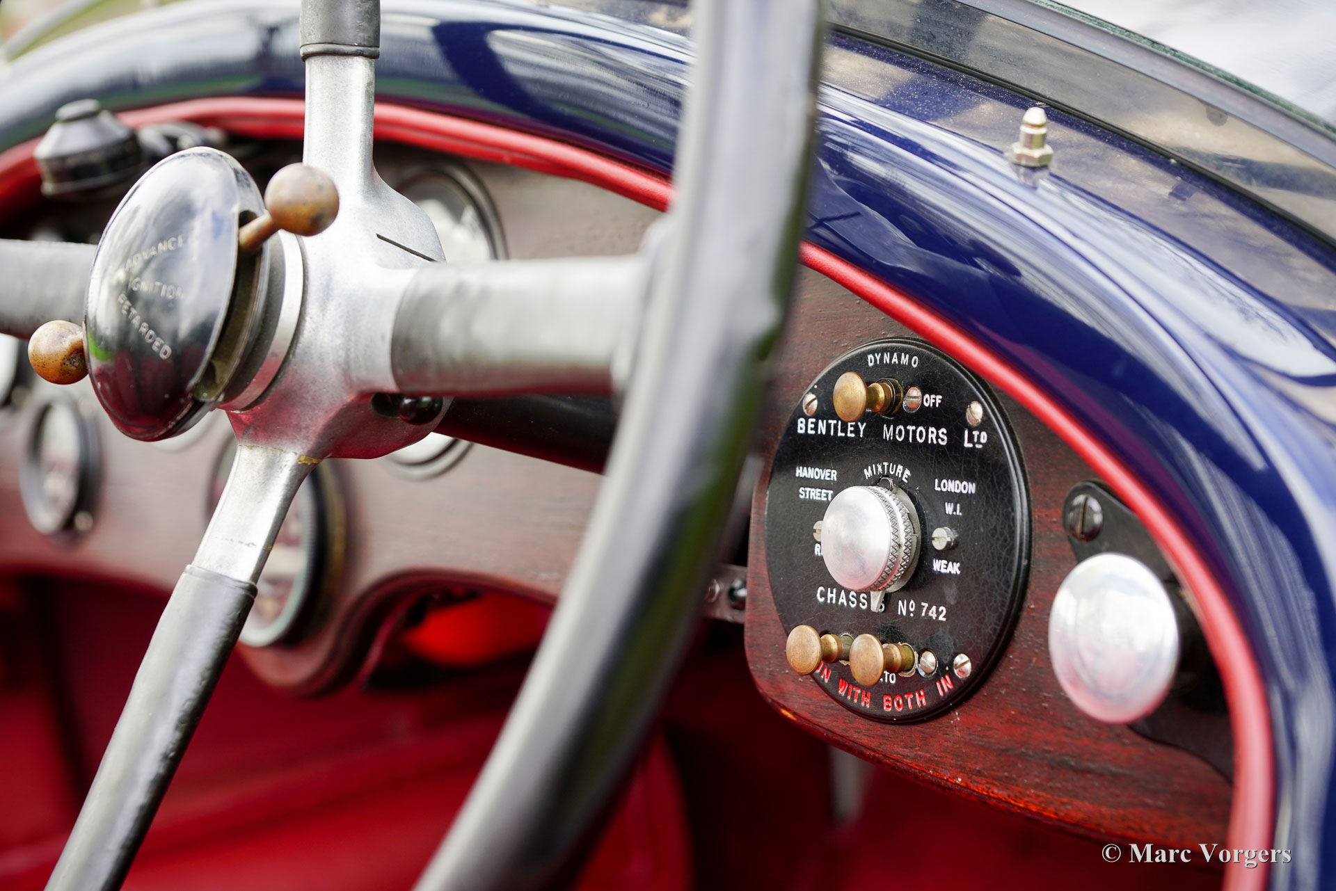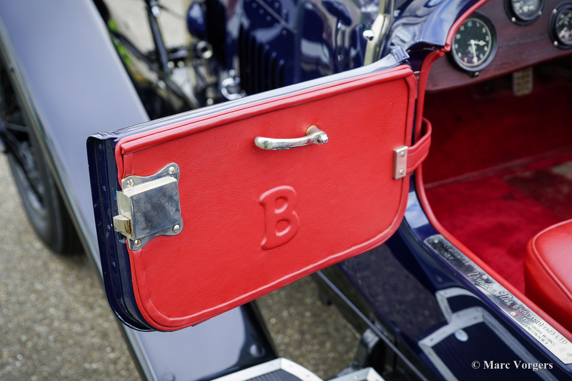 The Bentley 3 Litre was W.O. Bentley’s first design. The car was presented in 1919 but the first cars were sold in 1921. The four cylinder cars of rugged construction where in a class of their own for they combined the size and comfort of the big tourers and saloons with the road holding, and speed of the smaller sports- and racing cars. The Bentley was a true owner-driver car for the sporting motorist and connoisseur. The Bentley car could be had in three different types which were designated with three different radiator badges*. Red badge: short chassis speed model, Blue badge: the early short and then long chassis type for bespoke bodywork, Green badge: very rare and used for about eighteen 100 mph. These Green badge car won at Le Mans in 1924 and 1927 (Old Number Seven.) The 3-Litre was built from 1919 until 1929.