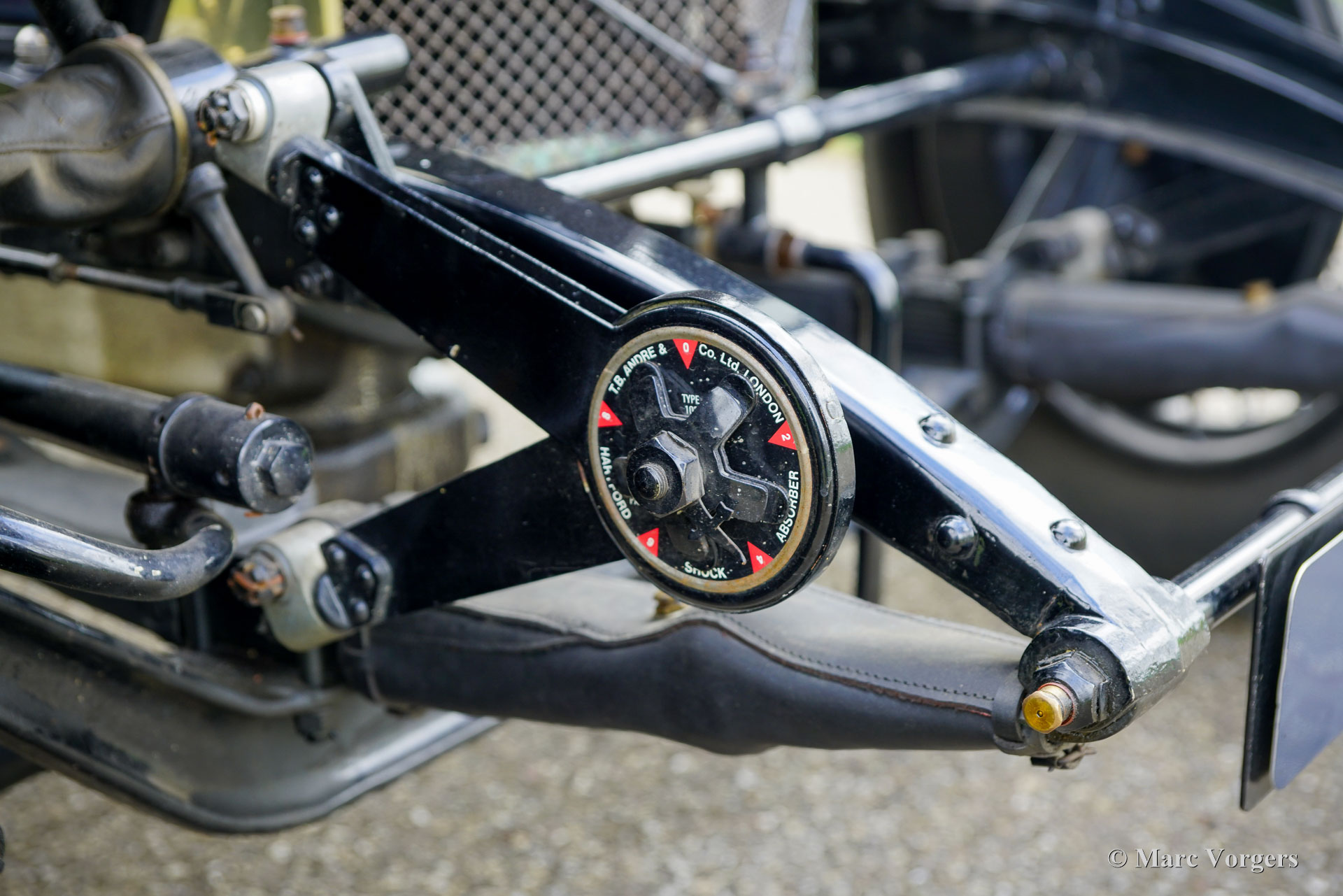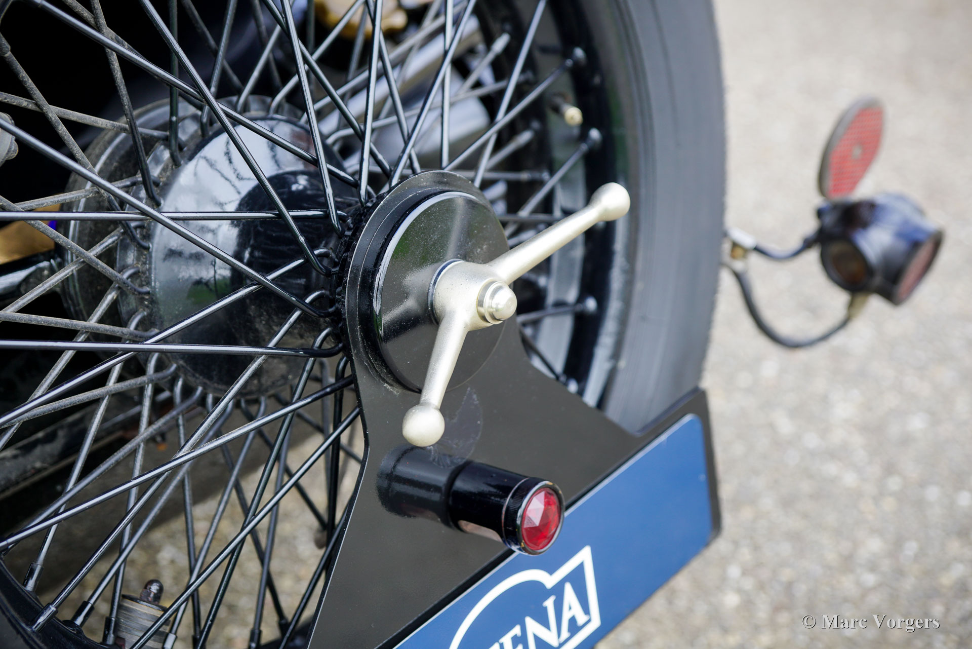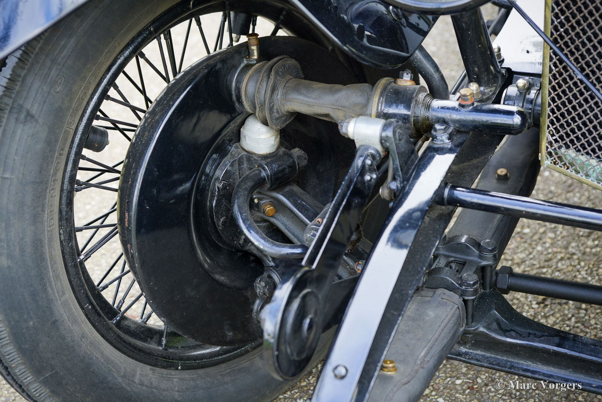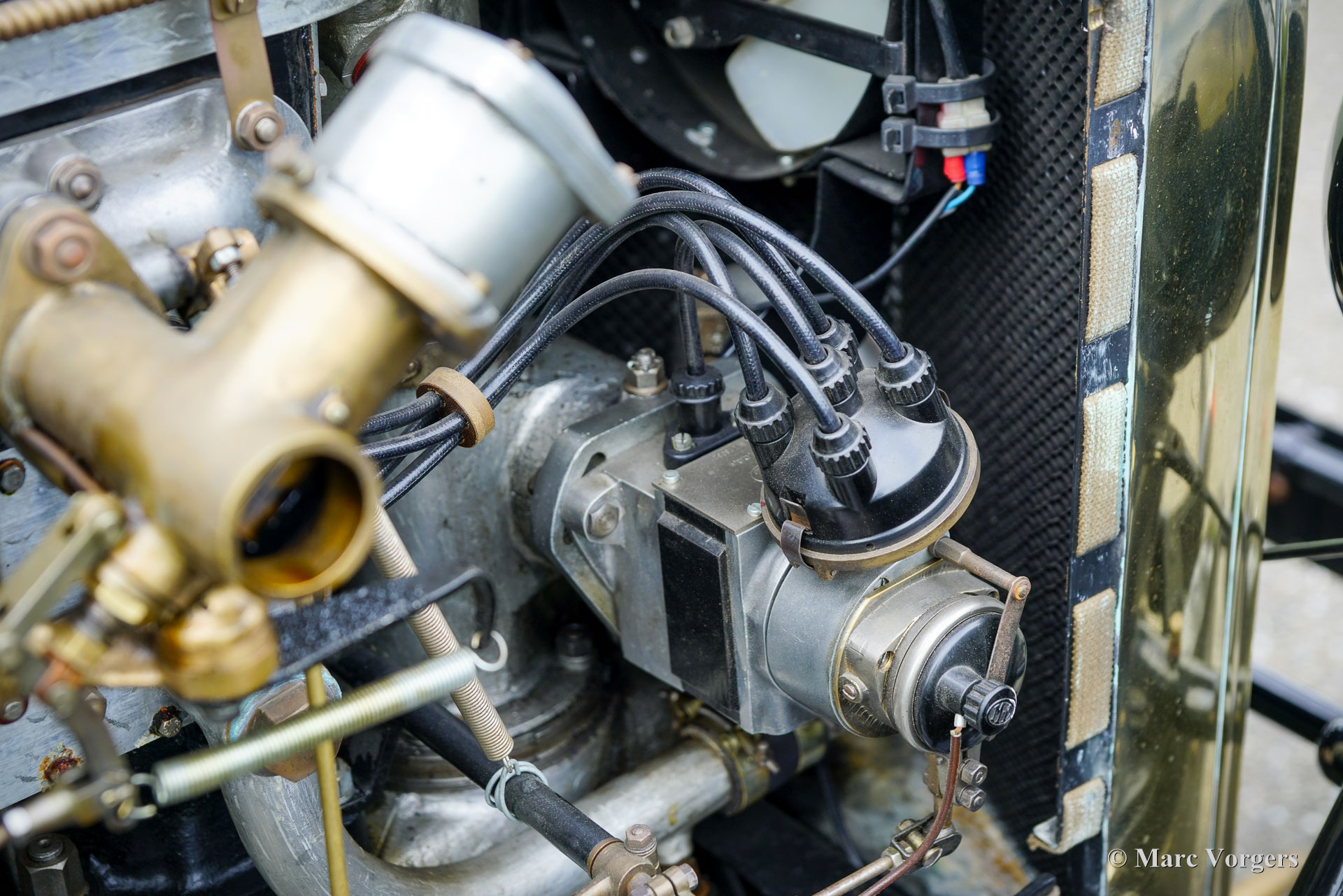 The Bentley 3 Litre was W.O. Bentley’s first design. The car was presented in 1919 but the first cars were sold in 1921. The four cylinder cars of rugged construction where in a class of their own for they combined the size and comfort of the big tourers and saloons with the road holding, and speed of the smaller sports- and racing cars. The Bentley was a true owner-driver car for the sporting motorist and connoisseur. The Bentley car could be had in three different types which were designated with three different radiator badges*. Red badge: short chassis speed model, Blue badge: the early short and then long chassis type for bespoke bodywork, Green badge: very rare and used for about eighteen 100 mph. These Green badge car won at Le Mans in 1924 and 1927 (Old Number Seven.) The 3-Litre was built from 1919 until 1929.