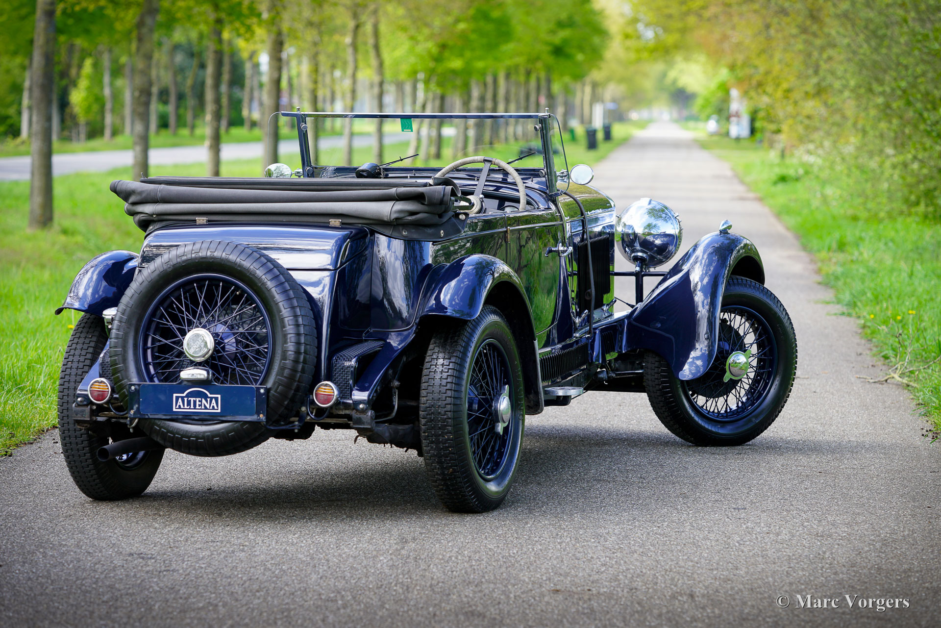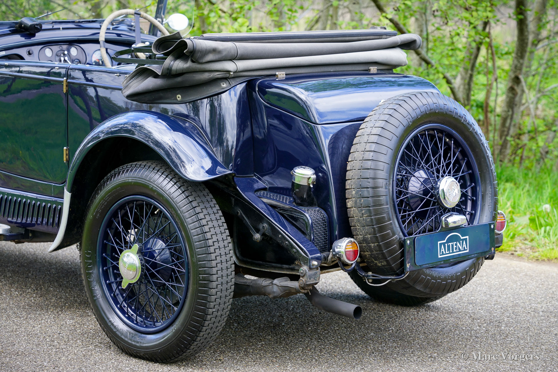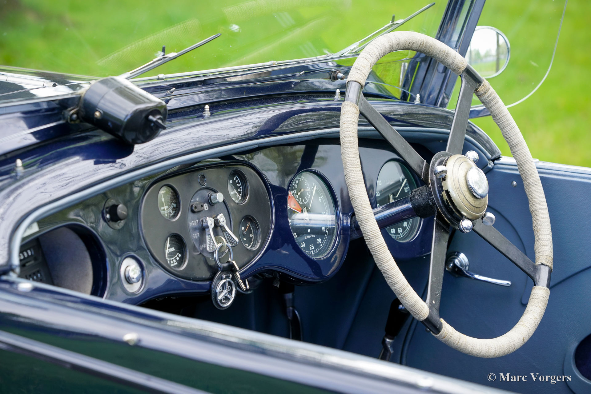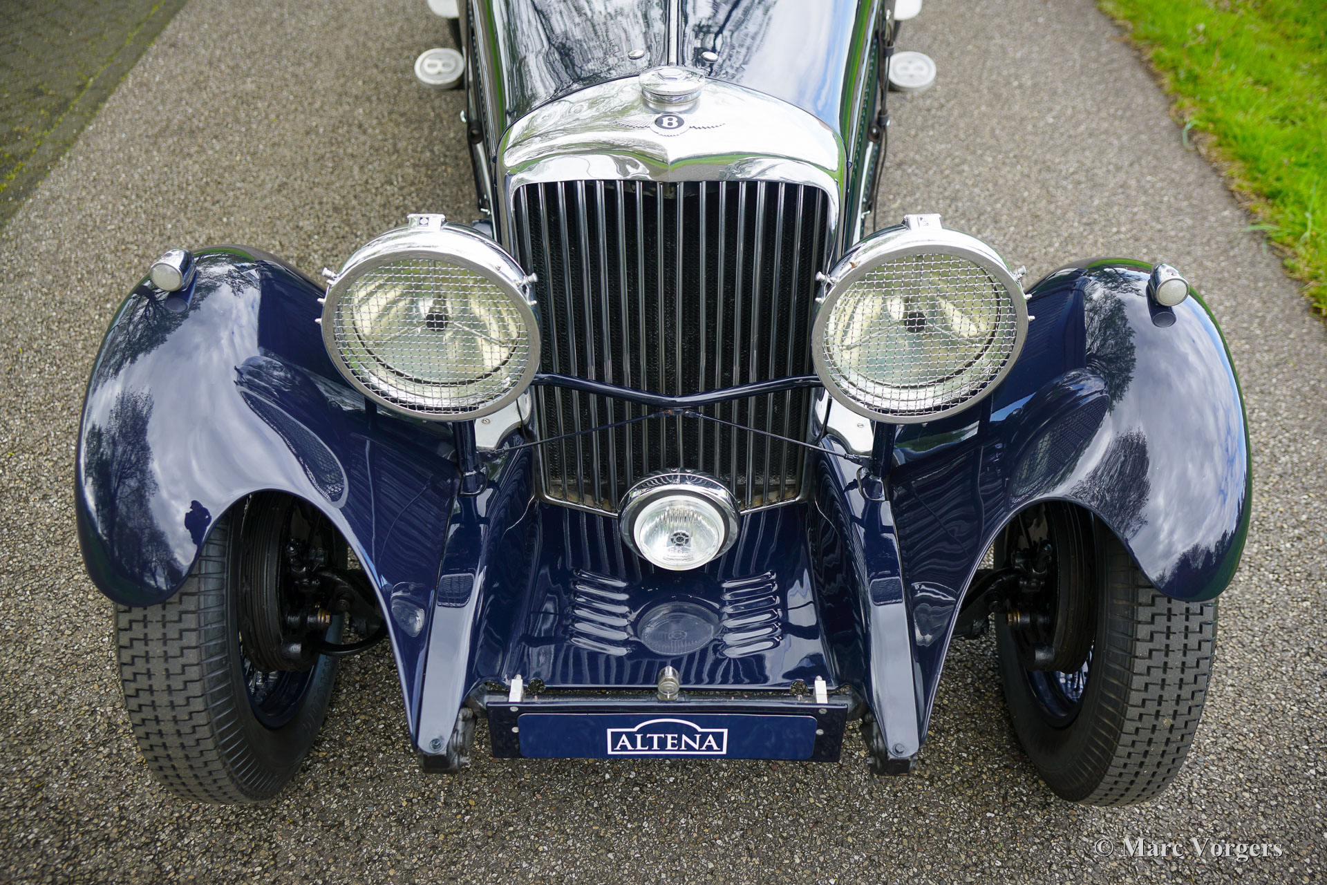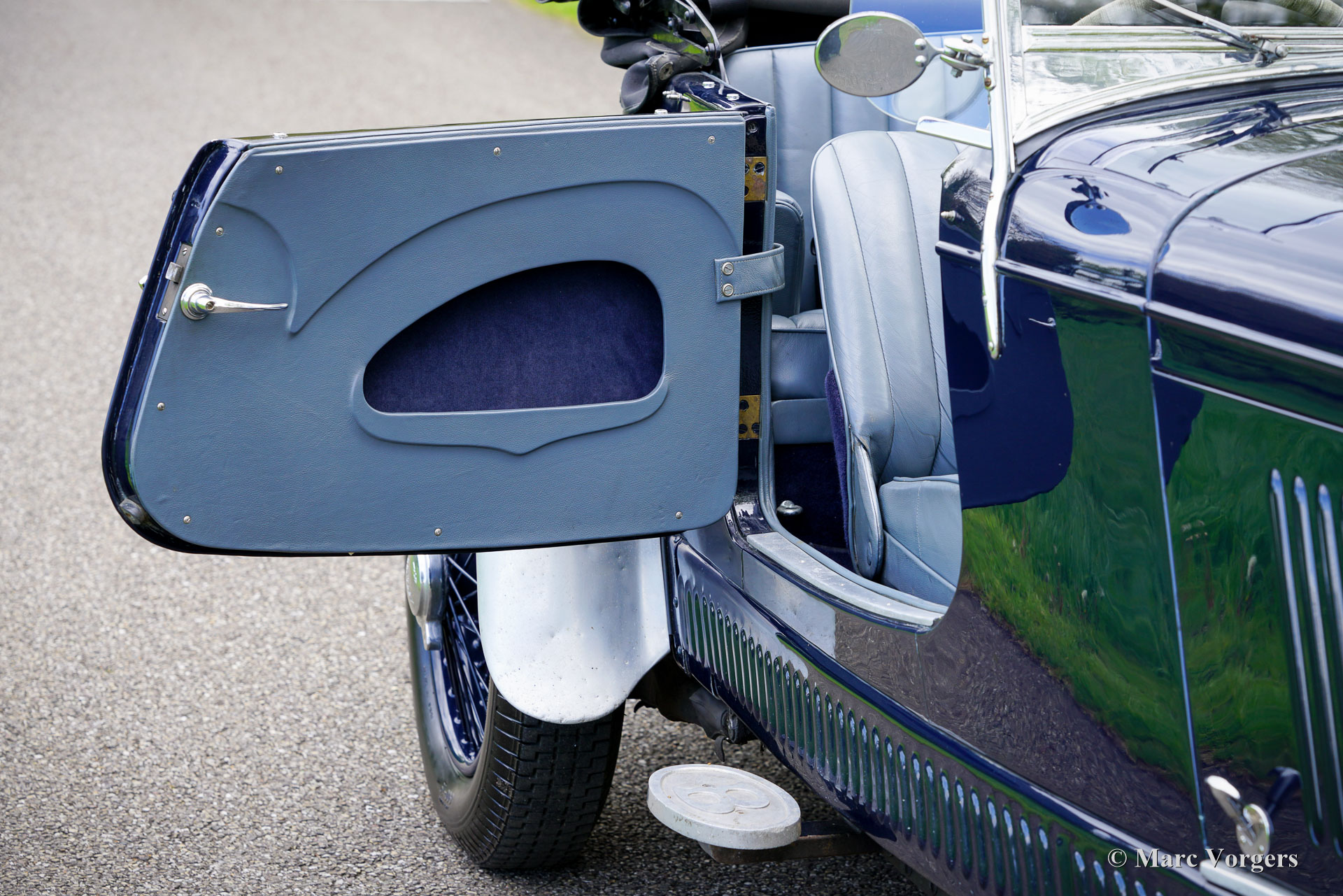 Bentley 3 ½ litre Sports Special, year 1935. Colour dark blue combined with a pale blue leather interior and dark blue wool carpet. Black soft top and black side screens. This glorious Bentley was built in the ‘Derby’ factory and sold new in the U.K. fitted with a “Park Ward” saloon bodywork. In the year 2000 the automobile underwent an extensive mechanical overhaul by a British Bentley Specialist. In the process an aluminium cylinder head was fitted, and several other technical modifications were carried out. The works are documented in the extensive history and service folder. In the same period the existing bodywork was replaced for a light open tourer bodywork by bodywork specialist Henderson. A very handsome and clever two-seater open body was designed and build with striking lines, easy to erect weather equipment, and a separate boot. This Bentley 3 ½ litre Sports Special looks a picture! In the year 2011 the car was fully inspected and brought up to date by specialist Fiennes in the U.K. The current owner has enjoyed and cherished the automobile ever since and has participated in several historic ‘rally’ touring events like the Rally des Alpes, the Flying Scotsman (multiple editions), and finally in the 2013 Cape Horn rally where it finished 3rd overall!