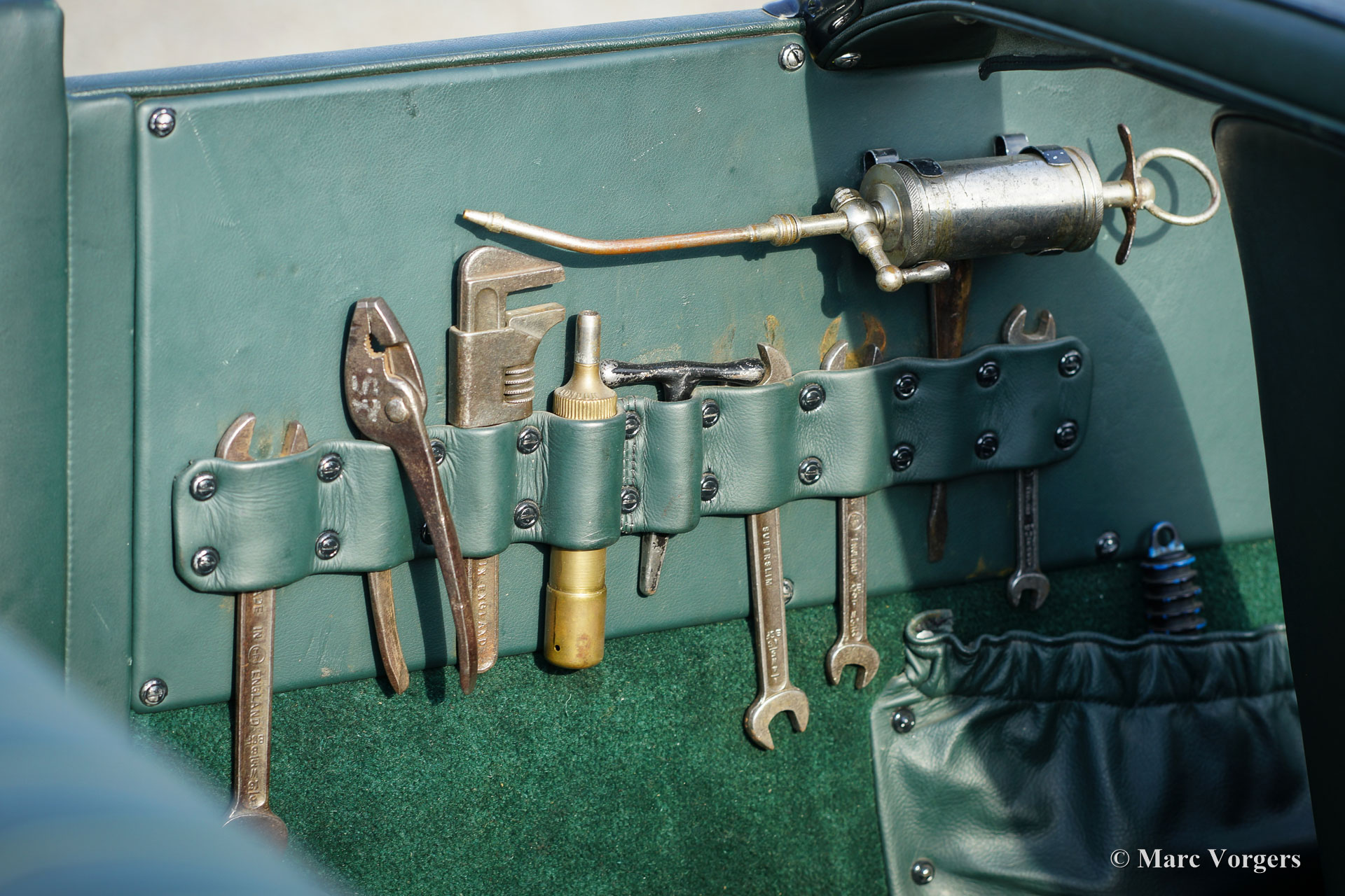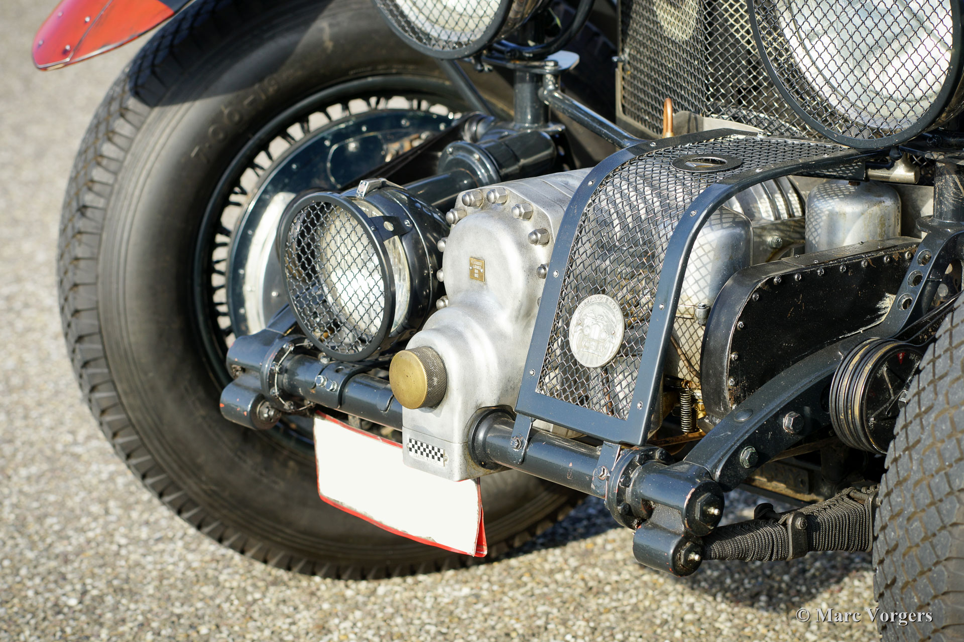 The Bentley 3 Litre was W.O. Bentley’s first design. The car was presented in 1919 but the first cars were sold in 1921. The four cylinder cars of rugged construction where in a class of their own for they combined the size and comfort of the big tourers and saloons with the road holding, and speed of the smaller sports- and racing cars. The Bentley was a true owner-driver car for the sporting motorist and connoisseur. The Bentley car could be had in three different types which were designated with three different radiator badges*. Red badge: short chassis speed model, Blue badge: the early short and then long chassis type for bespoke bodywork, Green badge: very rare and used for about eighteen 100 mph. These Green badge car won at Le Mans in 1924 and 1927 (Old Number Seven.) The 3-Litre was built from 1919 until 1929.