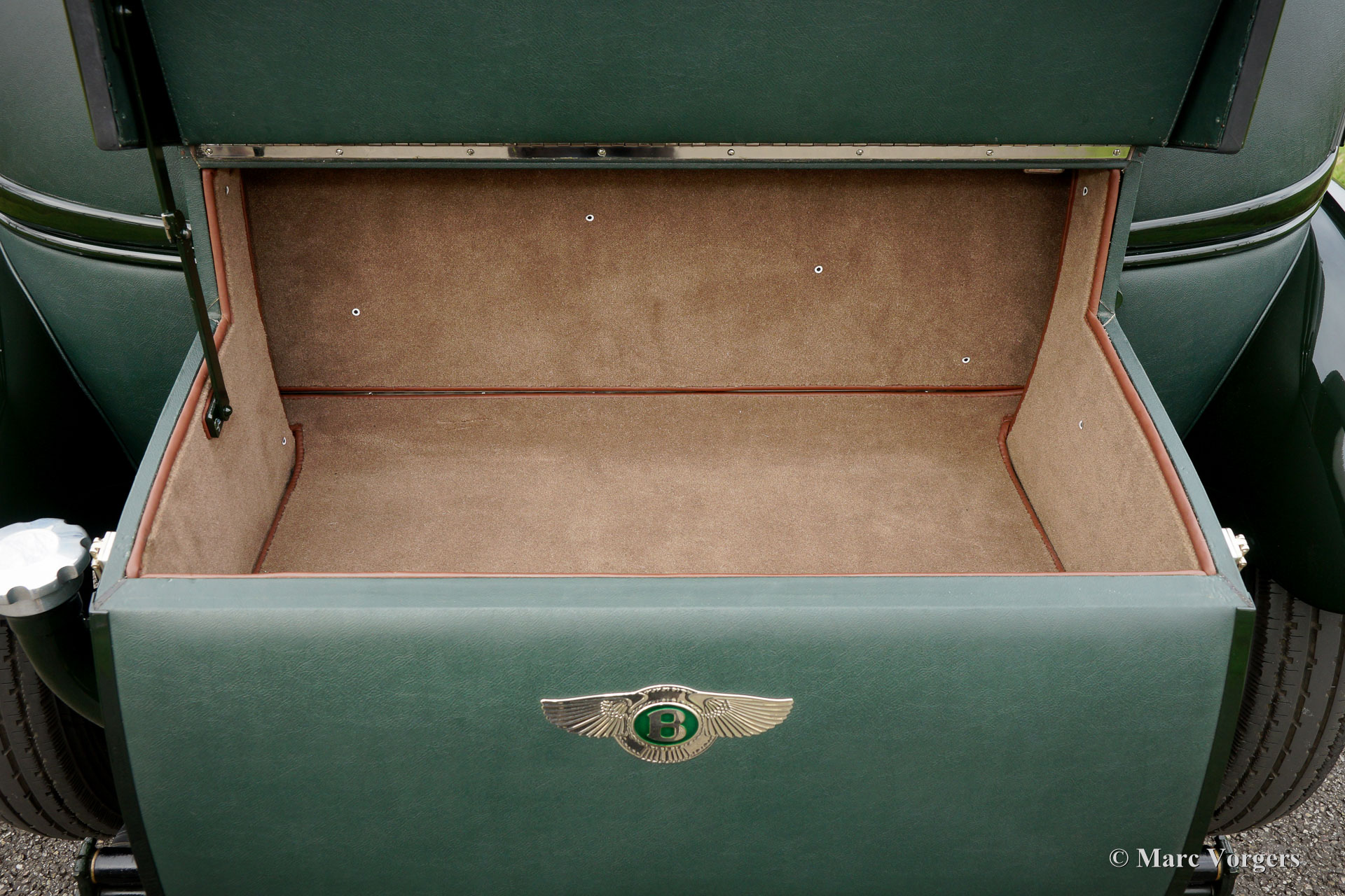 The Bentley 3 Litre was W.O. Bentley’s first design. The car was presented in 1919 but the first cars were sold in 1921. The four cylinder cars of rugged construction where in a class of their own for they combined the size and comfort of the big tourers and saloons with the road holding, and speed of the smaller sports- and racing cars. The Bentley was a true owner-driver car for the sporting motorist and connoisseur. The Bentley car could be had in three different types which were designated with three different radiator badges*. Red badge: short chassis speed model, Blue badge: the early short and then long chassis type for bespoke bodywork, Green badge: very rare and used for about eighteen 100 mph. These Green badge car won at Le Mans in 1924 and 1927 (Old Number Seven.) The 3-Litre was built from 1919 until 1929.