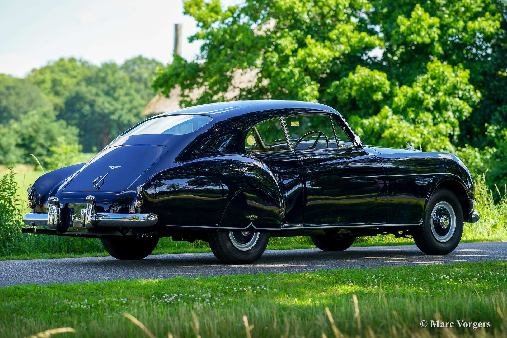 Bentley R Type Continental recreation, 1953. Colour dark blue combined with a tan (beige) leather interior trimmed with beige wool carpet. This majestic Bentley R Type Continental was completed by Racing Green Engineering (Wales, UK) in 2018. This Bentley R Type Continental recreation was based on a 1953 Bentley R-type chassis and mechanical components. The chassis, engine, gearbox and all the other original components were fully restored and overhauled to the highest standards and finished to perfection. The aluminium bodywork was handcrafted by the craftsmen of Racing Green Engineering following the example of the original shape of the R Type Continental design by H.J. Mulliner. The original R Type Continental was presented in 1952 and produced until 1955. Only 208 examples were originally built by Bentley. The R Type Continental redefined the post war Bentley and it is one of the most impressive motorcars ever conceived. The Continental was built with a strict target weight of 1750kg: in 1950 no tyre existed which could sustain a heavier weight at 115mph+. The R Type Continental was highly praised by Autocar Magazine: “Whatever memorable motoring experiences one may have had, this was something different…this Bentley is a modern magic carpet which annihilates great distances and delivers the occupants well-nigh as fresh as when they started.”