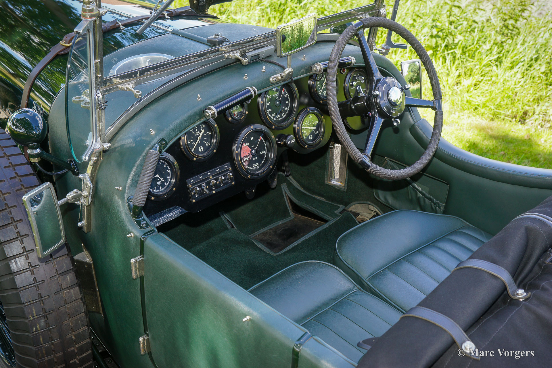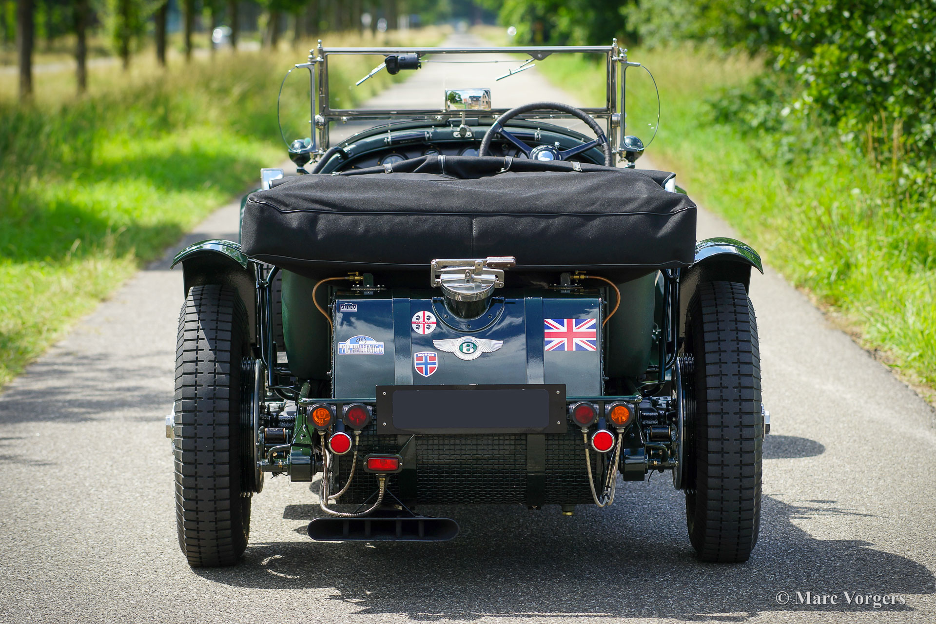 The Bentley 3 Litre was W.O. Bentley’s first design. The car was presented in 1919 but the first cars were sold in 1921. The four cylinder cars of rugged construction where in a class of their own for they combined the size and comfort of the big tourers and saloons with the road holding, and speed of the smaller sports- and racing cars. The Bentley was a true owner-driver car for the sporting motorist and connoisseur. The Bentley car could be had in three different types which were designated with three different radiator badges*. Red badge: short chassis speed model, Blue badge: the early short and then long chassis type for bespoke bodywork, Green badge: very rare and used for about eighteen 100 mph. These Green badge car won at Le Mans in 1924 and 1927 (Old Number Seven.) The 3-Litre was built from 1919 until 1929.