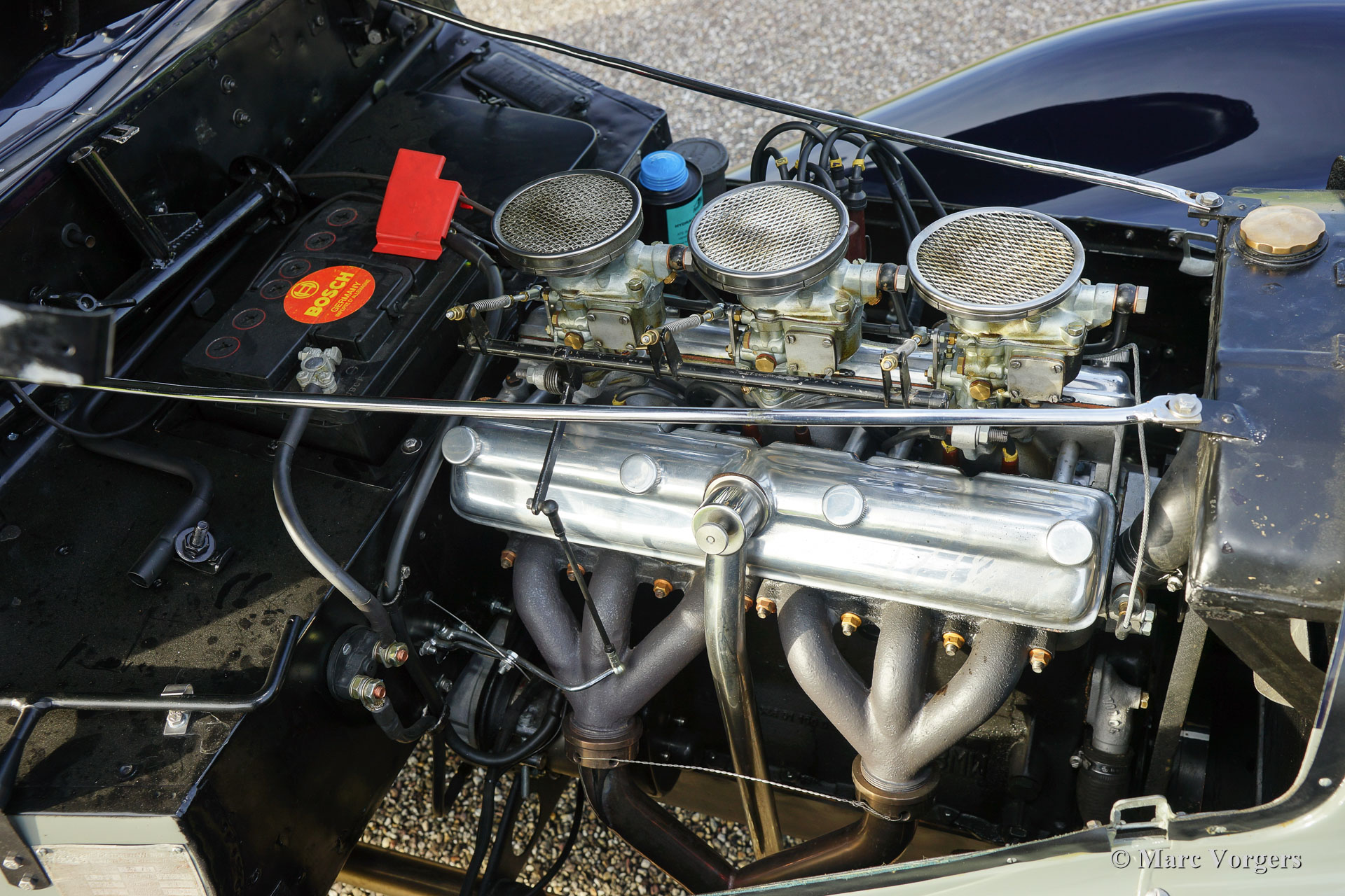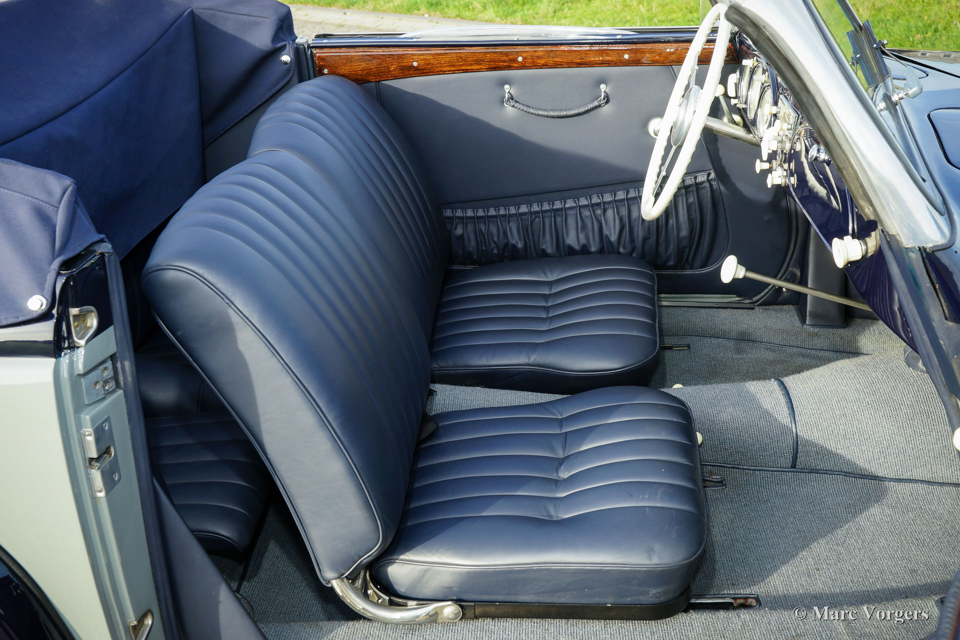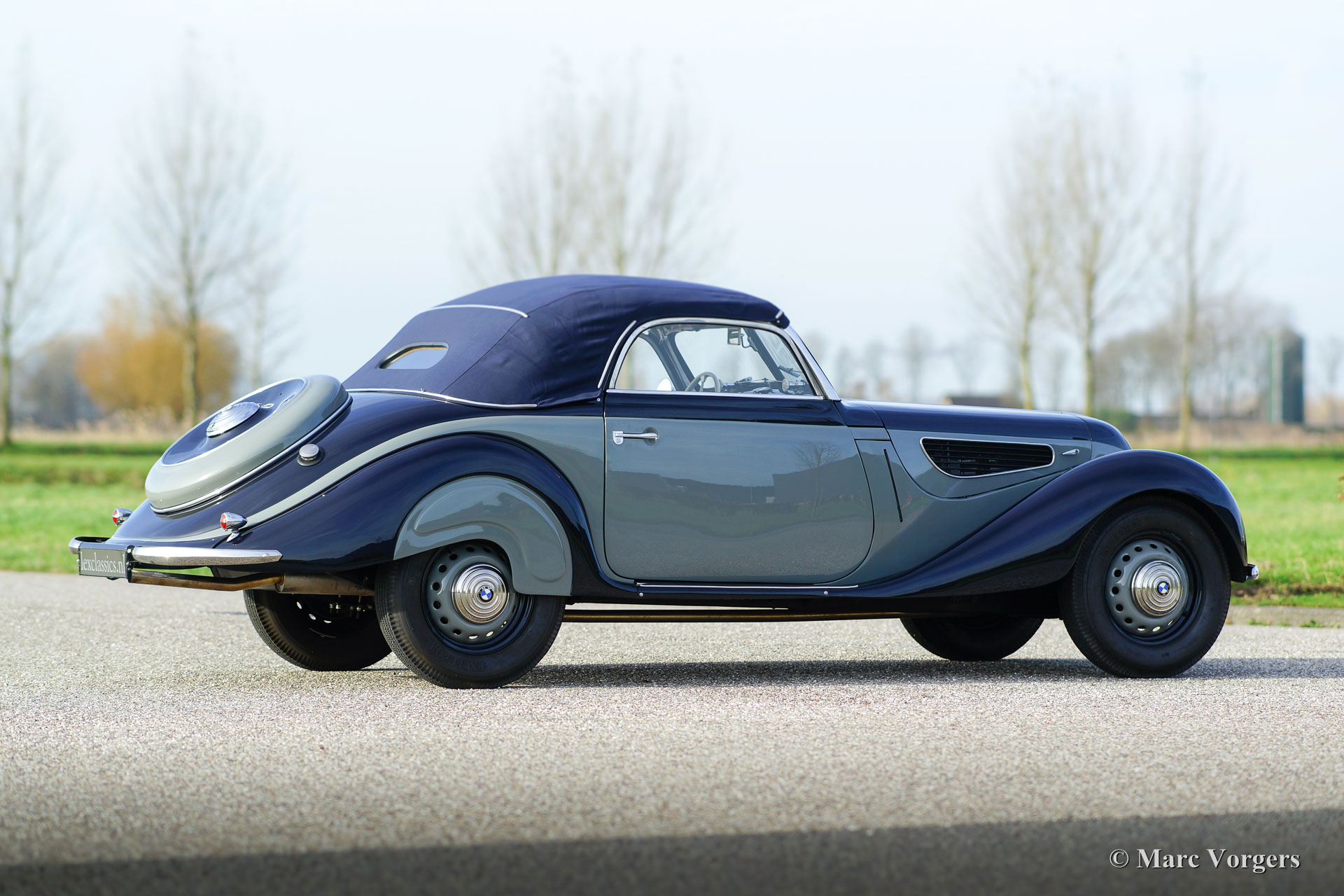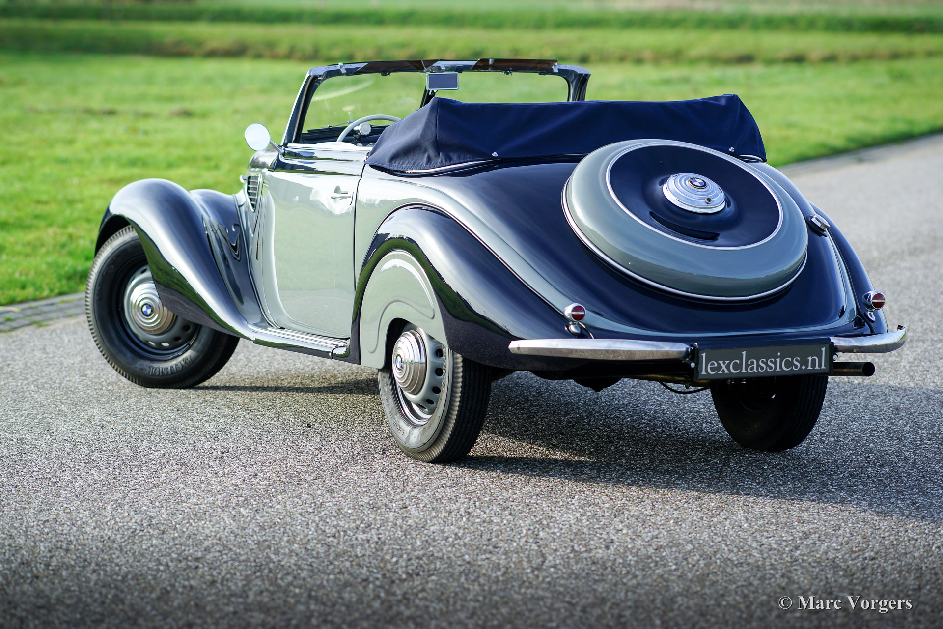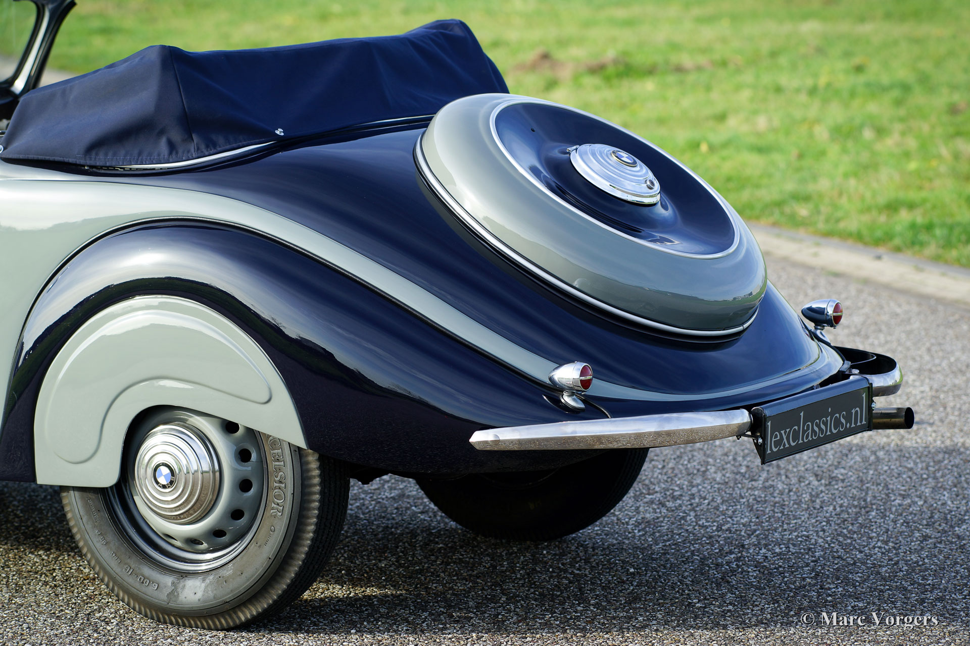 BMW 327/28 Sport-Kabriolett, year 1938. Colour ‘two-tone’ dark blue with grey. Interior with blue leather seats, grey door panels and grey carpet. Blue mohair hood and hood cover. This gorgeous and rare BMW 327/28 Sport-Kabriolett was delivered new to G. Bischof & Co on 11 November 1938. Years ago, the automobile was extensively restored to a high level of perfection in Germany; a photo reportage of the restoration is present. In the year 2015 the engine was fully overhauled by BMW Classic Group Deutschland in Garching and the car was fully inspected and serviced. A photo reportage and invoices of the work is present. This specimen is in superb TOP condition and the car drives perfectly! The automobile was given some modifications which can be reversed: the original gearbox was replaced by a Volvo 4-speed unit (the original BMW gearbox comes with the car). Furthermore, electronic powersteering (EZ) and an oil-filtre modification were fitted.