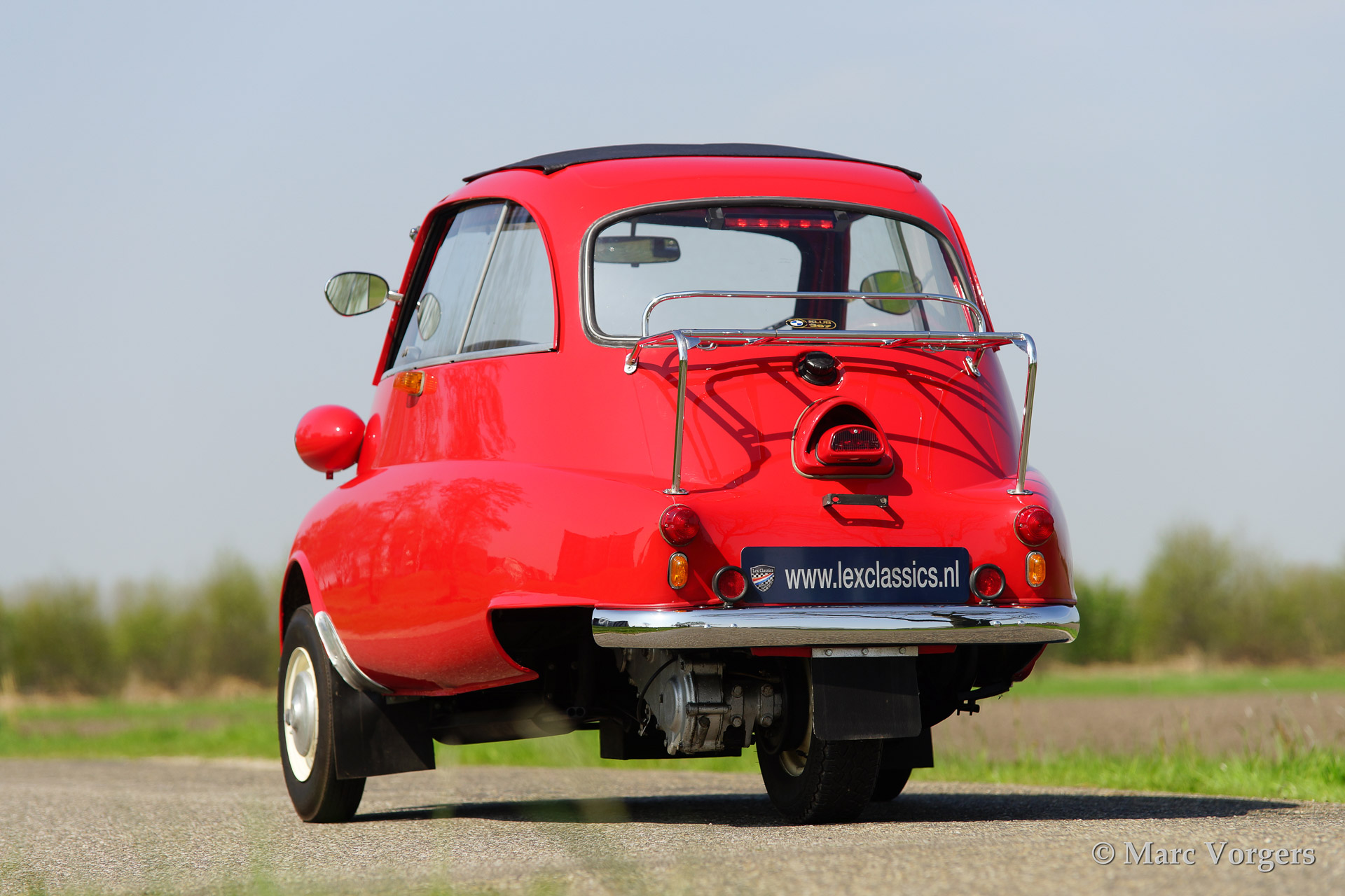BMW Isetta 300, year 1961. Colour red with a black grey interior. This wonderful little 3-wheeler was restored in Danmark. It is a unique experience to drive or to be driven in this midget cocoon on wheels!