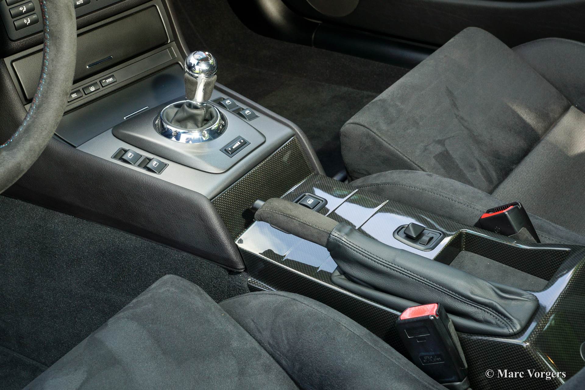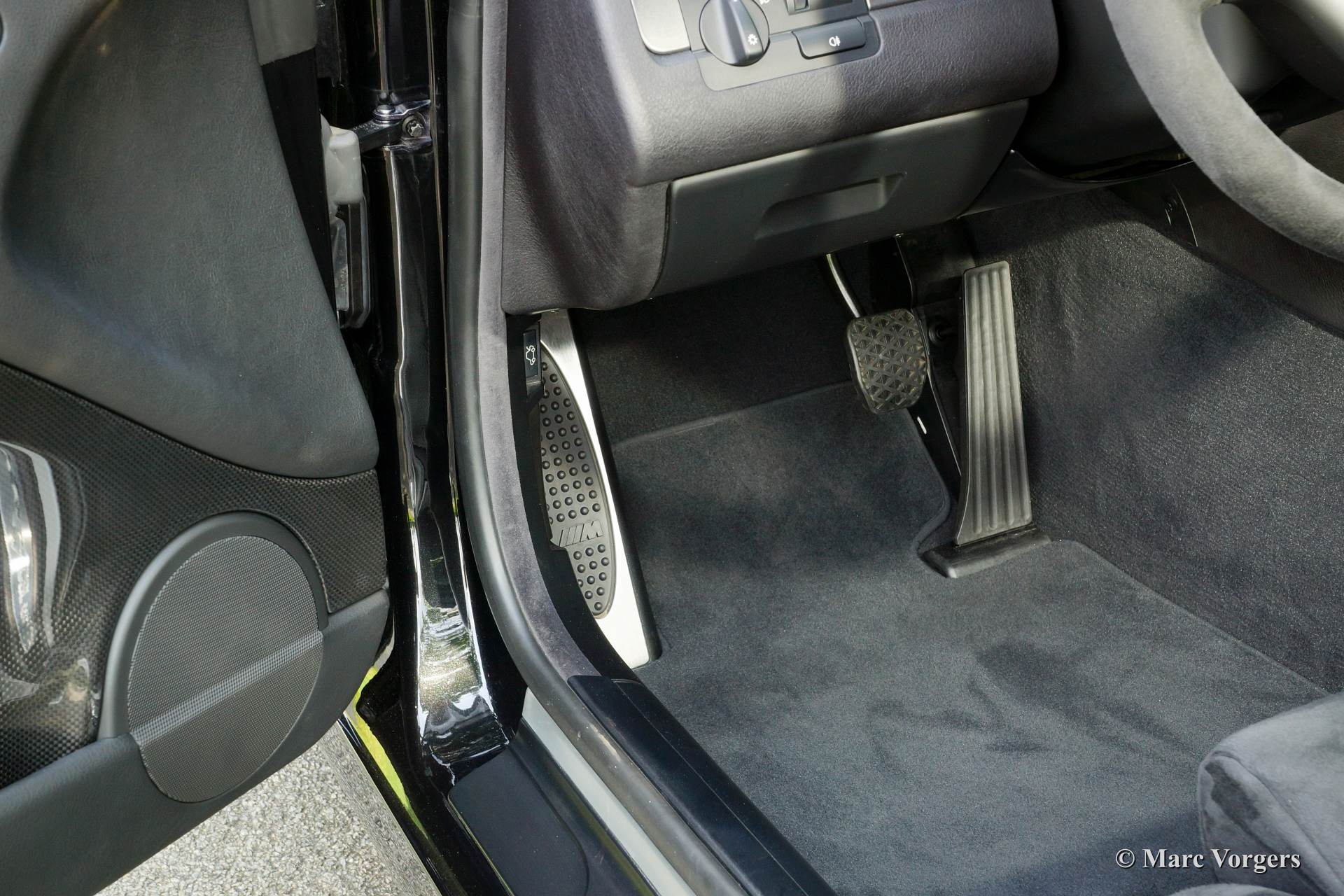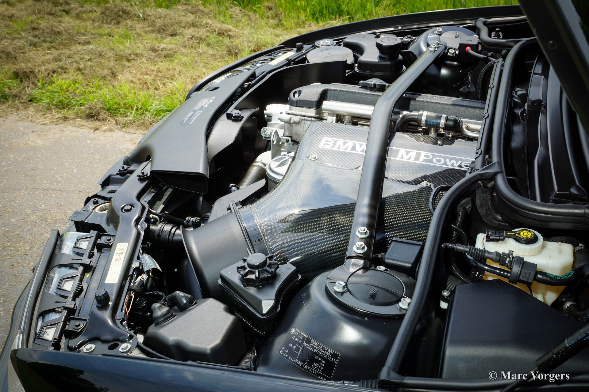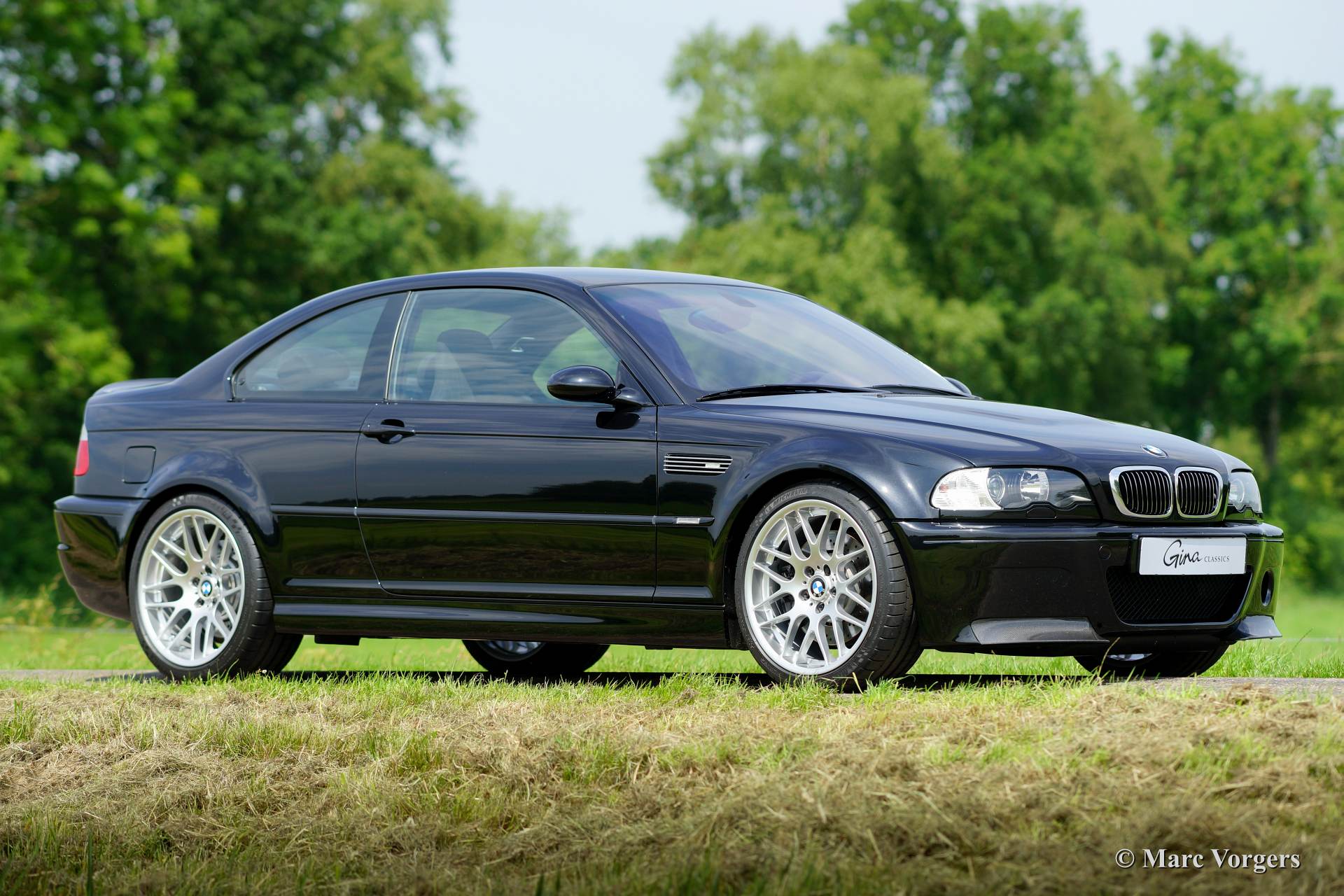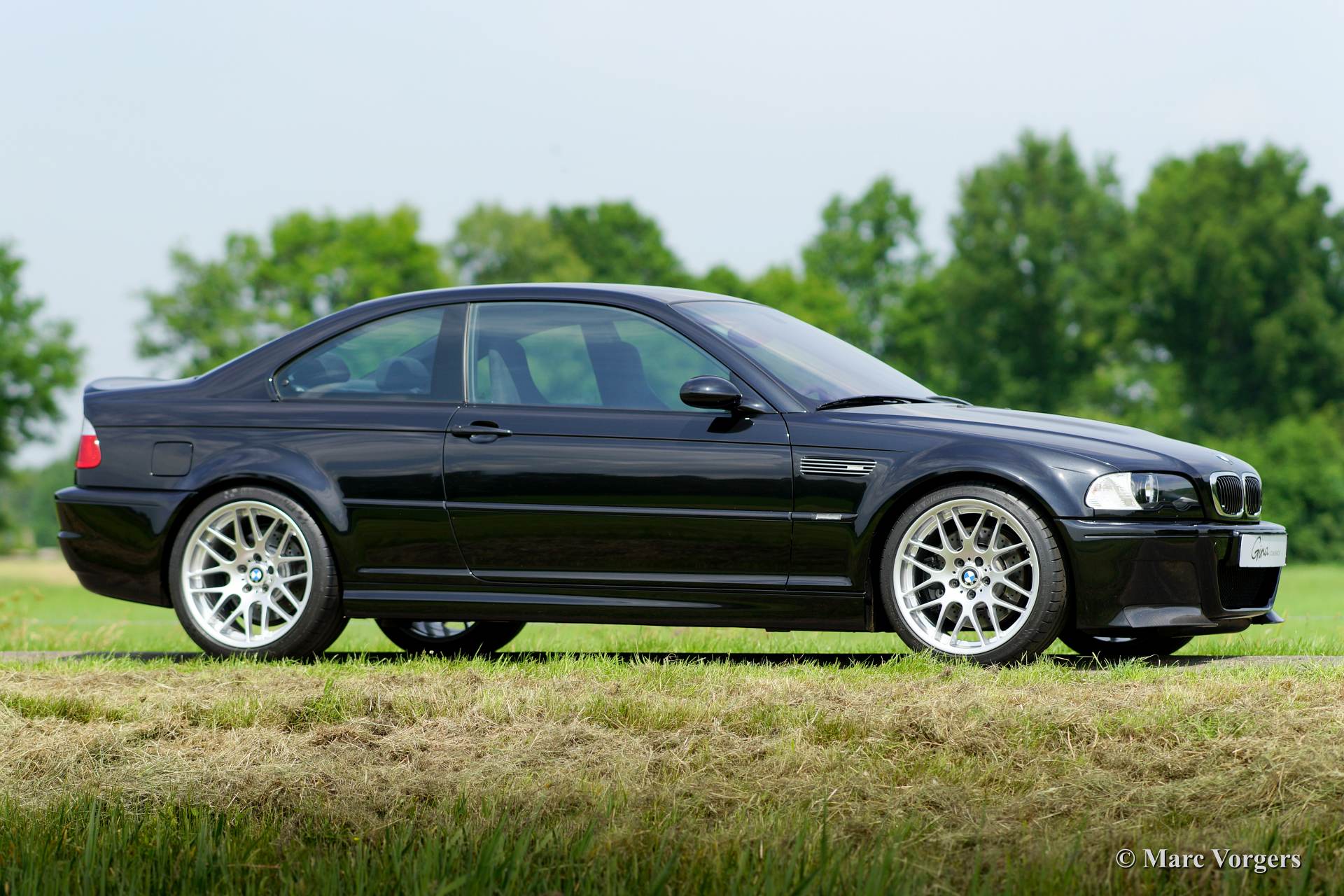 BMW M3 CSL, year July 2003. Colour Saphir black (code 475) with an anthracite/grey ‘Amaretta Reflex’ interior. This fabulous BMW M3 CSL (model E46) was sold new in Germany. The BMW M3 CSL is like all BMW M models ‘Born on the circuit and at home on every road’. The M3 CSL (Coupe Sport Leichtbau) is a special and rare M3 model which was produced in a limited edition series from June until December 2003. The CSL is build using ultra-light carbon fibre panels for the roof and the boot lid. Furthermore the steering was given a touch of additional sharpness and the engine was up rated to 360 bhp. A lusty 17 bhp more than the ‘standard’ E46 M3. The car features an automatic 6 speed SMG gearbox with shift ‘paddles’ on the steering wheel.