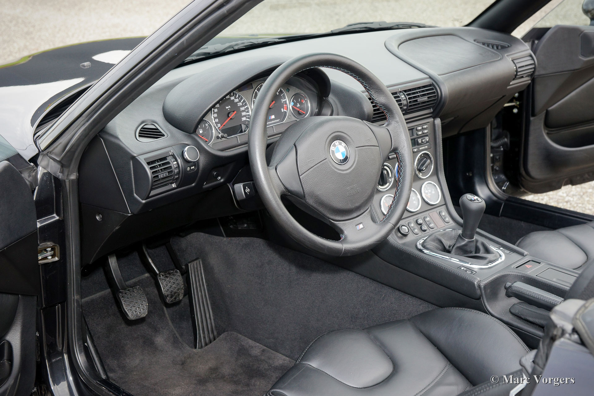 BMW Z3M Roadster, year 1999. Colour ‘Cosmos’ black metallic with a black leather interior and a black soft top. This fantastic BMW Z3M Roadster is in superb top condition! The car was recently fully checked and serviced by an official BMW representative, invoice is present. Recently also a brand new soft top was fitted. The BMW Z3M features a magnificently smooth and powerful six cylinder engine which delivers 321 horsepower. This power plant catapults the Z3M to 100 km/h in only 5,4 seconds. The BMW Z3M Roadster is a marvellous sports car which combines all the qualities and thrills of a classic roadster in a modern design.