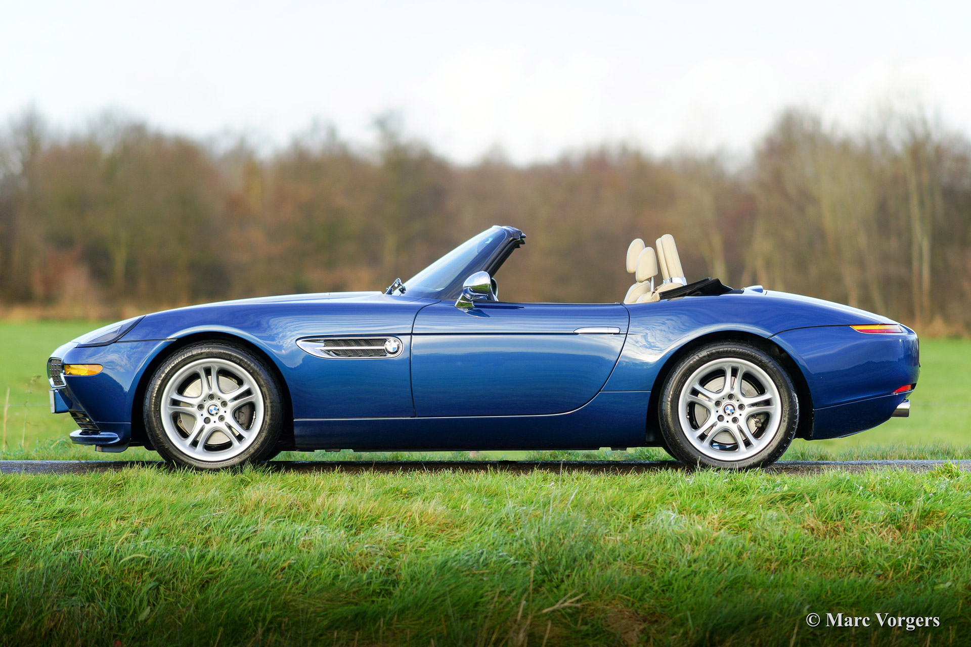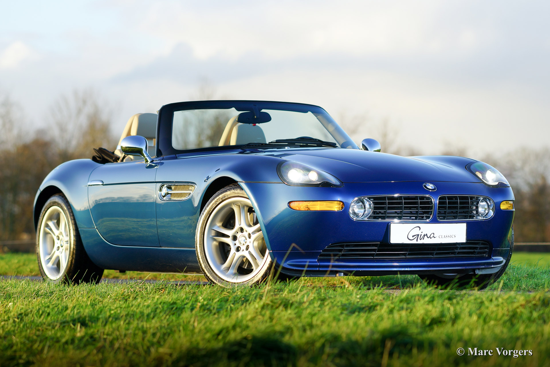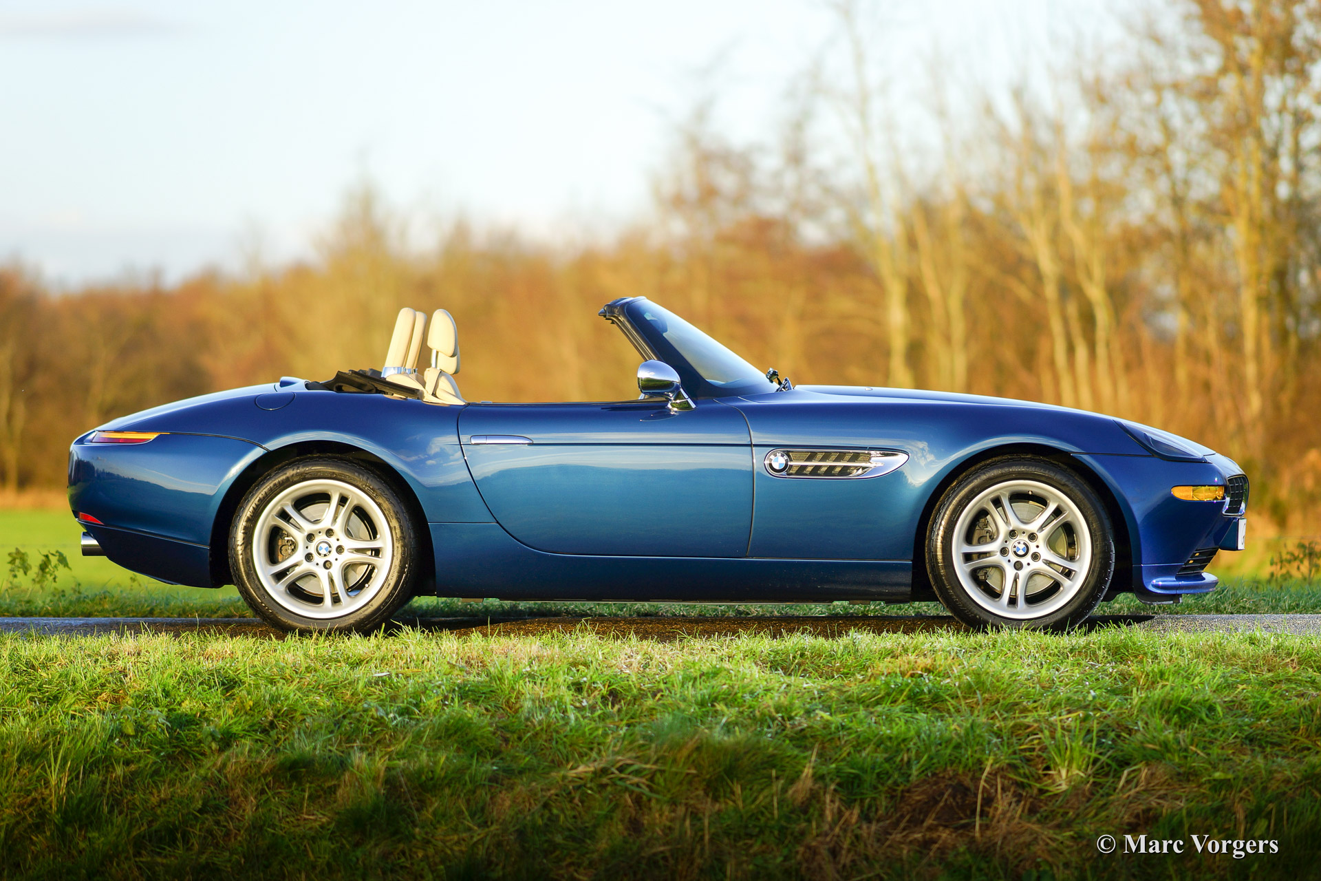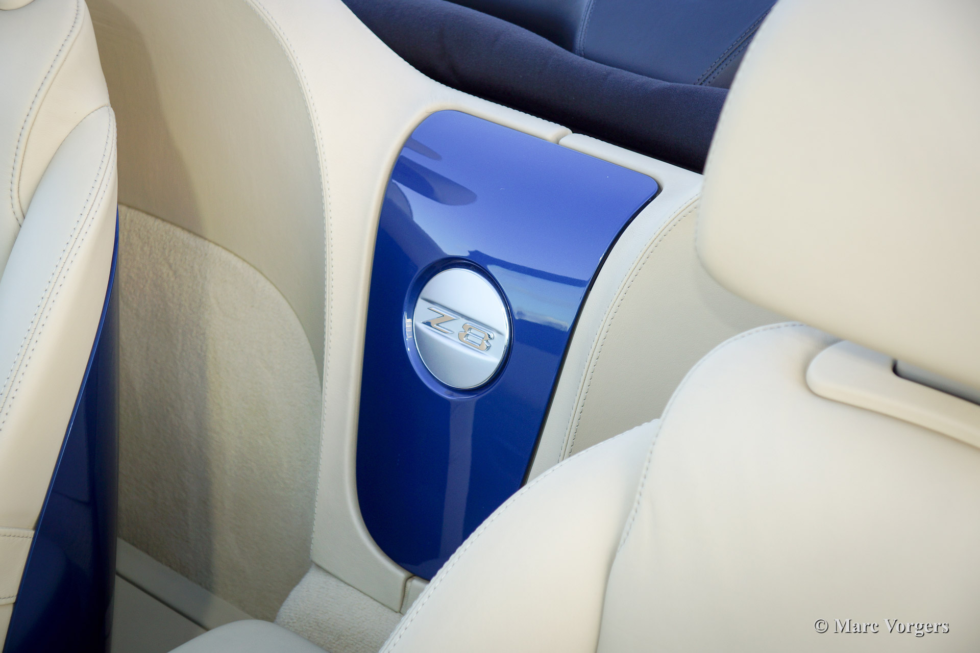 BMW Z8, year 2002. Body colour blue metallic (Topaz blue). Interior colour: crème nappa leather and crème carpet. The BMW Z8 is a rare car, 5703 cars were built of which 3160 cars were sold to Europe. Only 138 specimen were delivered in Topaz blue.