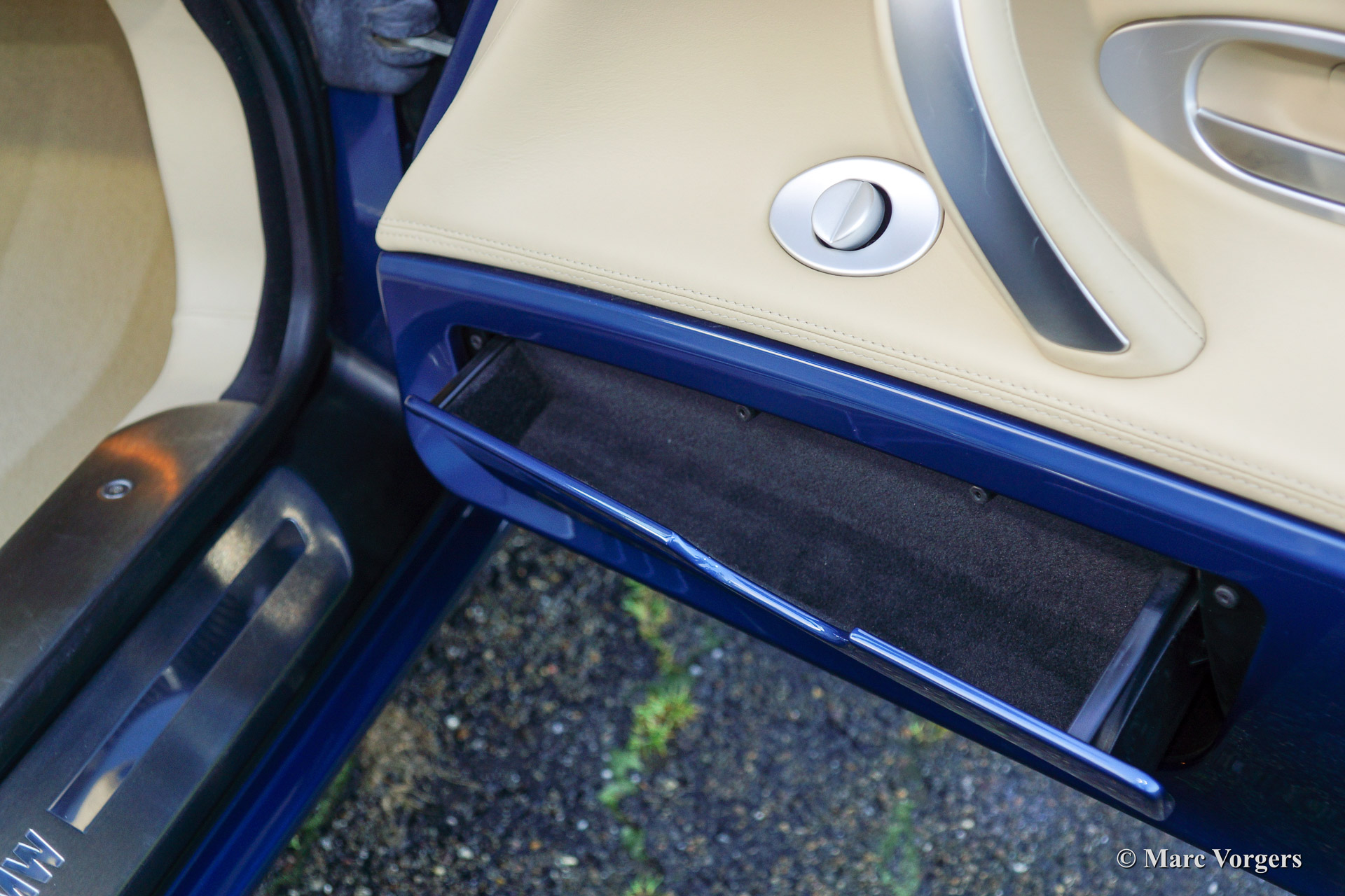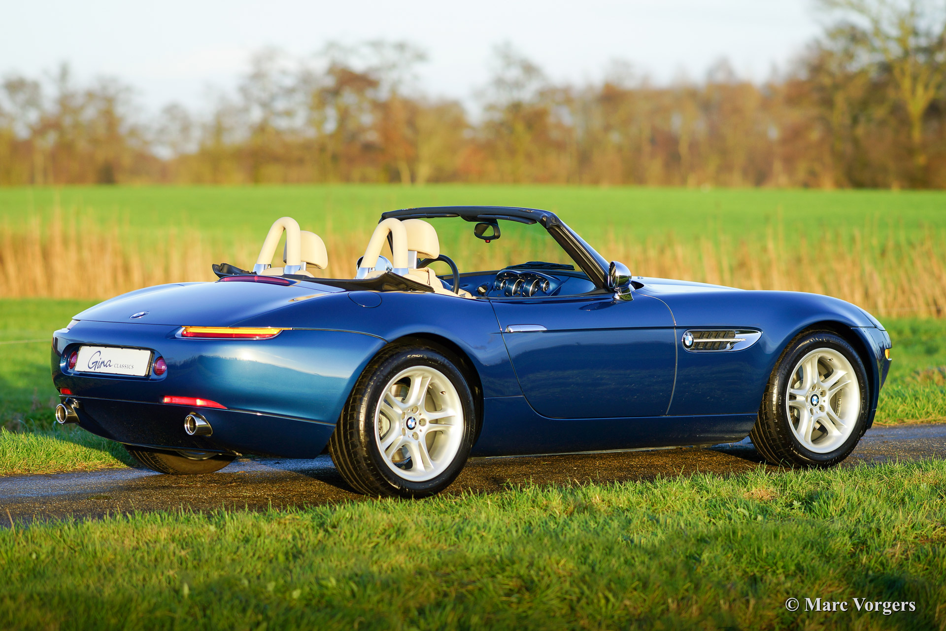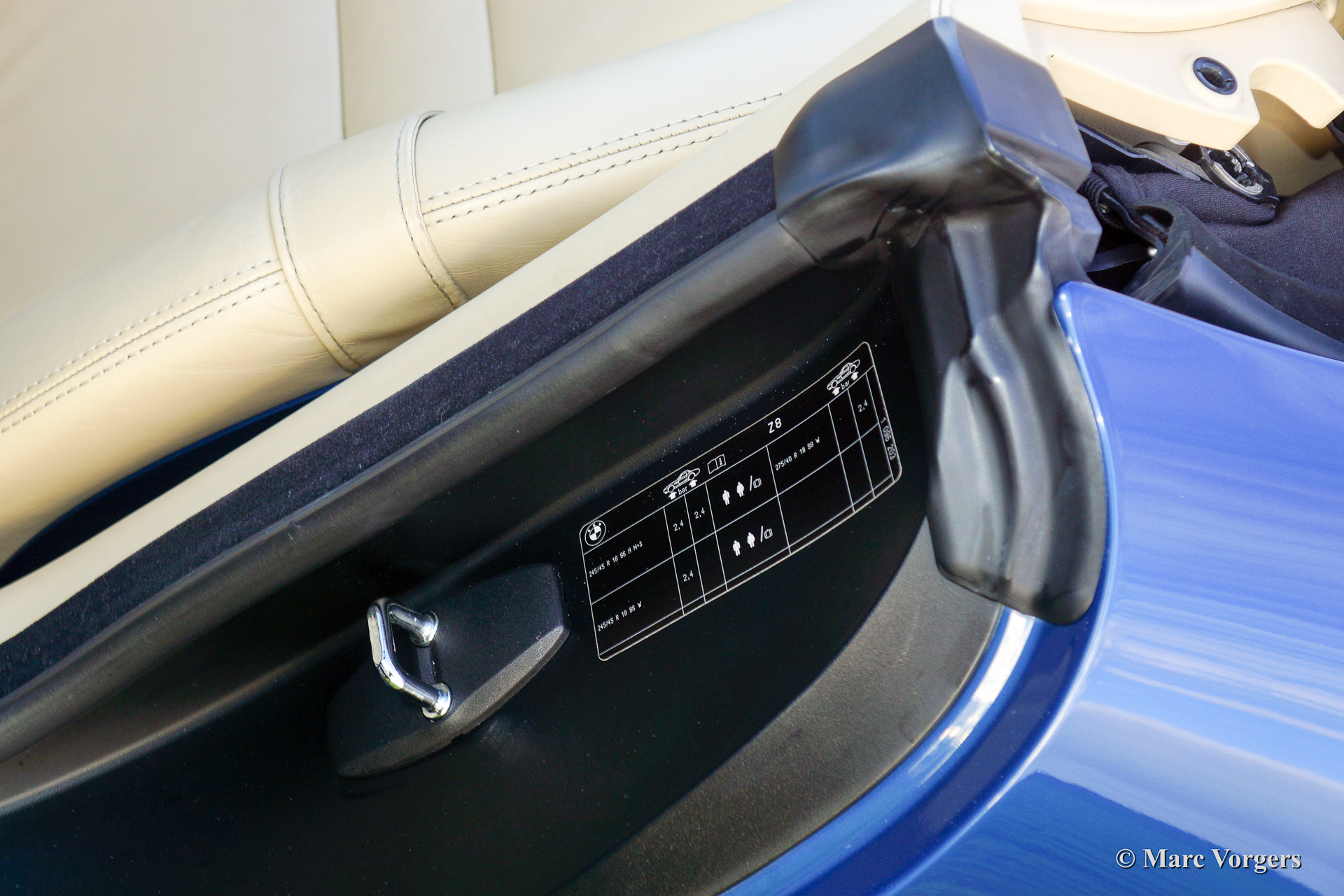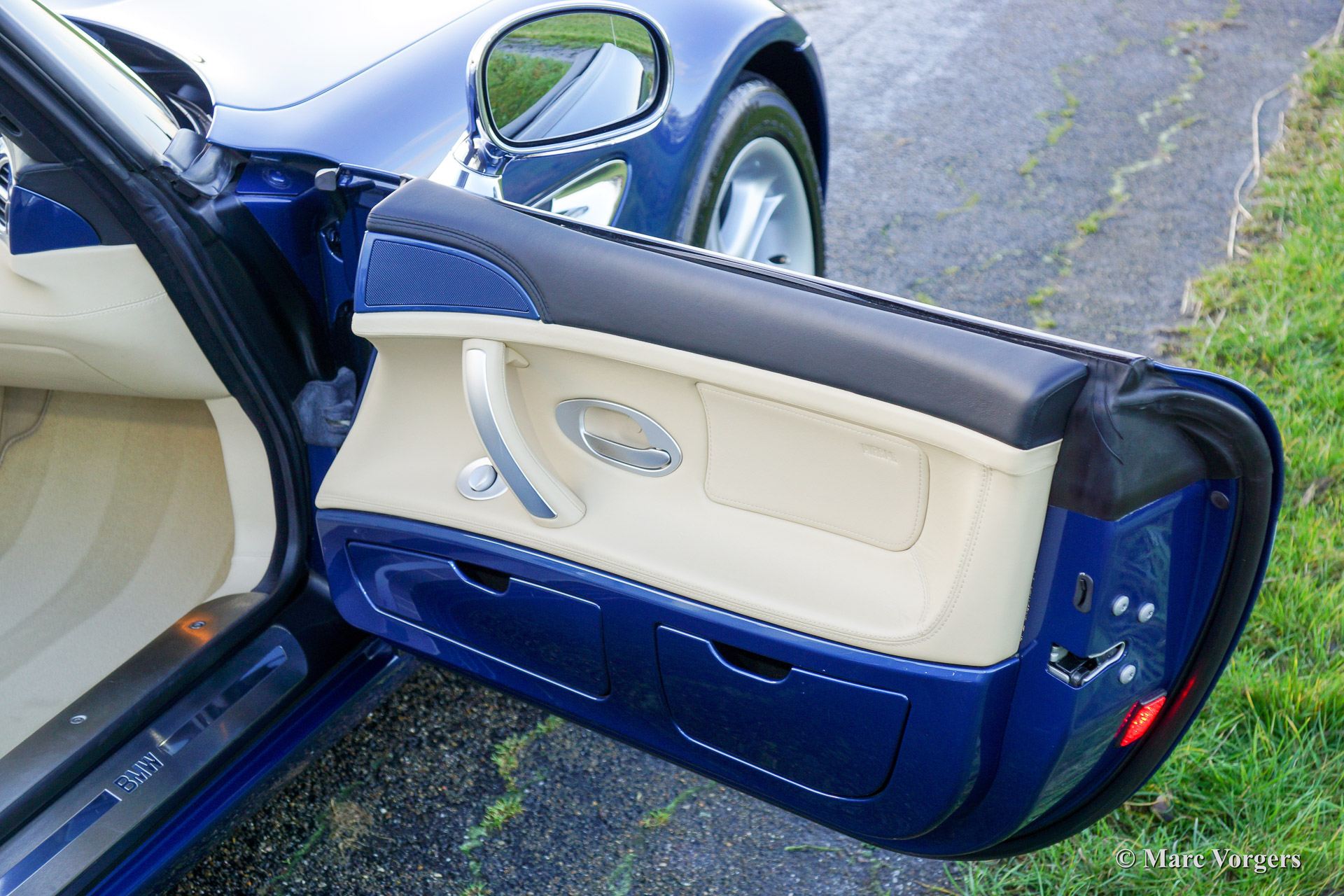 BMW Z8, year 2002. Body colour blue metallic (Topaz blue). Interior colour: crème nappa leather and crème carpet. The BMW Z8 is a rare car, 5703 cars were built of which 3160 cars were sold to Europe. Only 138 specimen were delivered in Topaz blue.