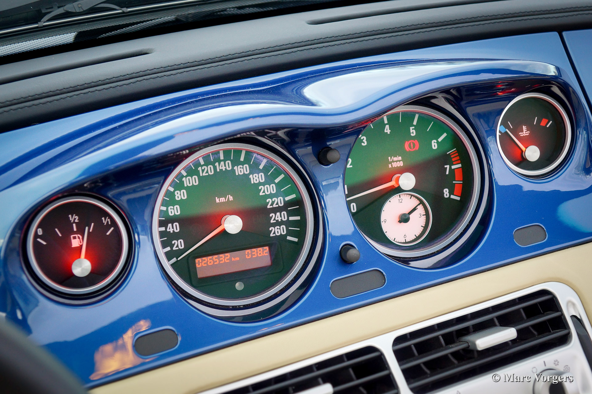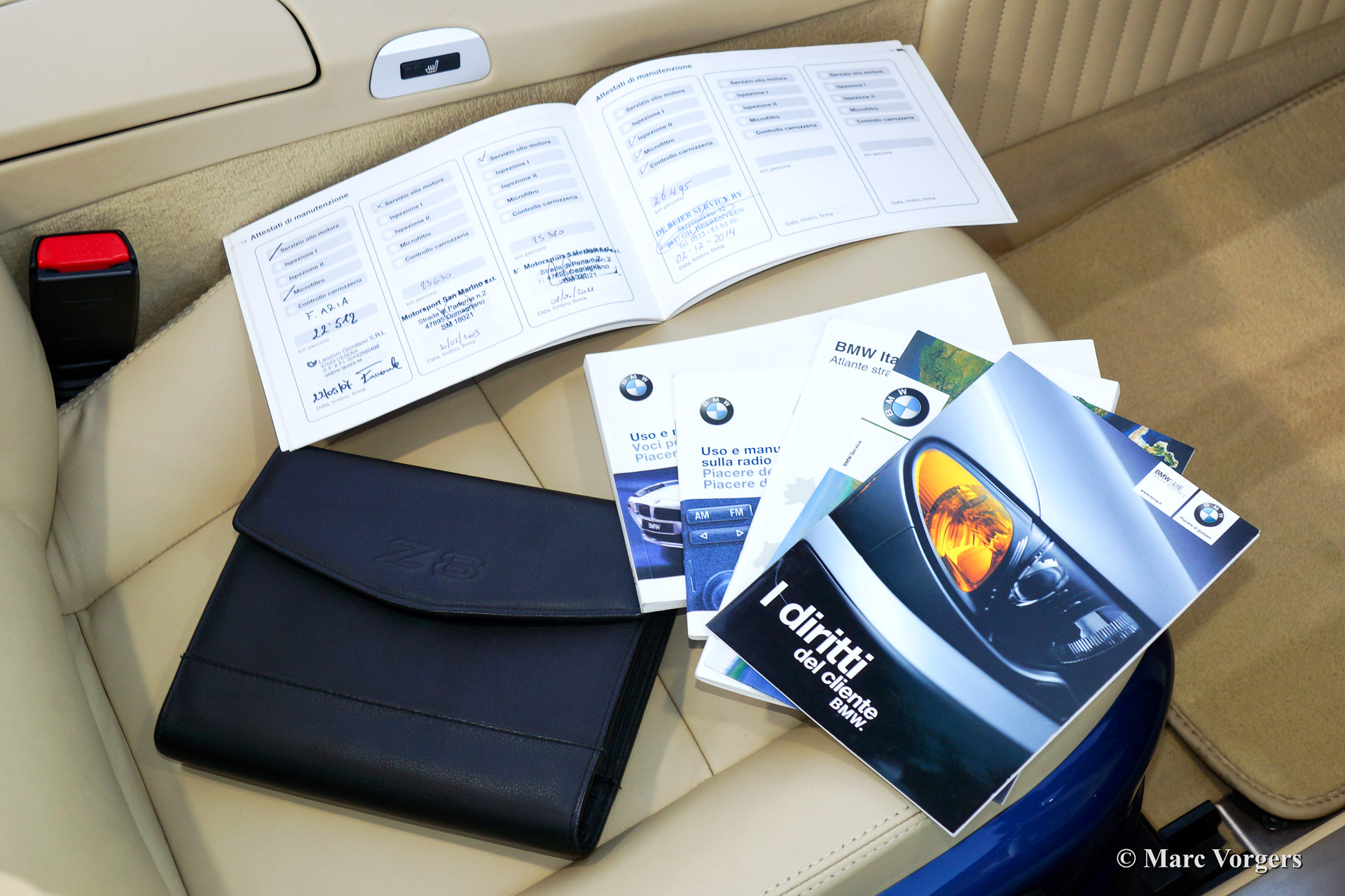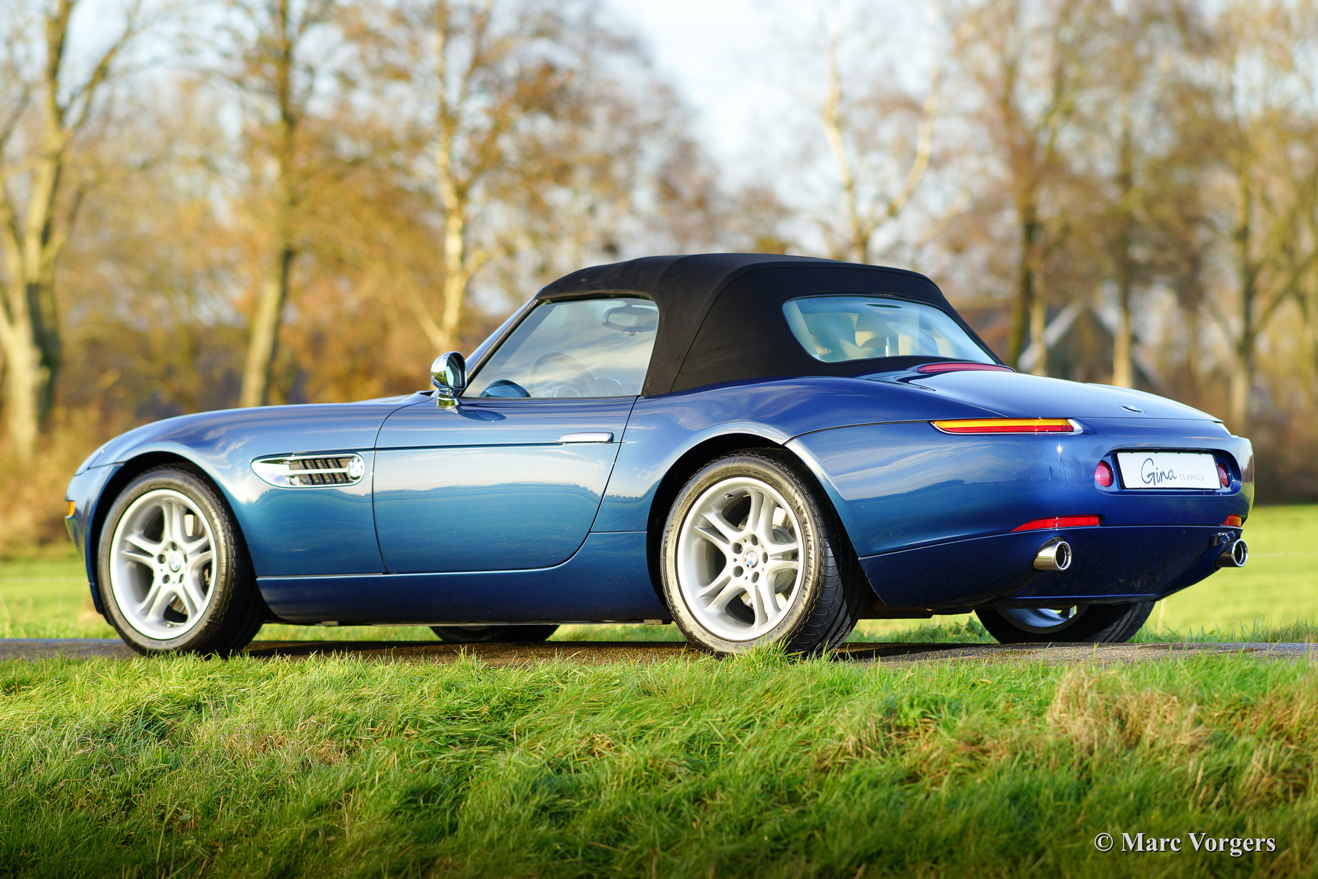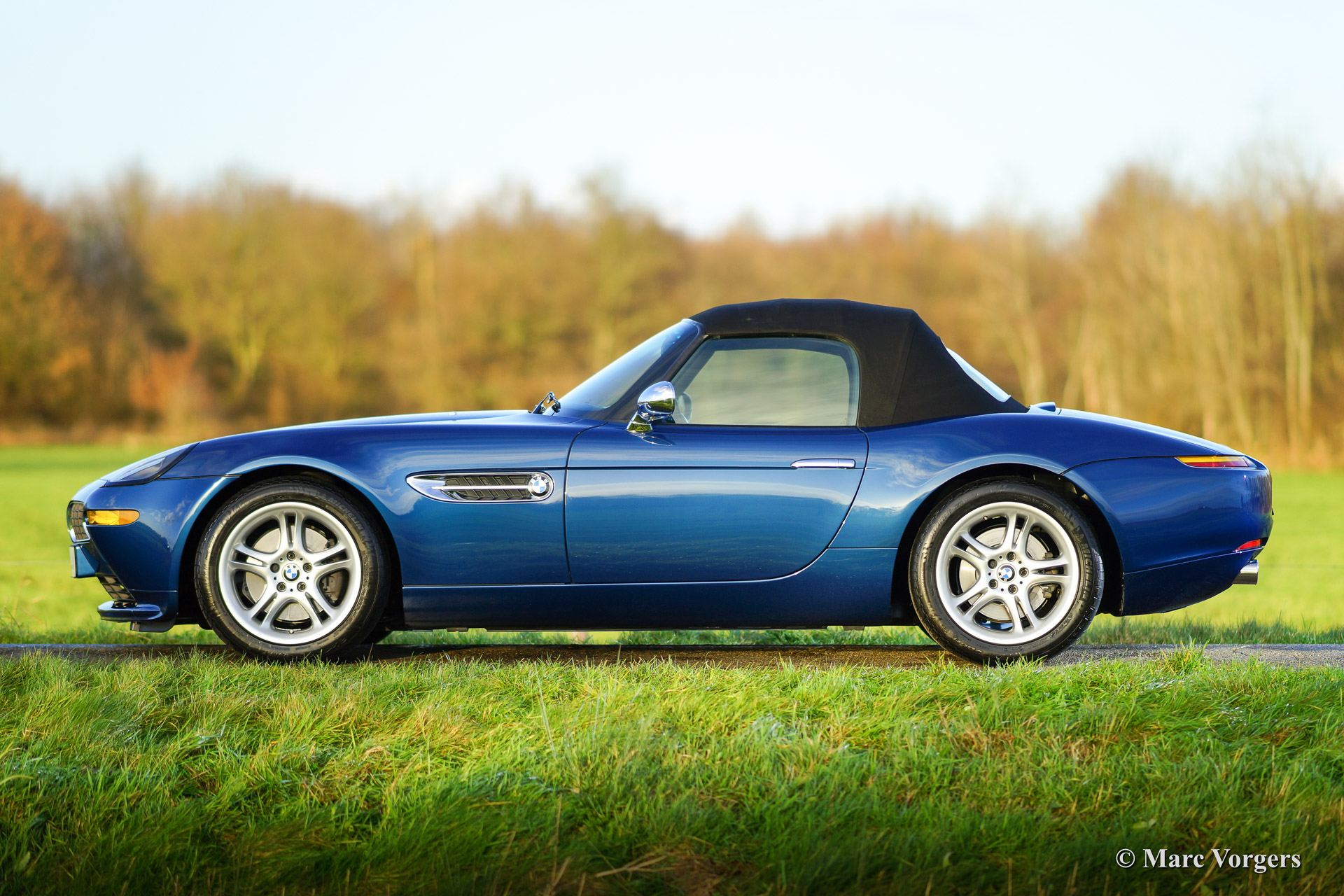 BMW Z8, year 2002. Body colour blue metallic (Topaz blue). Interior colour: crème nappa leather and crème carpet. The BMW Z8 is a rare car, 5703 cars were built of which 3160 cars were sold to Europe. Only 138 specimen were delivered in Topaz blue.
