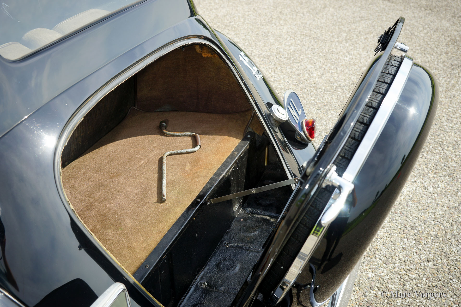 Citroën 15-SIX ‘Traction Avant’, year 1951. Colour black with a brown/greyish cloth interior. This relatively rare and exclusive Citroën ‘Traction Avant’ is in very good and super original condition; a true time-machine! The innovative Citroën ‘Traction Avant’ was presented in the year 1934. It was the first passenger car in series production with front wheel drive. The unitary bodywork construction was also ‘ground breaking’ in those pre-war days. The top-of-the-line model, the 15-SIX was introduced in the year 1938. This six-cylinder version was given a powerful 2.9 litre six cylinder in-line engine. The ‘Traction Avant’ 15-SIX was a fast and robust saloon and it offered excellent road-holding. The car became popular with the French police and with the robbers who did not want to get caught by them! This Citroën 15-SIX was imported to the Netherlands in the year 1971. The automobile drives and sounds perfectly. This is a rare and super original example!