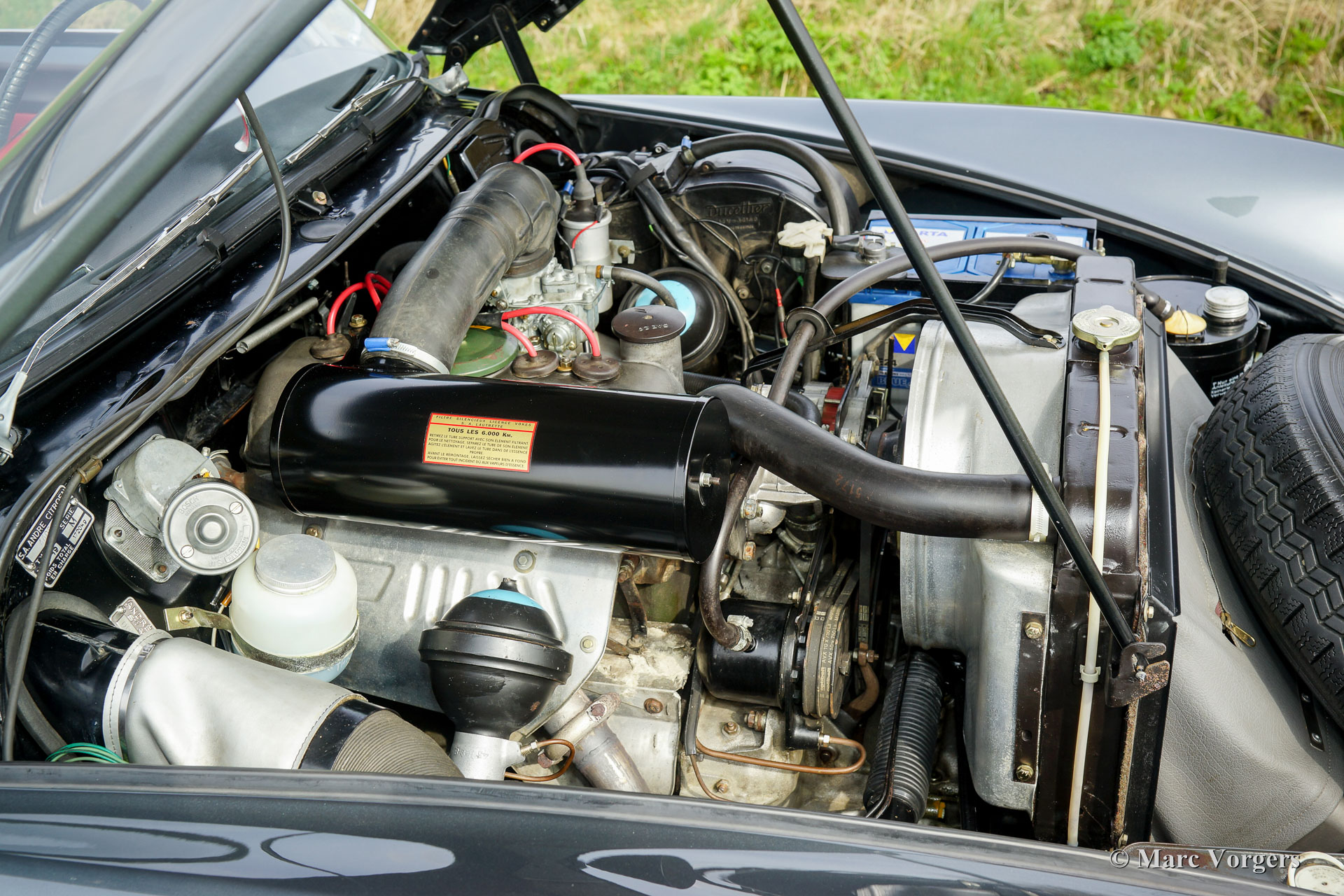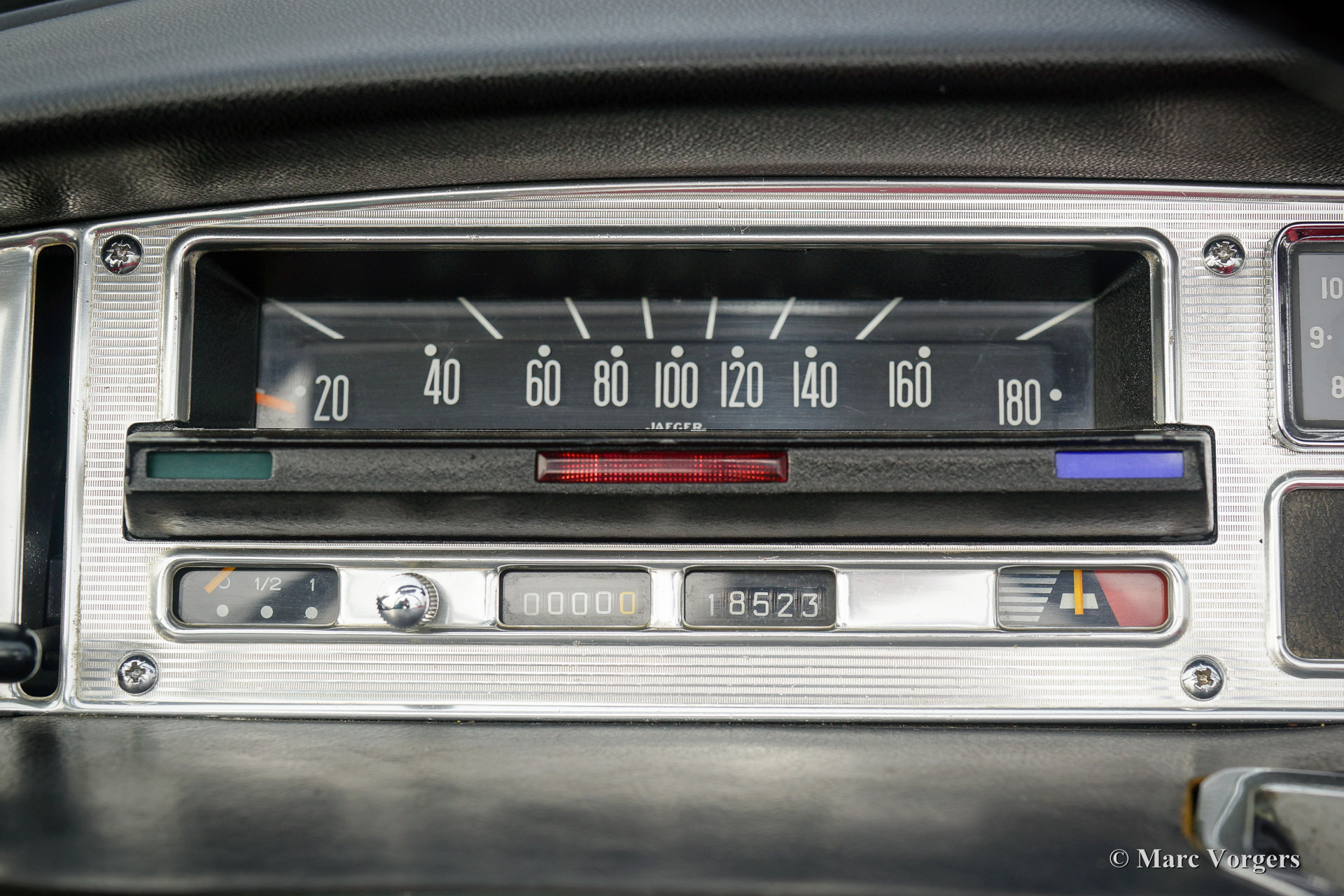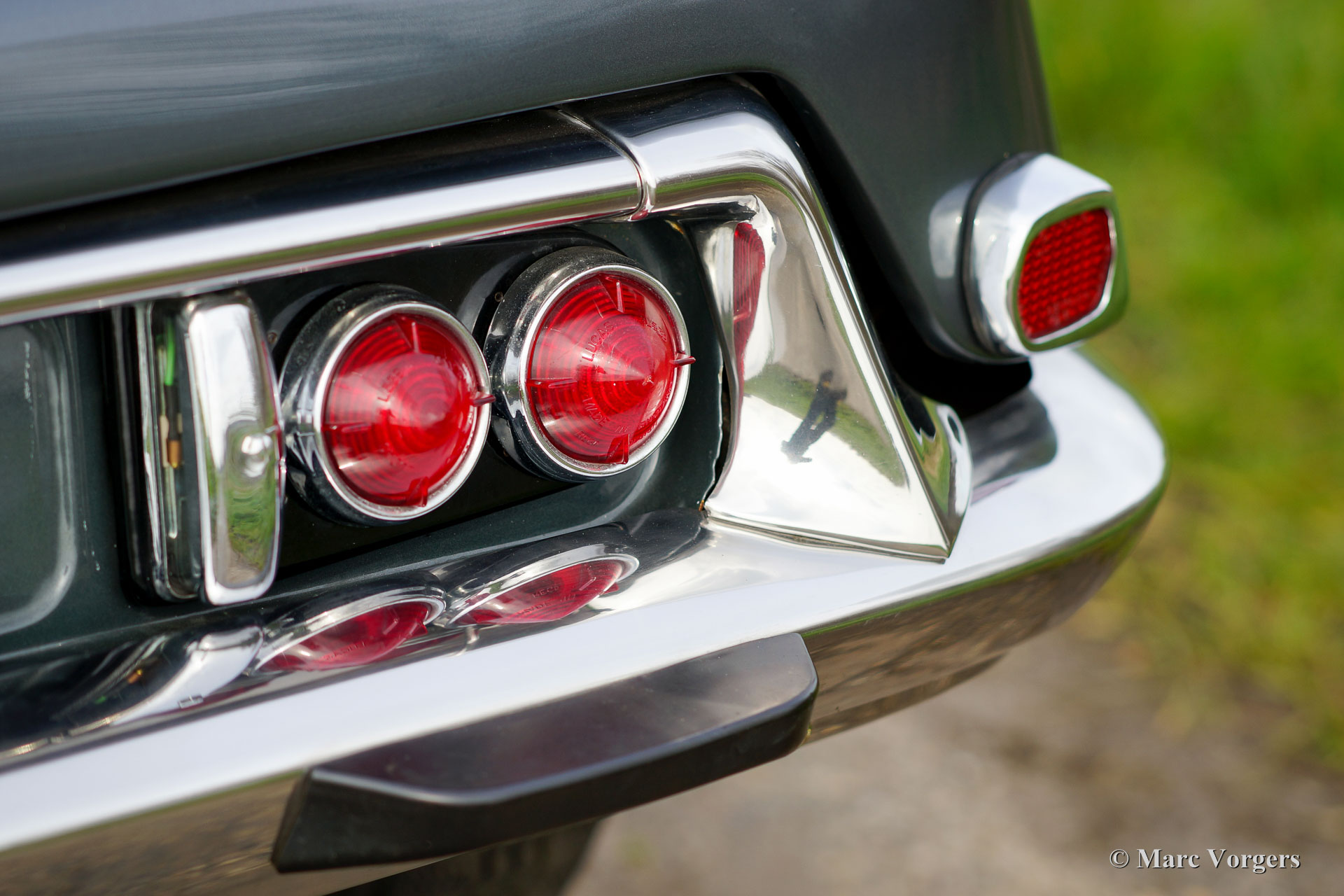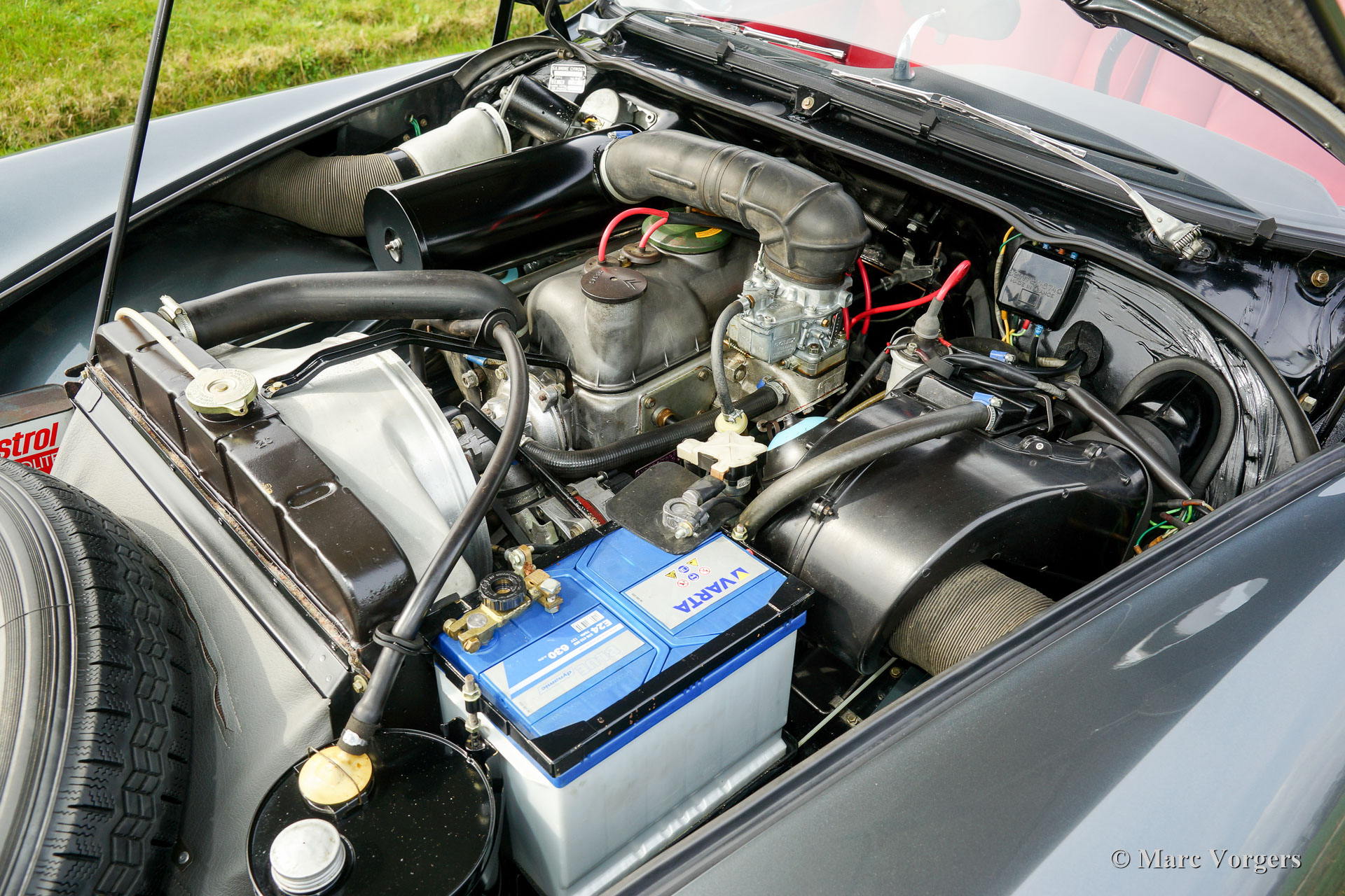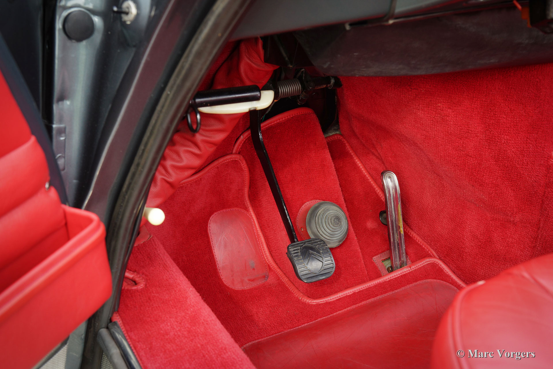 Citroën DS19 cabriolet, year 1963. Colour dark grey metallic with a red leather interior and red carpet to match. Black convertible top and hood cover. This fine Citroën is a beautiful and perfect replica of a Citroën DS19 cabriolet ‘Usine’; almost undistinguishable from factory original.