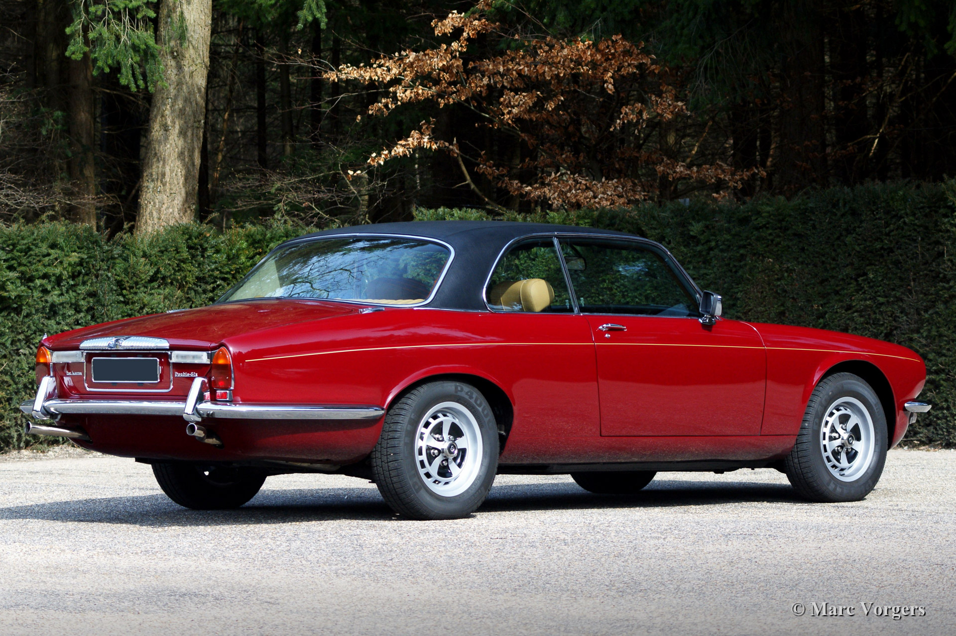 Daimler Double Six Coupe, year 1976. Colour Regency red with a beige (biscuit) leather interior. This is a beautiful and very impressive Daimler Double Six Coupe. Only 27 left hand drive versions of this automobile have been built. This is a very rare Daimler and the car left the factory as number 21. The automobile was imported from Switzerland to The Netherlands in the past.