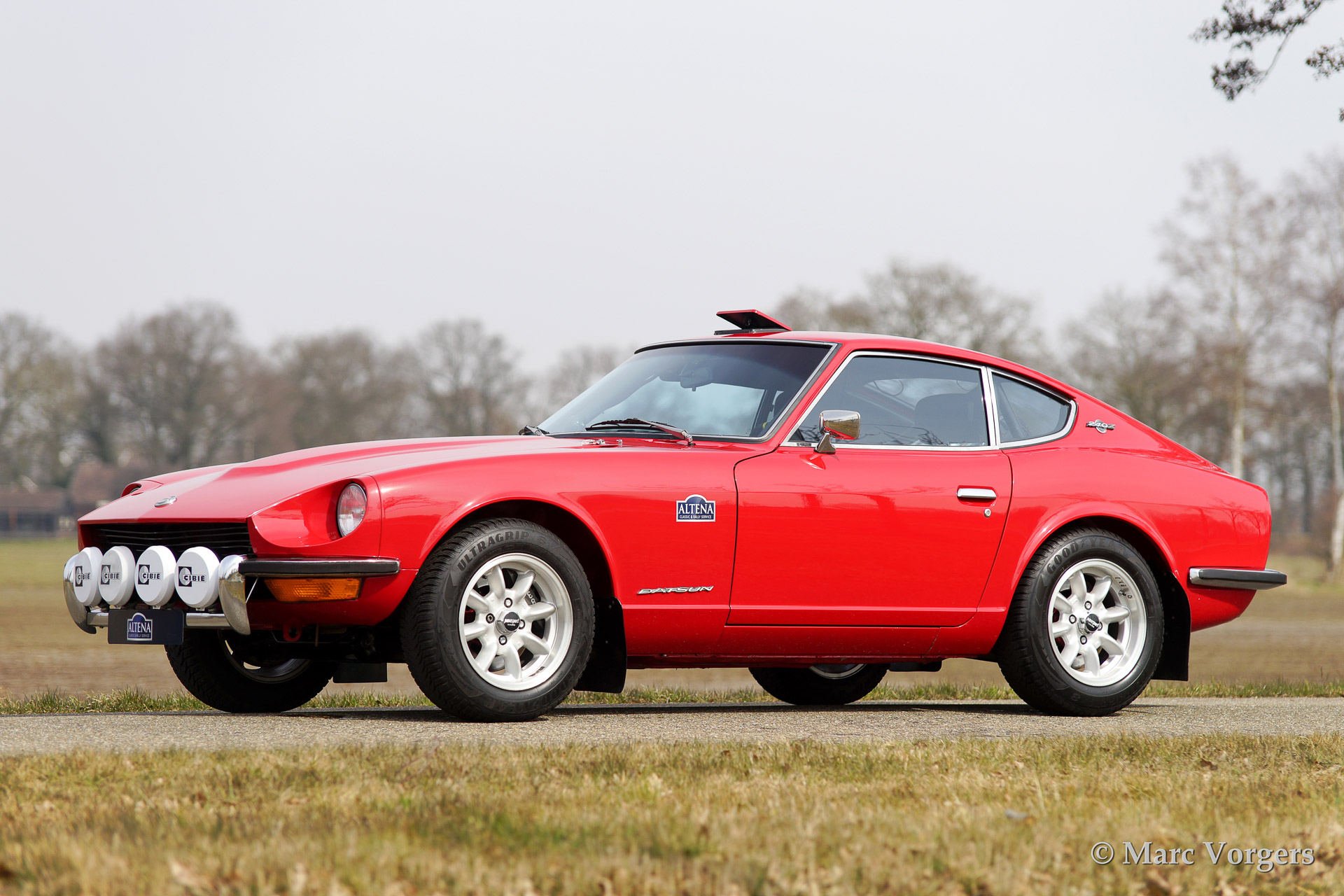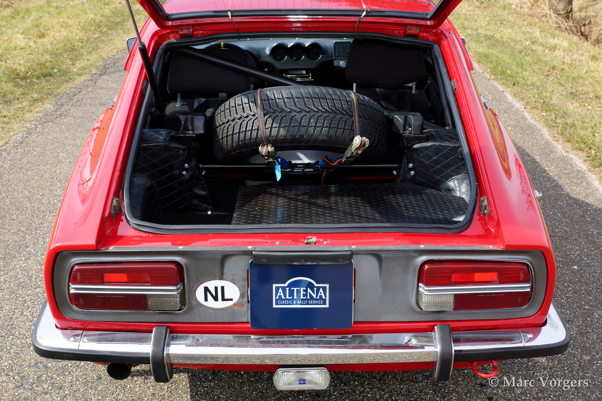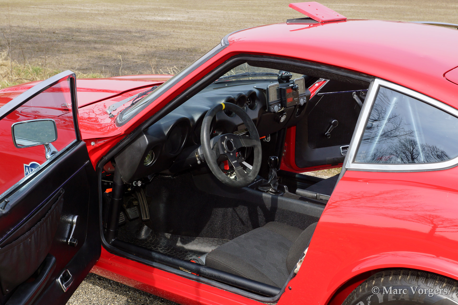 Datsun 240 Z rally car, year 1971. Colour red with a black rally interior. This tremendous Datsun 240 Z was restored/built/prepared by Altena Classic Service in the year 2010. The automobile was fully stripped and work started from the bare body shell! Short description of the work carried out/options fitted: a special roll cage was welded in, body-shell painted and built up with the best parts available. Fitted are special hand made Koni shock absorbers, a special 100 Litre aluminium petrol tank, custom made electrics, 231 bhp. 6 cylinder engine, limited slip differential, 5-speed close ratio gearbox, special exhaust system, electric power steering, special comfort sport seats and much more, please inquire. Altena Classic Service have put 30 years of rally experience and knowledge in this very special rally car.