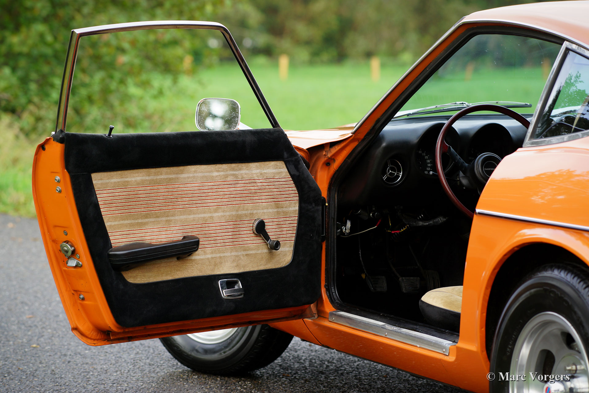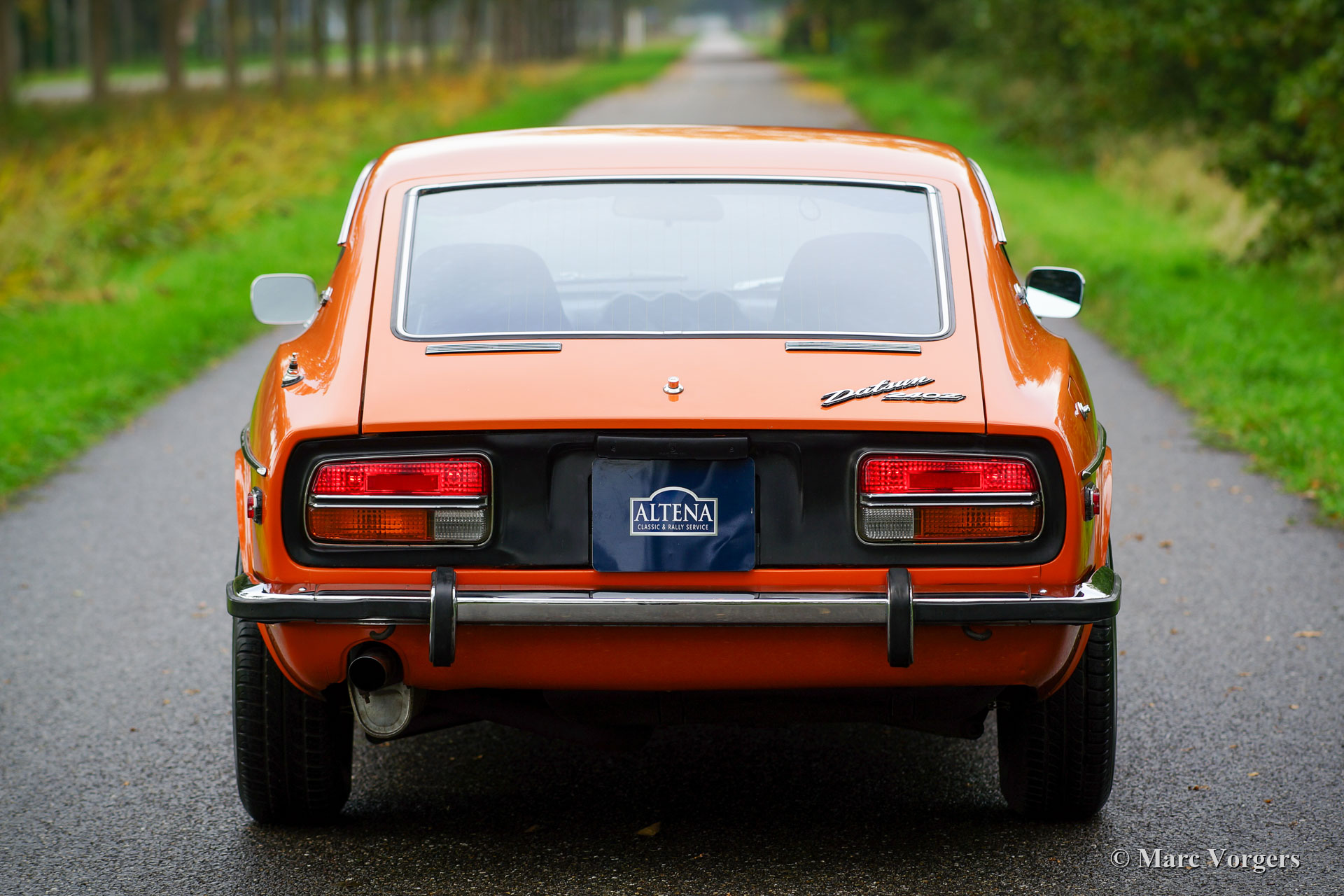 Datsun 240 Z, year 1970. Colour orange with a beige / black cloth / leatherette interior. This gorgeous Datsun 240 Z is a very early specimen; production number 2058. The car was sold new to Arizona in the USA, the original Arizona ‘title’ is still present. From 1970 until 1996 the car has known only two US / Arizona owners! In 1996 the Datsun was exported to the Netherlands where the car was cherished by one and the same owner up to the present day (23 years). This magnificent Datsun 240 Z is in an excellent and super original condition! The car was never fully restored. The engine was overhauled in the past, the car was given a perfect new paintjob and the cloth of the seats and the door panels was renewed professionally. The original colour code decal is still present (colour code 918) as are all the original ‘spot’ welds. After arrival in the Netherlands the Datsun 240 Z was fitted with European style rear lamps with orange direction indicator lenses. The car comes with a fully documented history, also the invoice of the engine overhaul is present. The 240 Z is fitted with 14-inch Wolfrace alloy wheels and in the boot, you will find the original toolset and crick in like new condition! This is a magnificent, very early Datsun 240 Z in excellent and super original condition. Everything is up to date; the new owner can start enjoying this beauty right away!