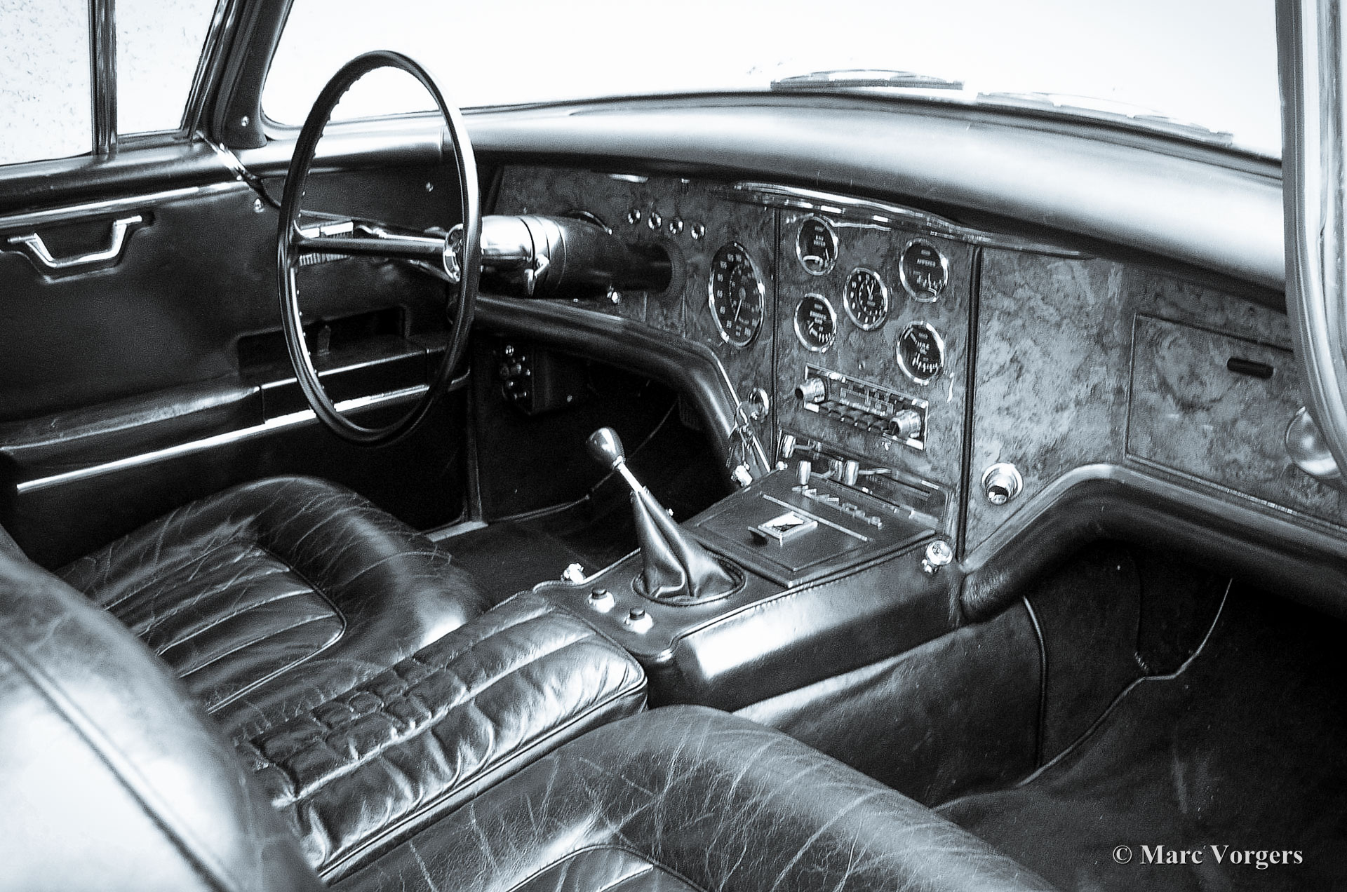 The Facel Vega HK 500 was considered by Jean Daninos himself as the best Facel ever built. The HK 500 was, for a long time, the fastest fours seater production line automobile in the world with a top speed of an amazing 240 kilometers per hour (with manual gear shift). The Facel Vega HK 500 is an extremely luxurious car with a gorgeous finish and beautiful details. The interior is majestic with it’s mock walnut (in the French tradition) dashboard and beautifully chromed handles and switches. The leather upholstery is of an exceptionally high quality the comfort it offers reflects this. The car comes with all of the novelties which were common on the American market at the time. The robustly built automatic windows and the gear shift with it’s stylish buttons are extremely reliable and never fail. Chrome was used sparingly on the HK 500; the bumpers, mirrors and side strips are all constructed of stainless steel. The vehicle is built upon a welded steel chassis within which the strong 6.2 Litre Chrysler V8 is mounted. The undercarriage has independent wheel suspension with coil springs at the front and a live axle leaf spring suspension system at the rear. From 1960 onwards, the HK 500 was equipped with disc brakes around. The Facel Vega HK-500 is rare, only 490 units were built of which 329 still exist.